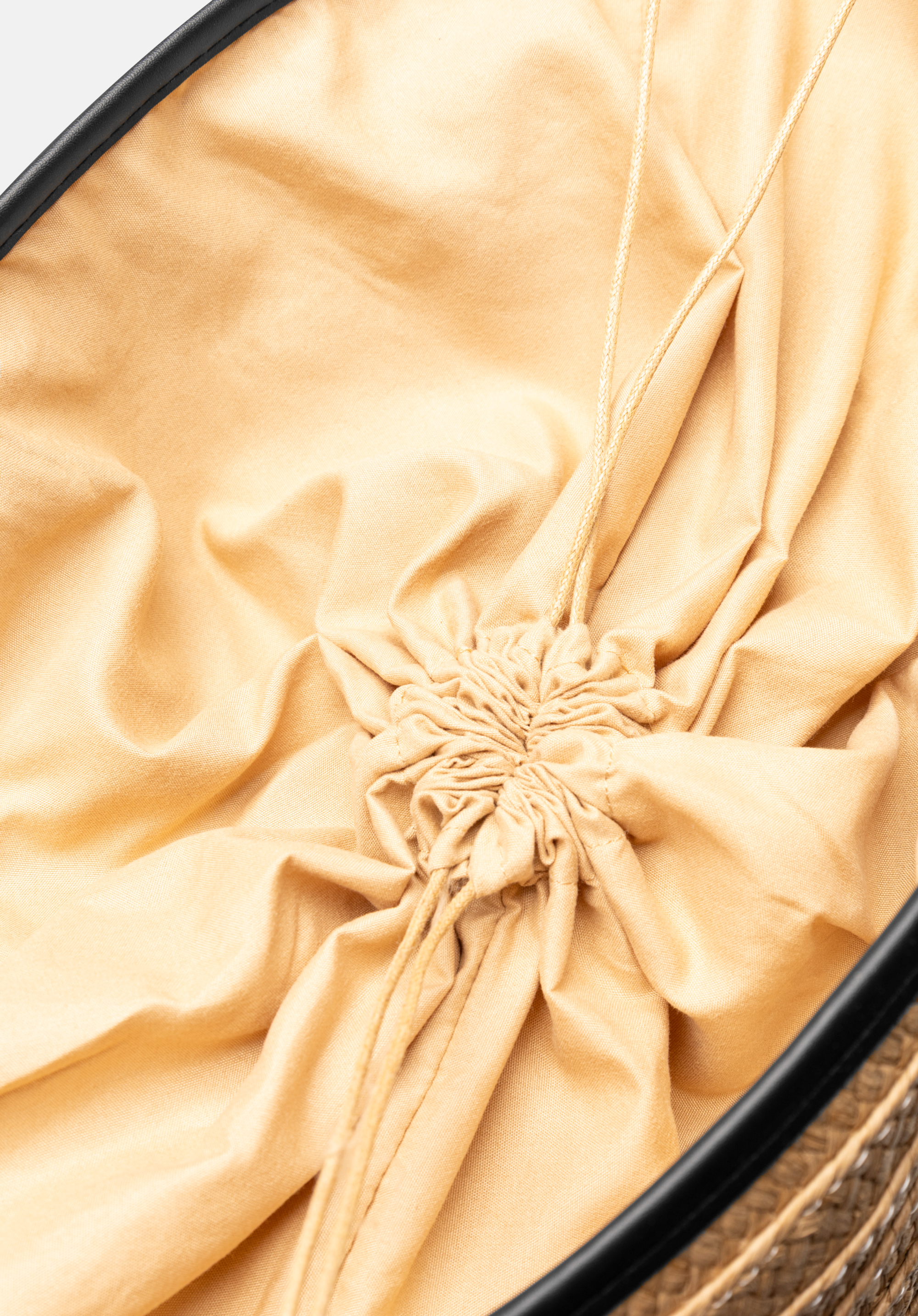 - Zusammensetzung: 100 % Papierstroh; Futter: 100 % Polyester; Griffe und Besatz: Kunstleder.