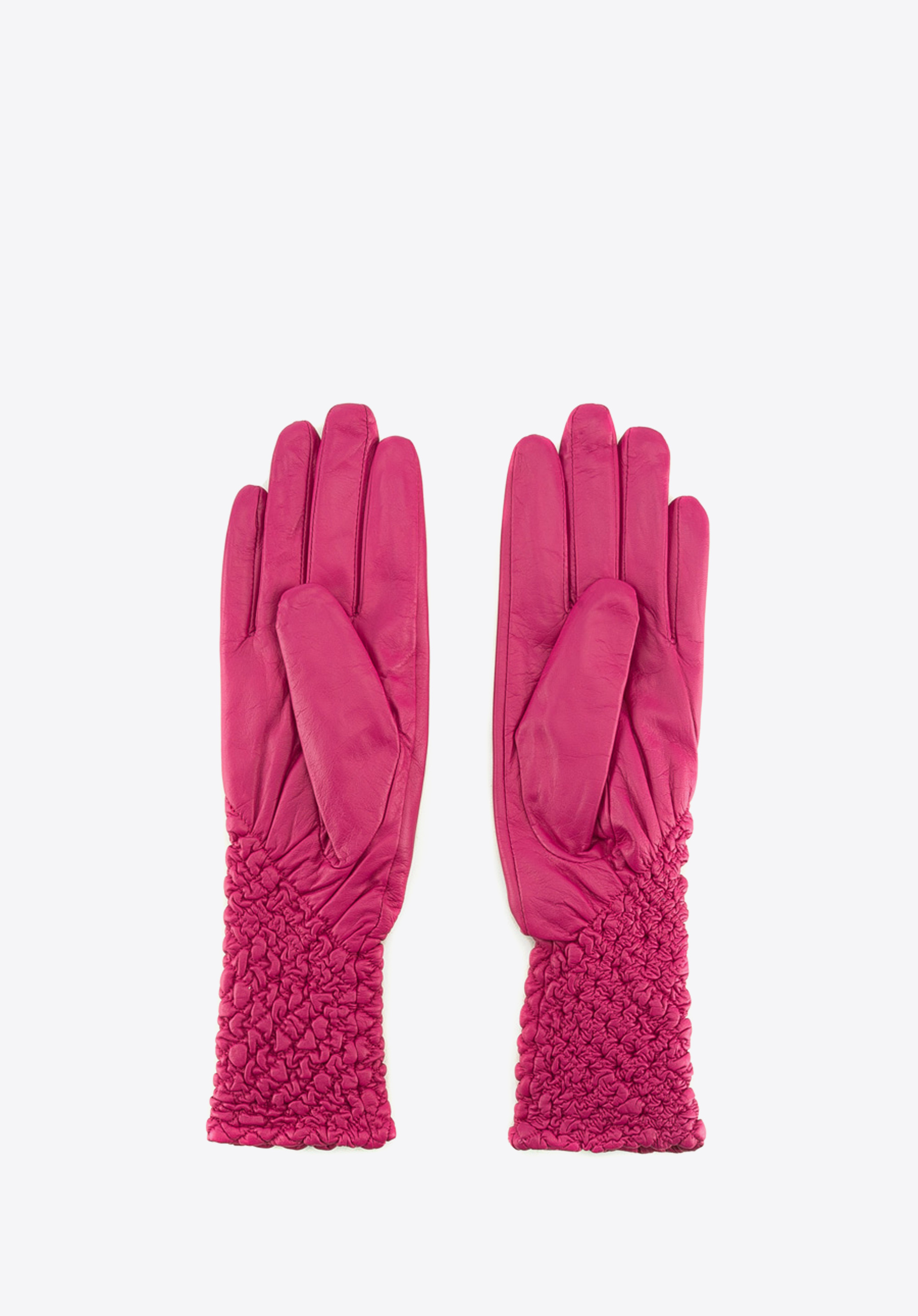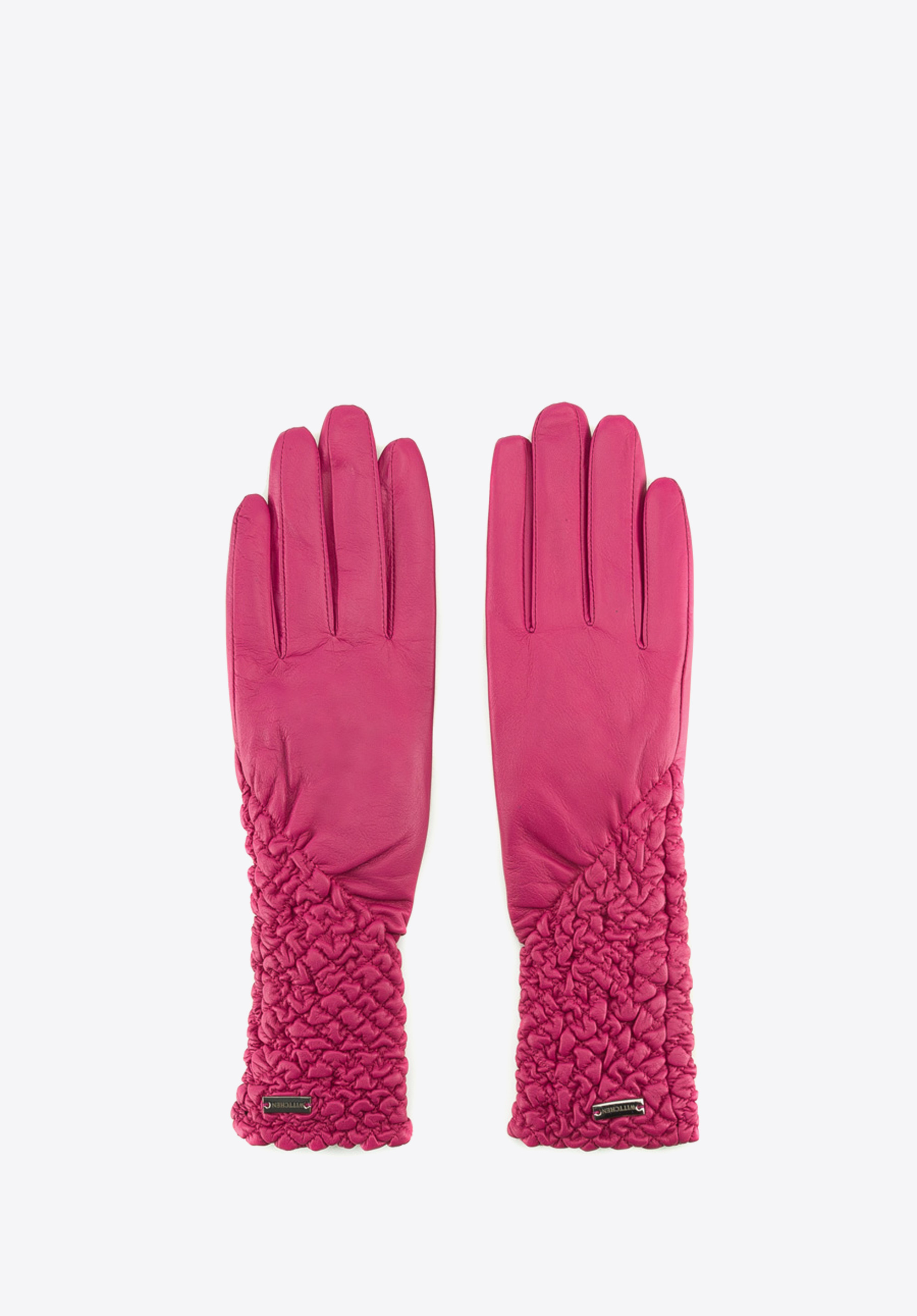 Die klassischen, gefütterten Handschuhe werden aus hochwertigem Schafsleder gefertigt. Die wesentlichen Merkmale dieses Handschuhs sind gesteppte Optik, feine Ziernähte und Länge, die zu eleganten Outfits passt. Das besonders feminine Modell ist ein perfekter Begleiter für kalte Tage.