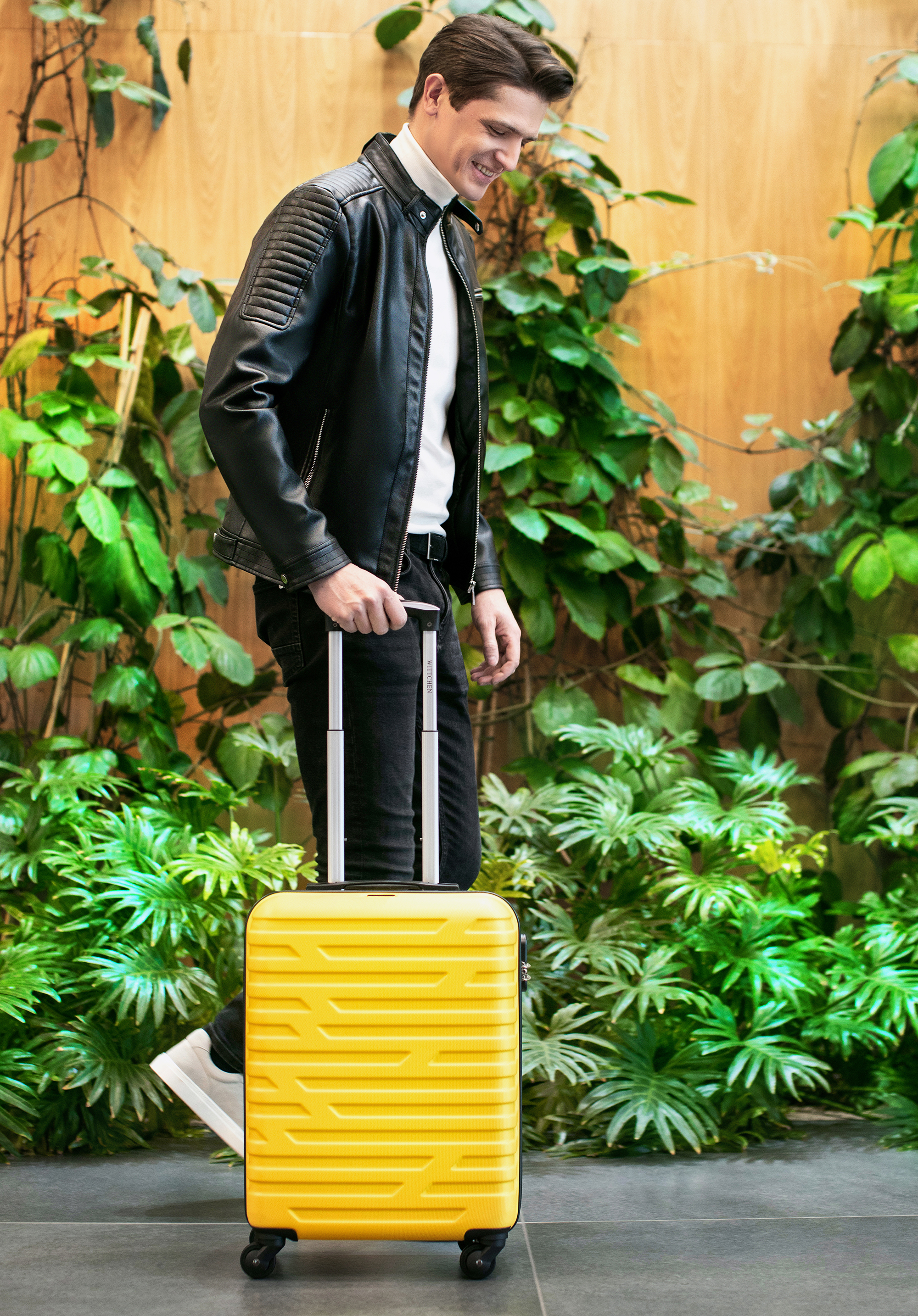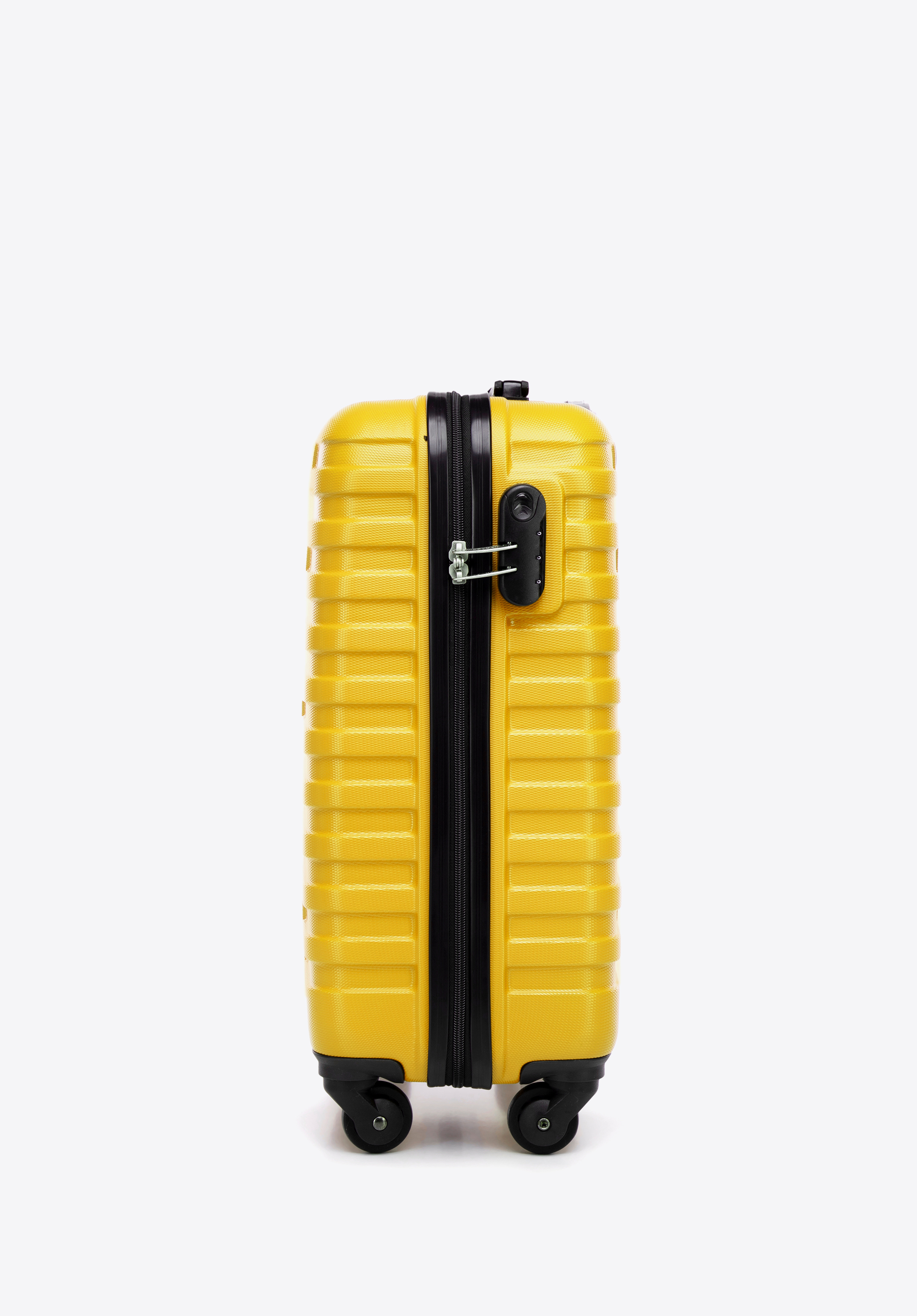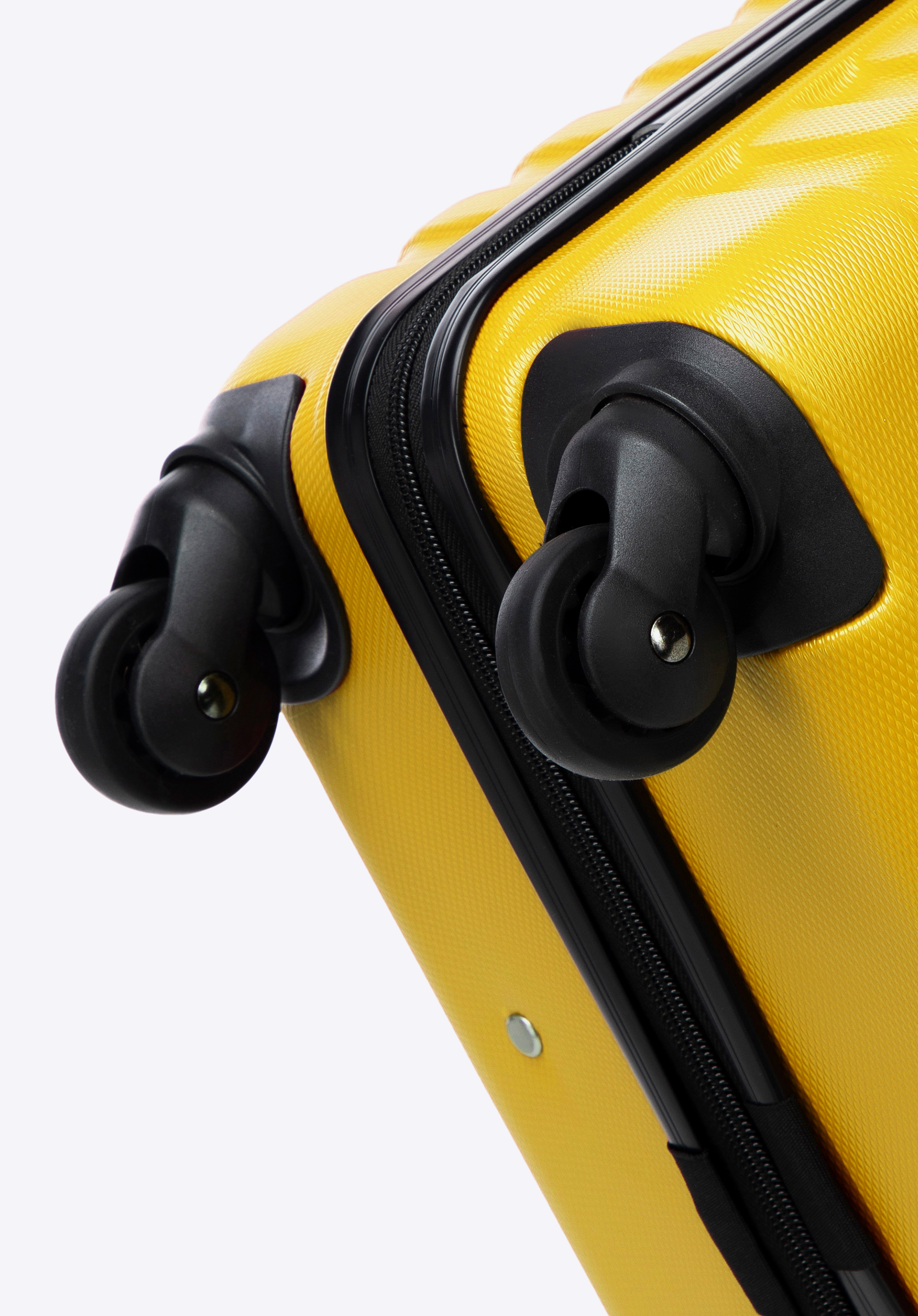 In dieser Kollektion befinden sich einfarbigen Kabinenkoffer, die aus strapazierfähigem ABS-Material hergestellt wurden. Dieses Modell passt perfekt zu einem Kosmetiketui in derselben Farbe. Dieser stillvolle Koffer ist in fünf verschiedenen Farben erhältlich: Schwarz, Rot, Grün, Blau und Gold.