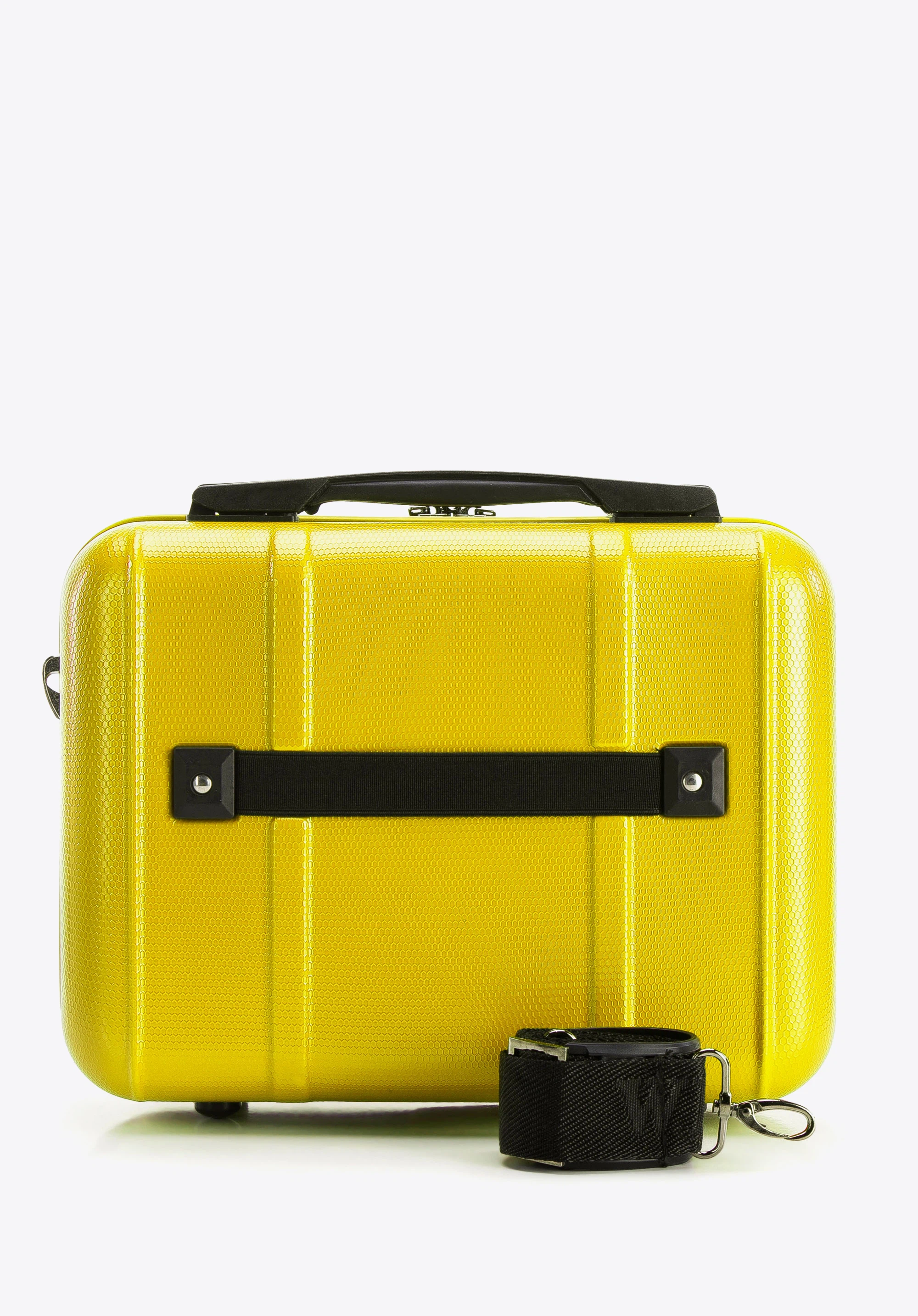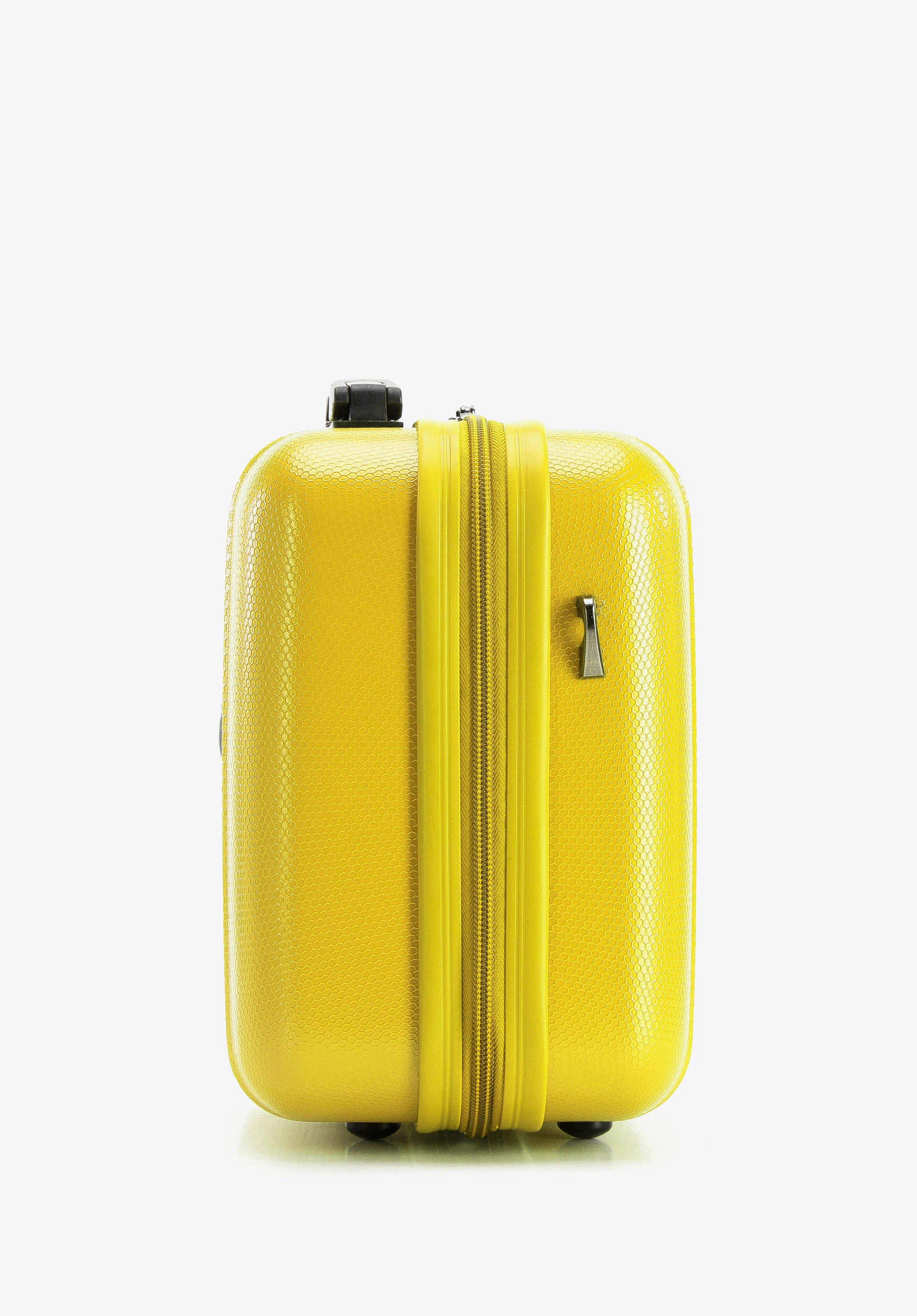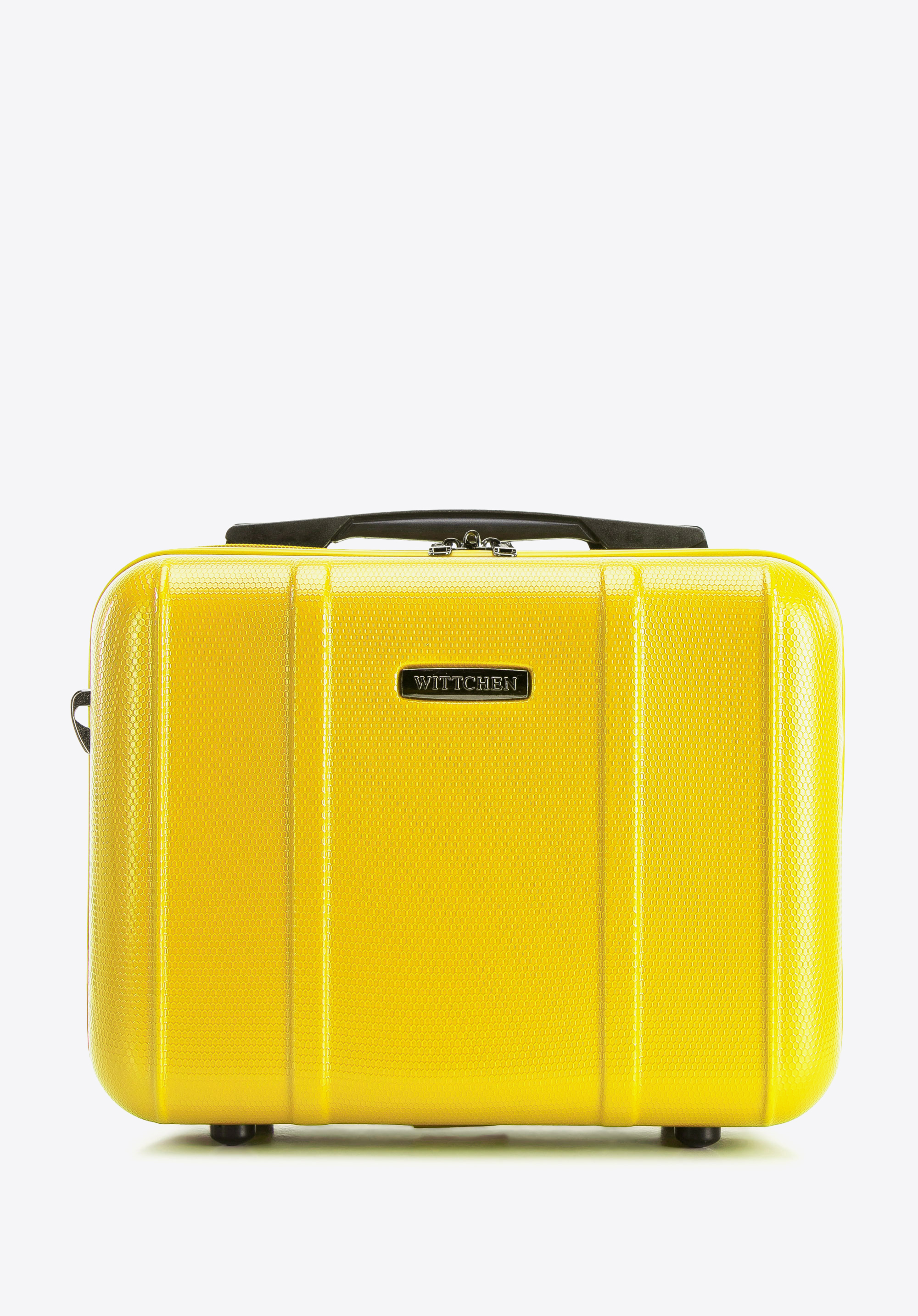 Der Kosmetikkoffer ist ein praktisches Accessoires für jede Frau. Er wurde aus strapazierfähigem Polycarbonat mit stilvoller vertikaler Prägung hergestellt. Dieses Modell findet den Platz für einen Reiseföhn, Ihre Lieblingsparfüms und Kosmetika. Die Kleinigkeiten können Sie in der zentralen Reißverschlusstasche verstecken. Kombinieren Sie das Modell mit Koffern aus unserer Kollektion, um während jeder Reise einen einheitlichen Look zu gewährleisten. Dieser moderne Kosmetikkoffer aus Polycarbonat ist ein stilvolles Accessoire für Ihre Reise und Ihr Zuhause.
