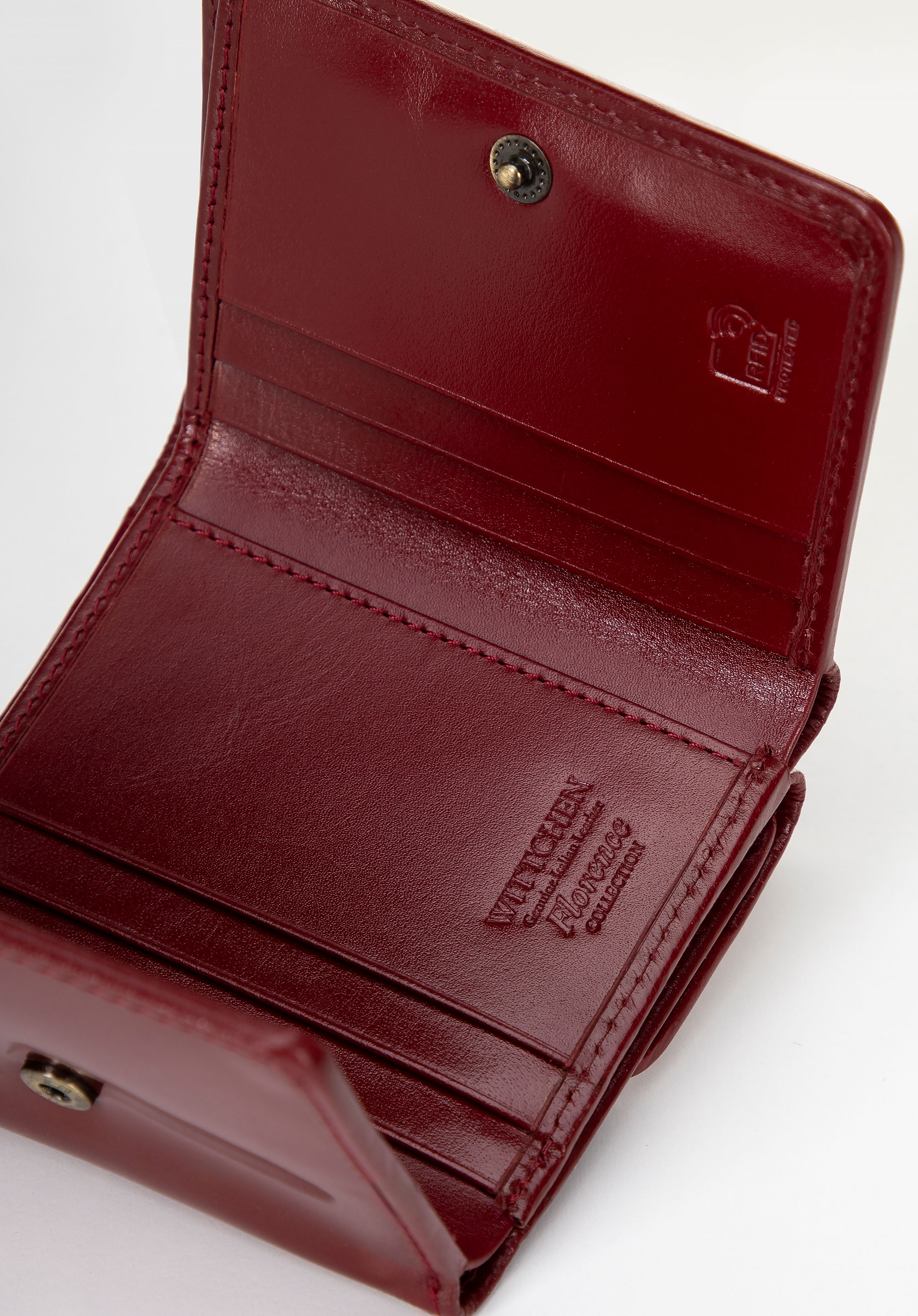 Wählen Sie ein einzigartiges Accessoire, das Ihre Klasse unterstreicht und jedes Styling ergänzt. Dieses elegante Damenportemonnaie aus hochwertigem, lackiertem Naturleder mit dezentem Glanz verbindet zeitloses Design mit modernen Lösungen. Die monochromen Farben, unterbrochen von einem goldenen Akzent - dem WITTCHEN-Wappen - verleihen ihr einen luxuriösen Charakter, ideal für Frauen, die Wert auf Stil und Funktionalität legen.