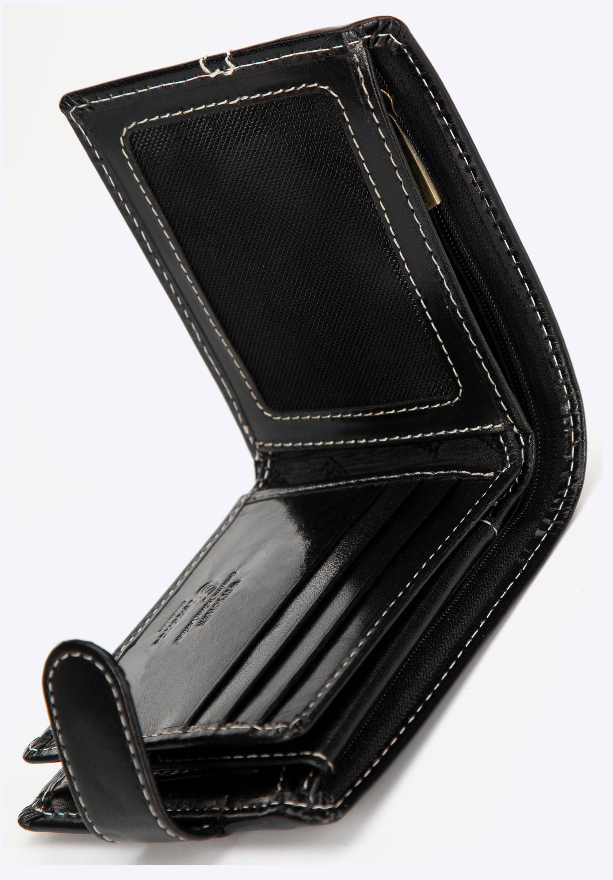 - Innenausstattung: Zwei Scheinfächer, davon eines mit Reißverschluss, und ein Münzfach mit Reißverschluss.