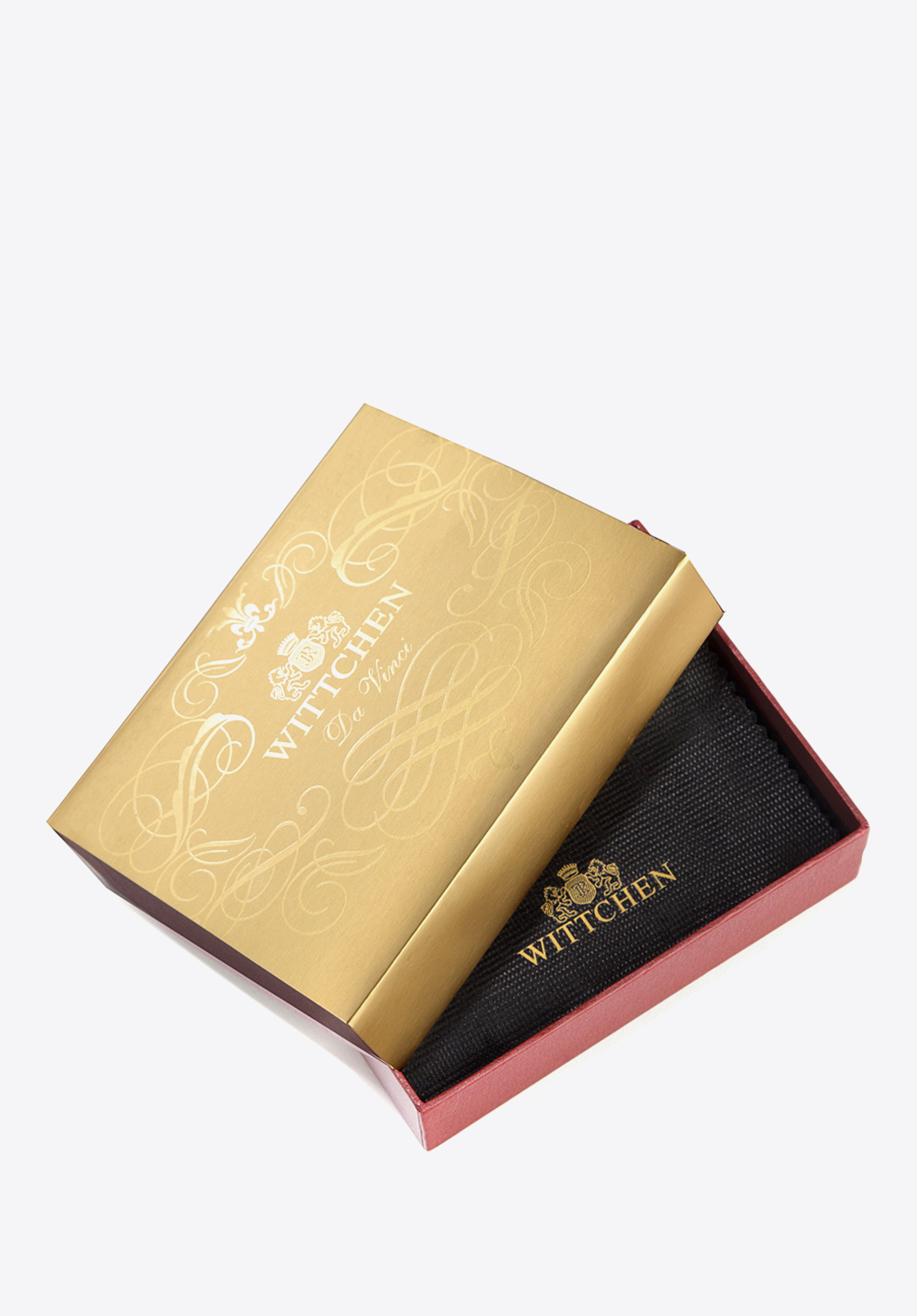 Handgearbeitet aus Spitzenqualität Kalbsleder. Sorgfältige und elegante Fertigstellung. Logo - Firmeninitialien auf einem Wappenschild in einer altgoldenen Farbe. Lieferung erfolgt in exklusiver Verpackung mit signiertem WITTCHEN-Logo.