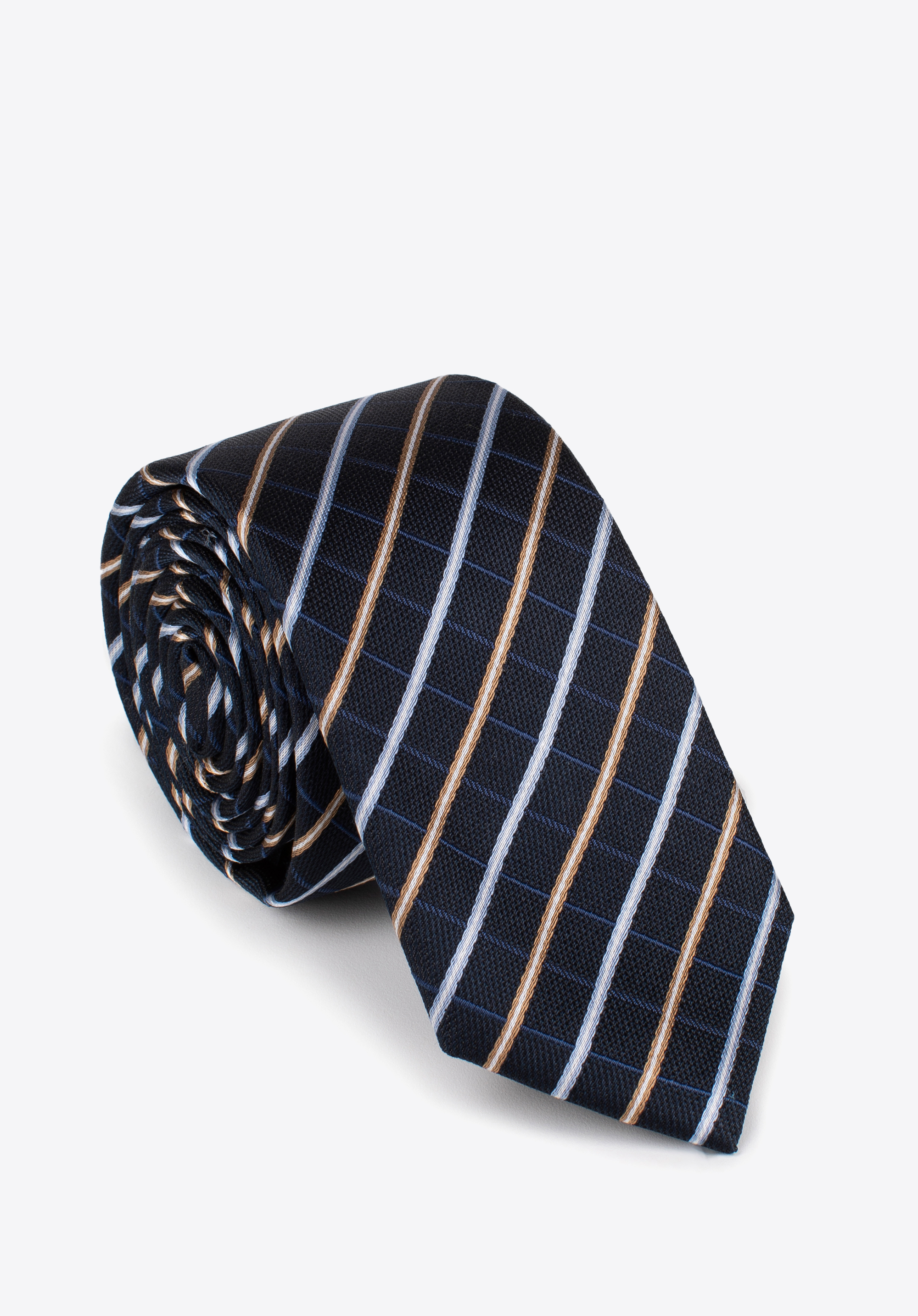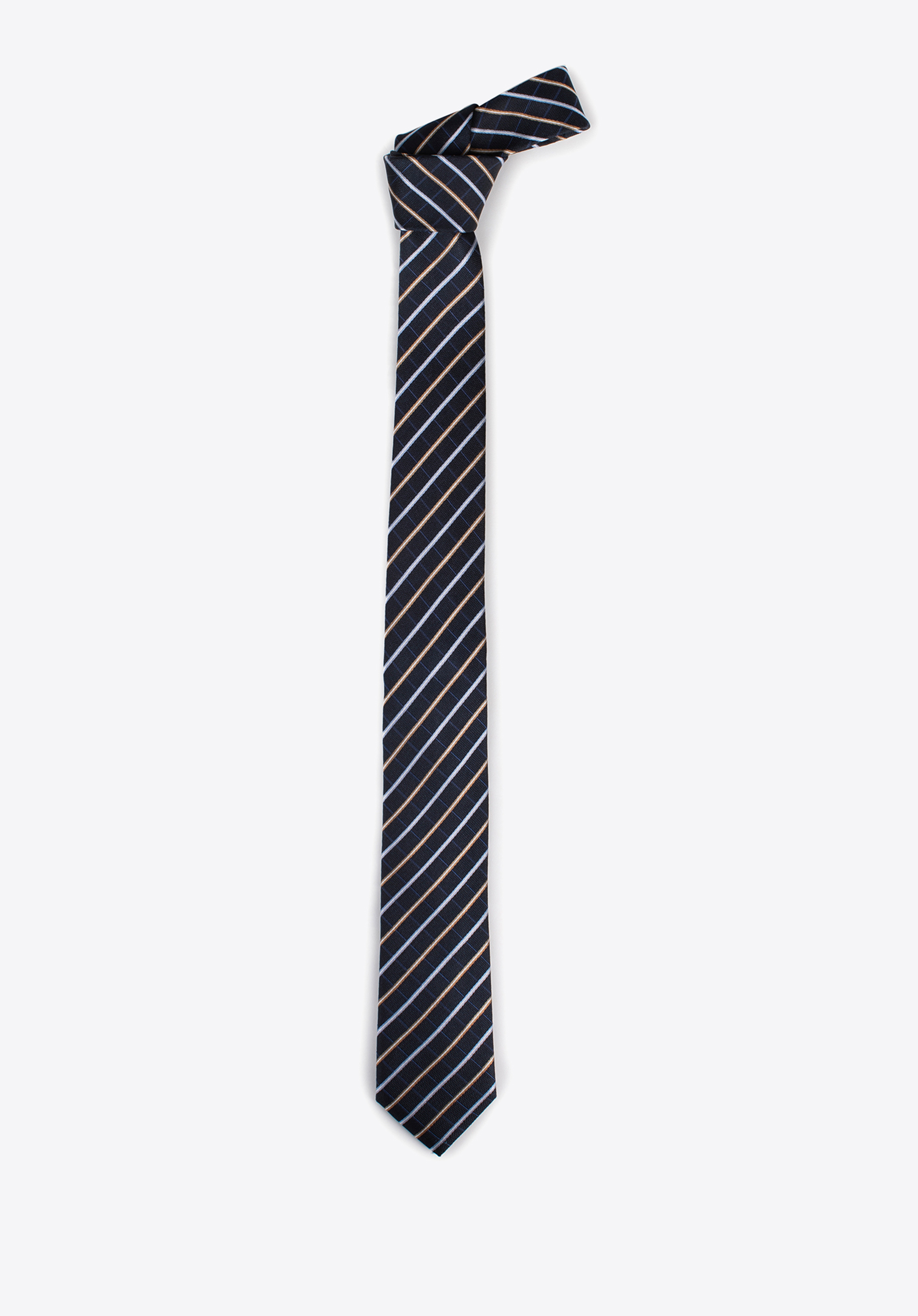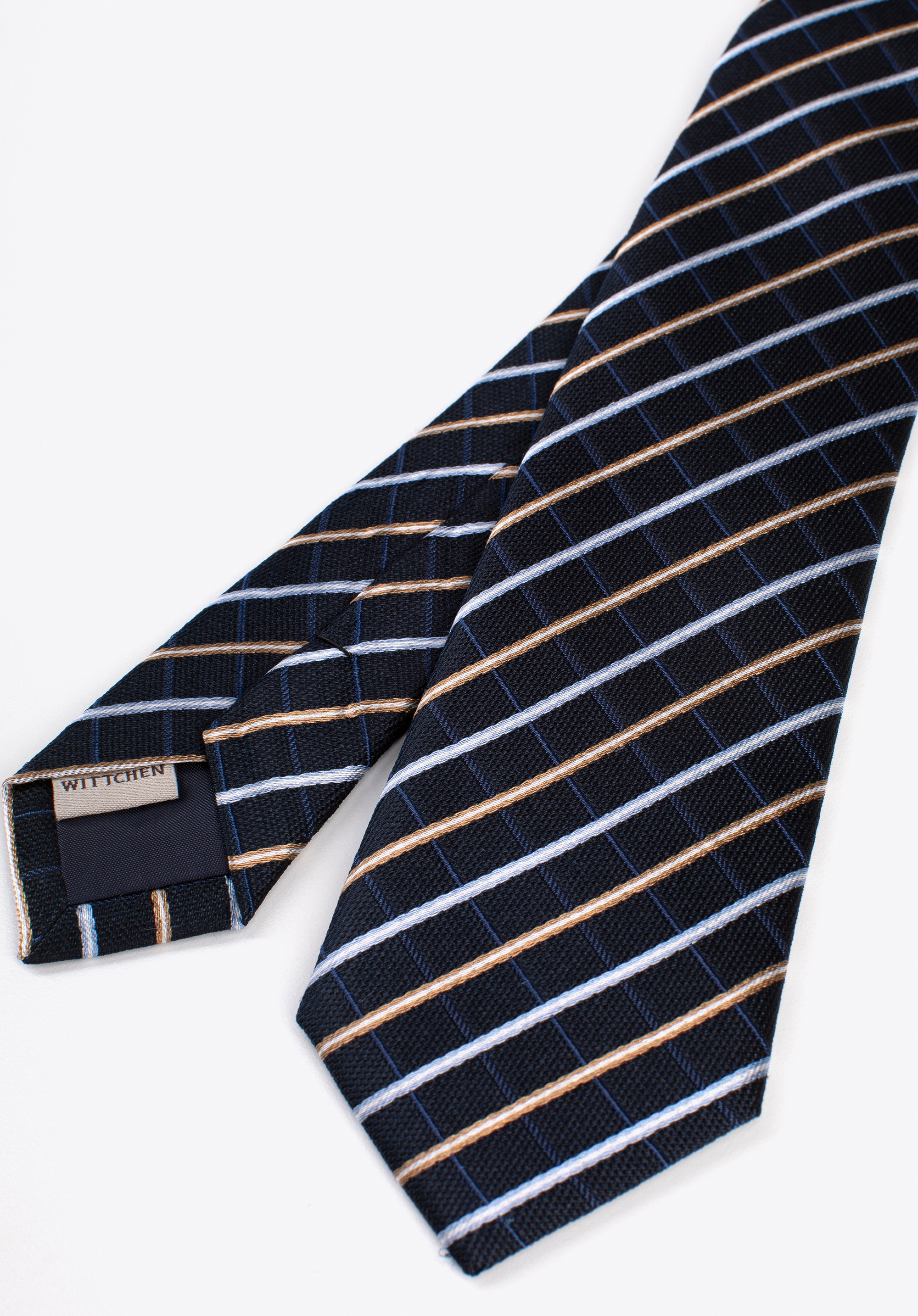 Gemusterte Seidenkrawatte Farbe: dunkelblau-beige