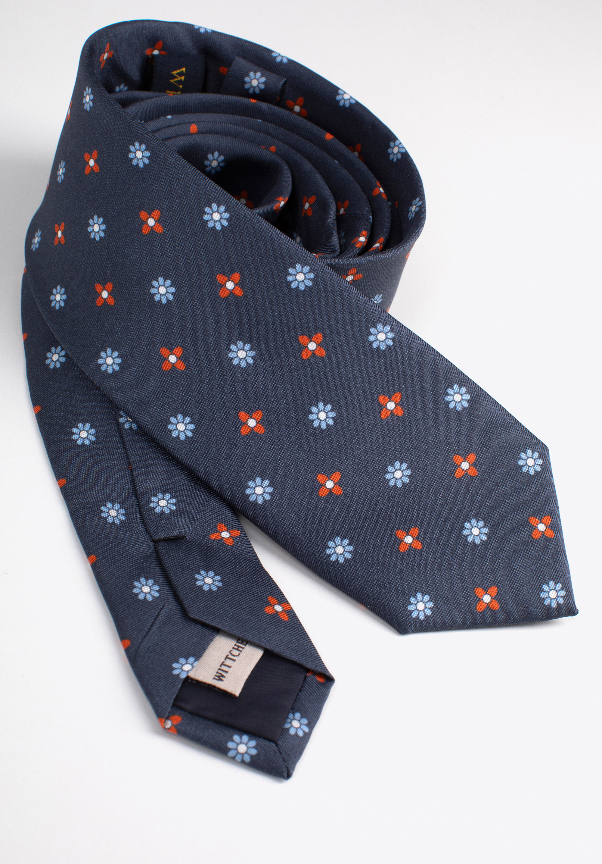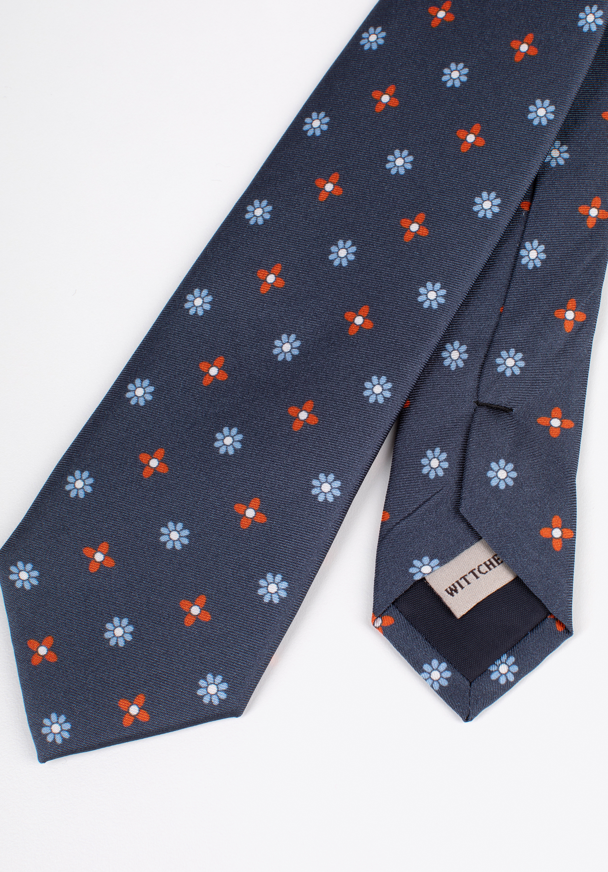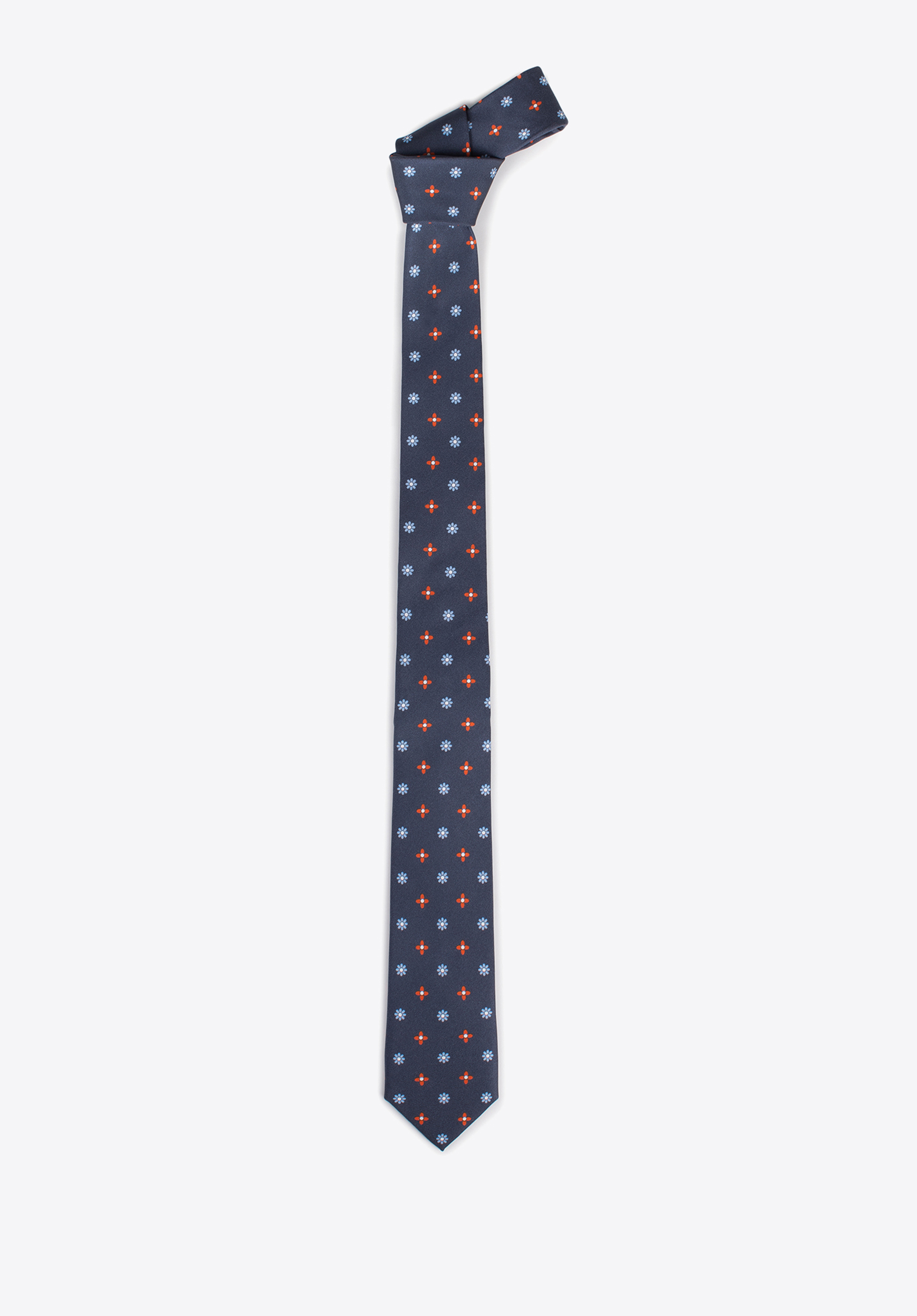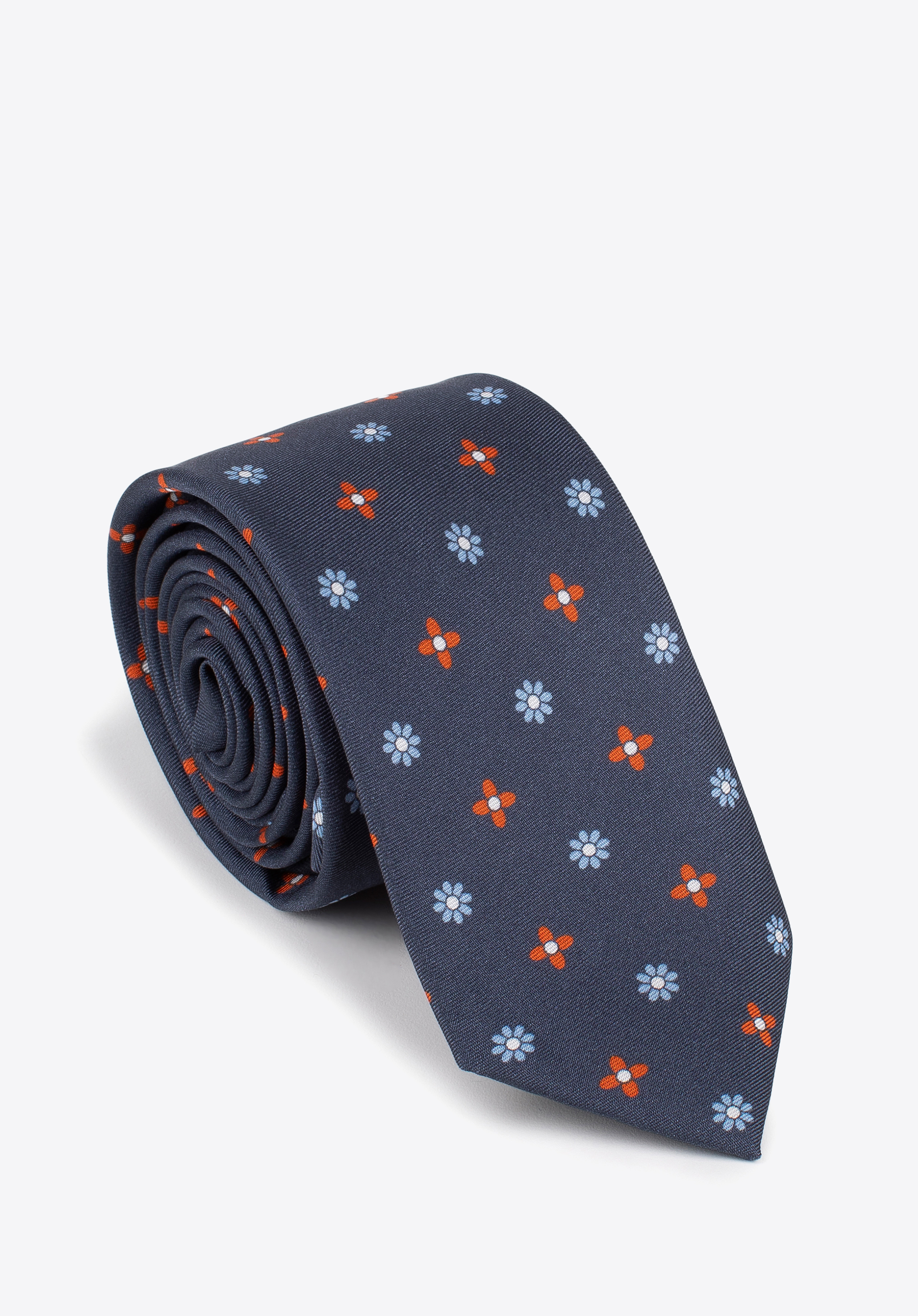 Gemusterte Seidenkrawatte Farbe: Marineblau-Orange