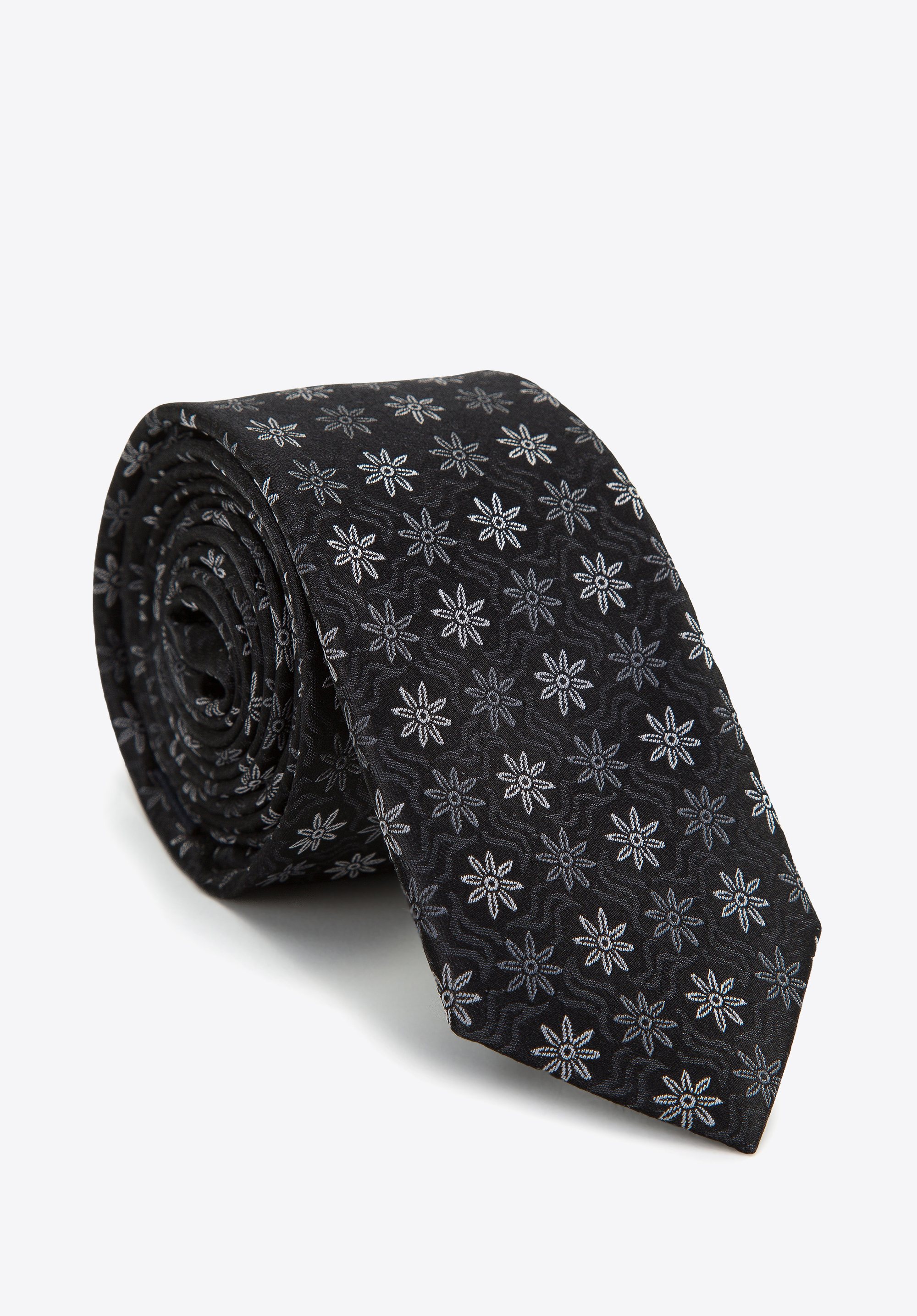 Gemusterte Seidenkrawatte Farbe: schwarz-grau