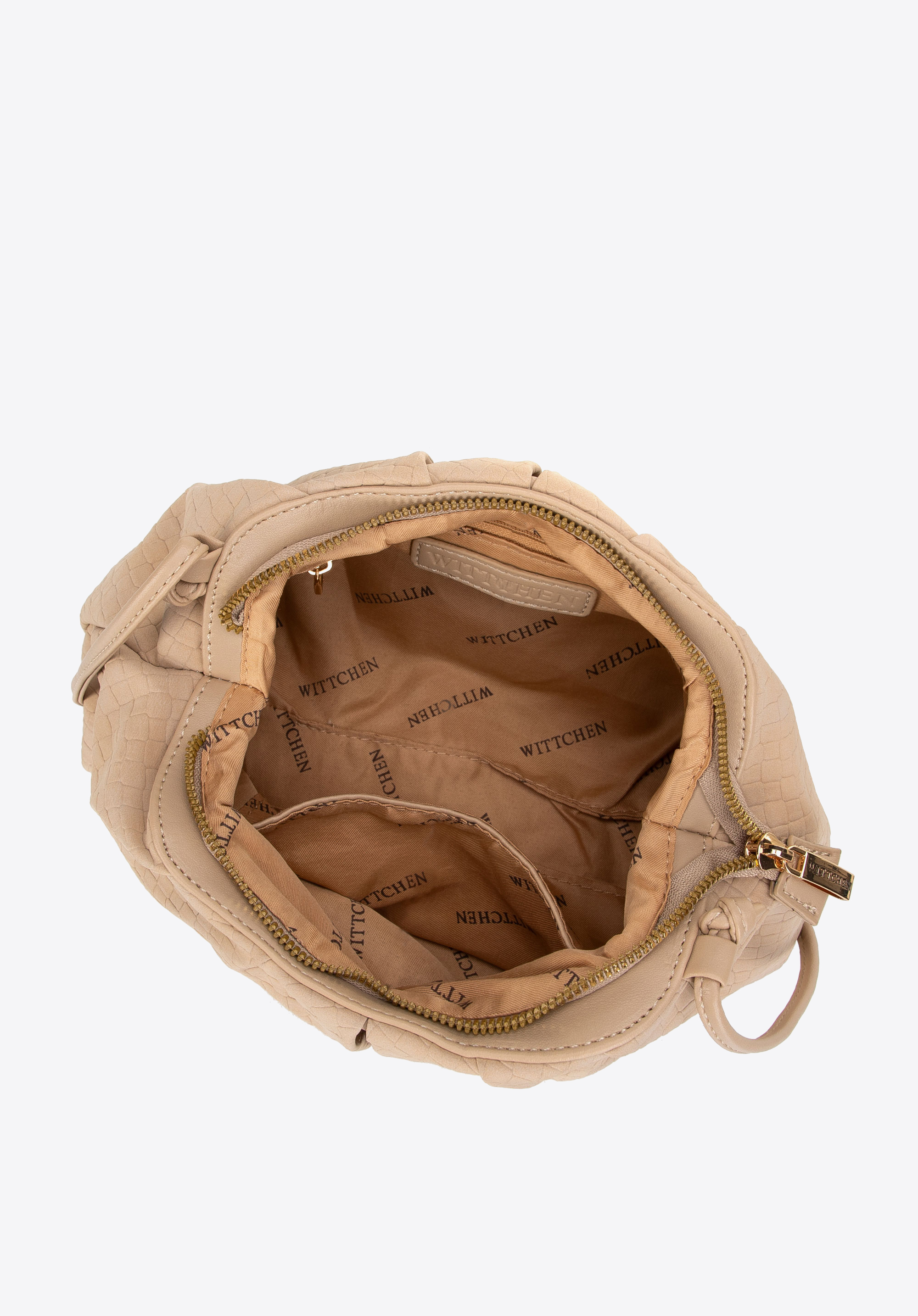 Entdecken Sie unvergleichliche Eleganz und Funktionalität mit unserer Damenhandtasche aus Kunstleder. Ihr einteiliges Innenfach mit Innentaschen (eine offene und eine mit Reißverschluss) sorgt für unübertroffene Organisation ohne Kompromisse. Das auf die Oberfläche geprägte geometrische Muster verleiht ihr einen originellen Designercharakter, während der robuste Boden den Inhalt schützt und Stabilität verleiht. Der verstellbare Riemen passt sich perfekt Ihren Bedürfnissen an und das dezente WITTCHEN-Logo auf dem Futter und der Vorderseite der Tasche unterstreicht die hohe Qualität des Produkts.