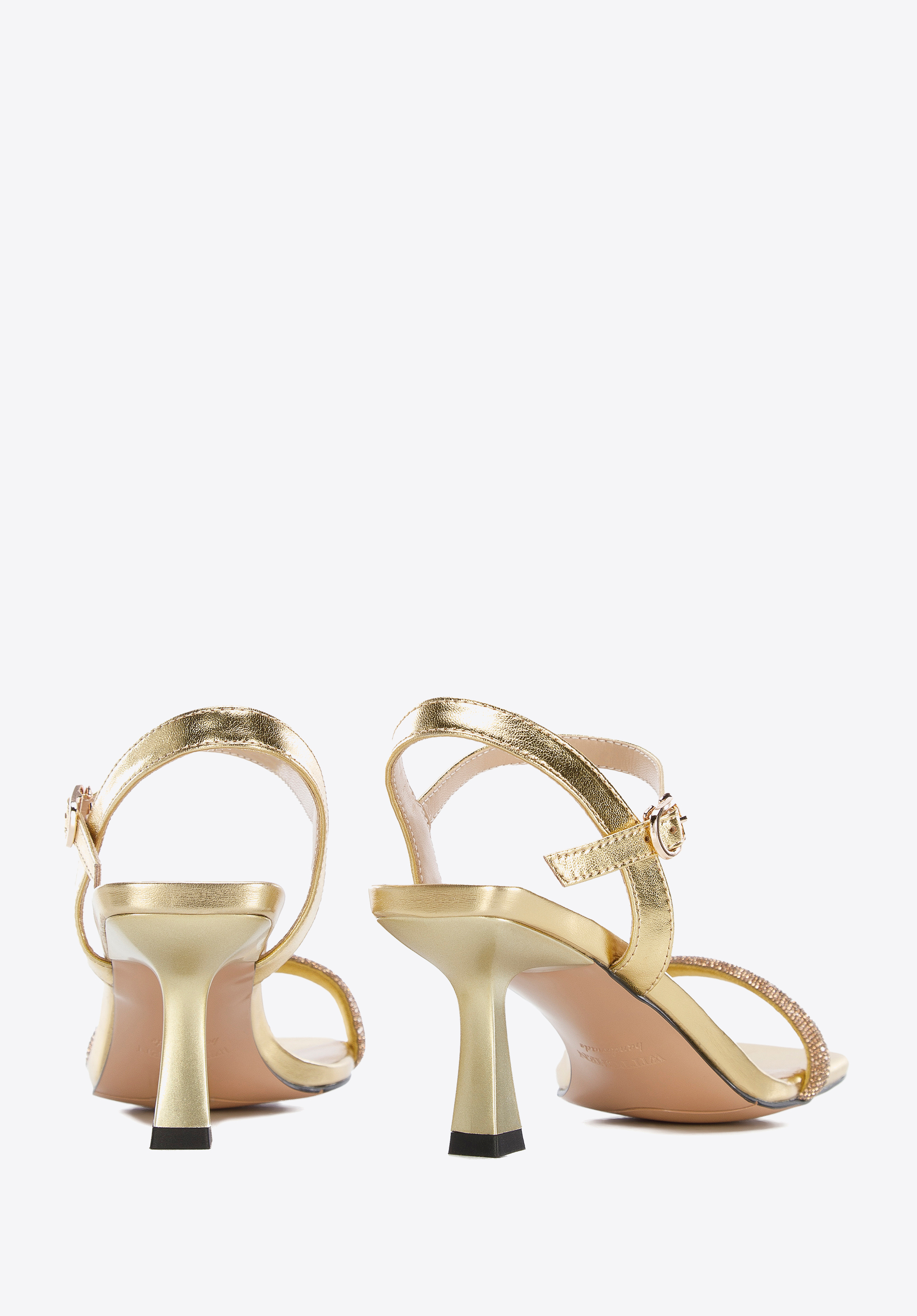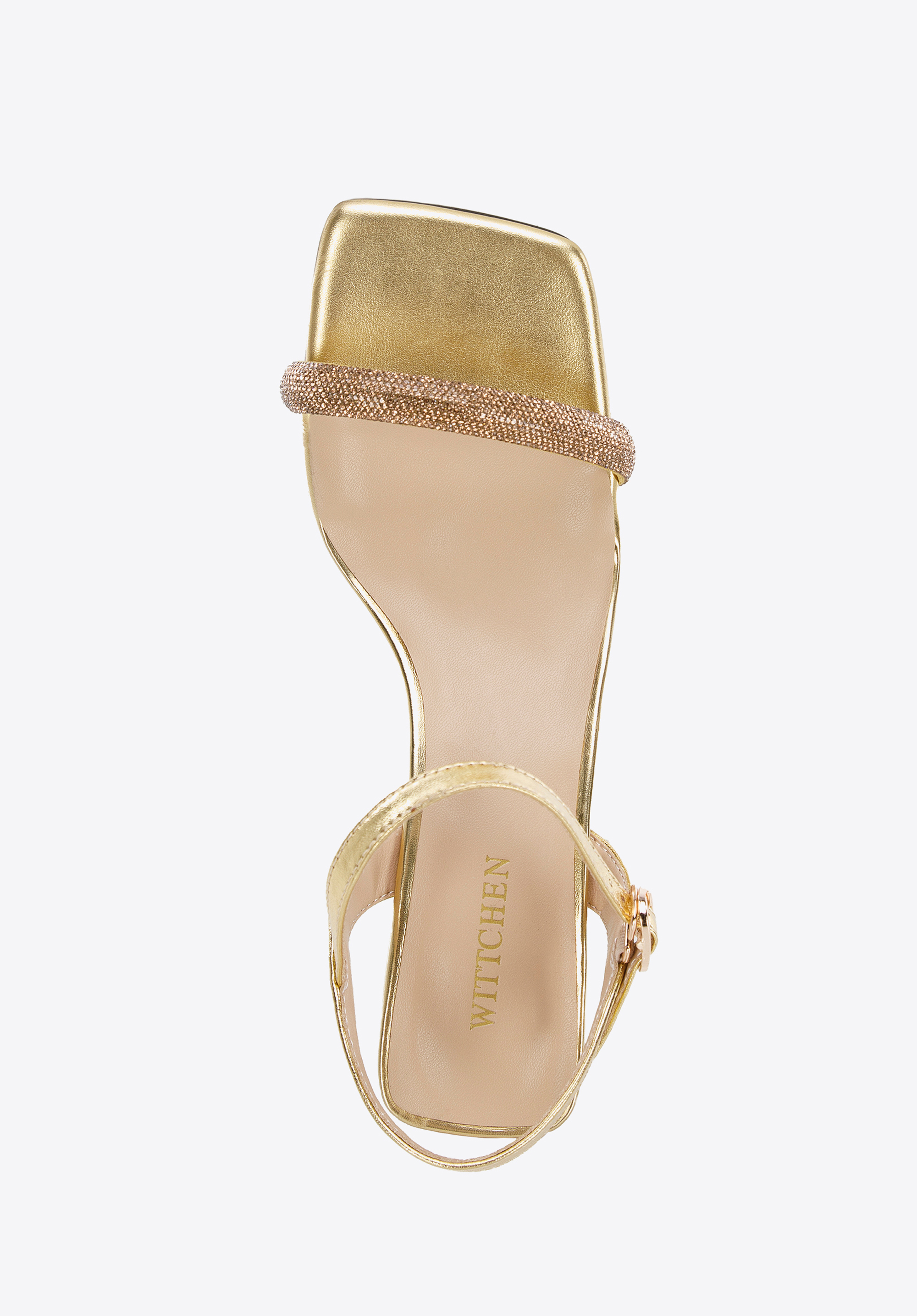 goldene Sandaletten aus Leder mit glänzendem Riemen