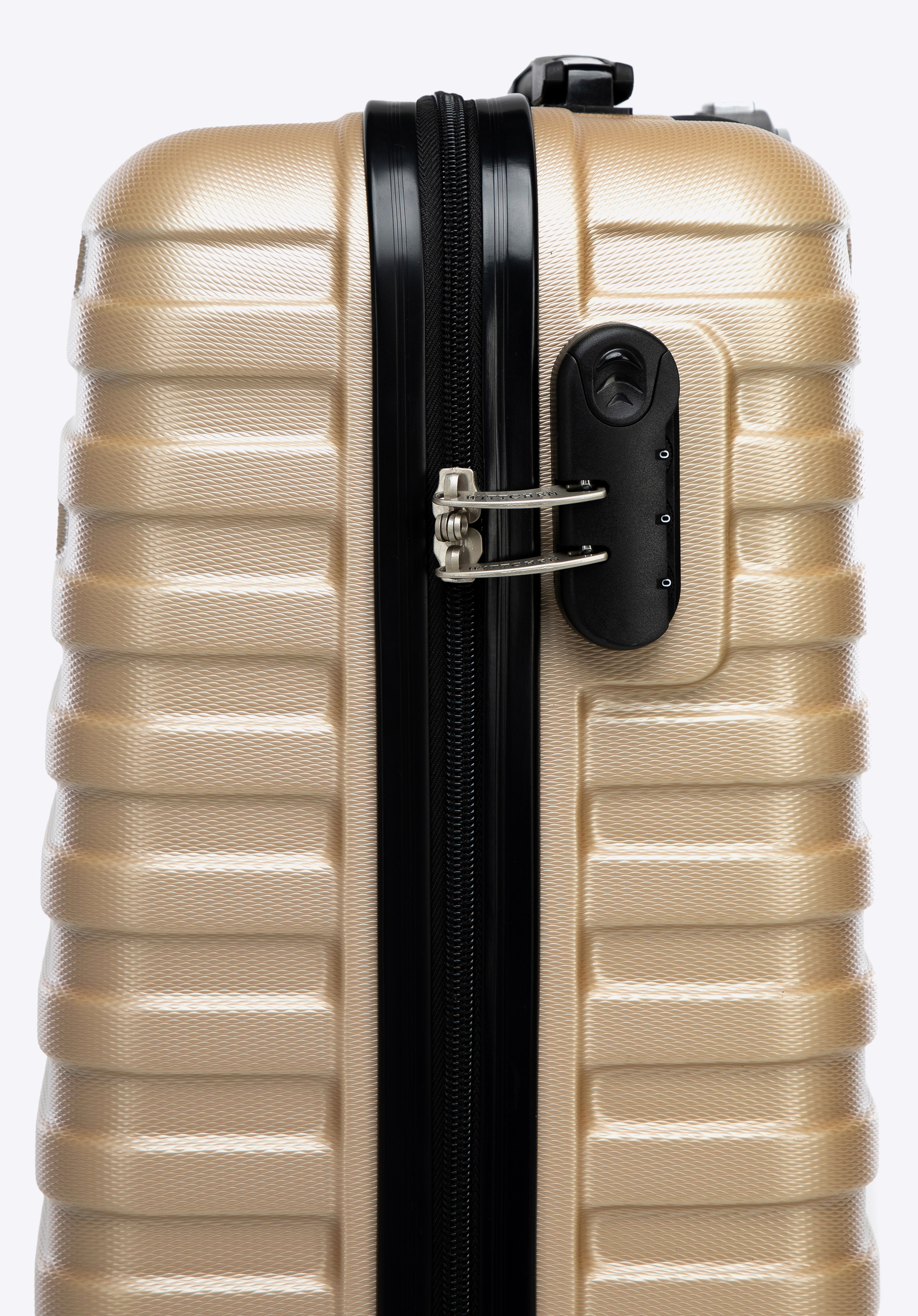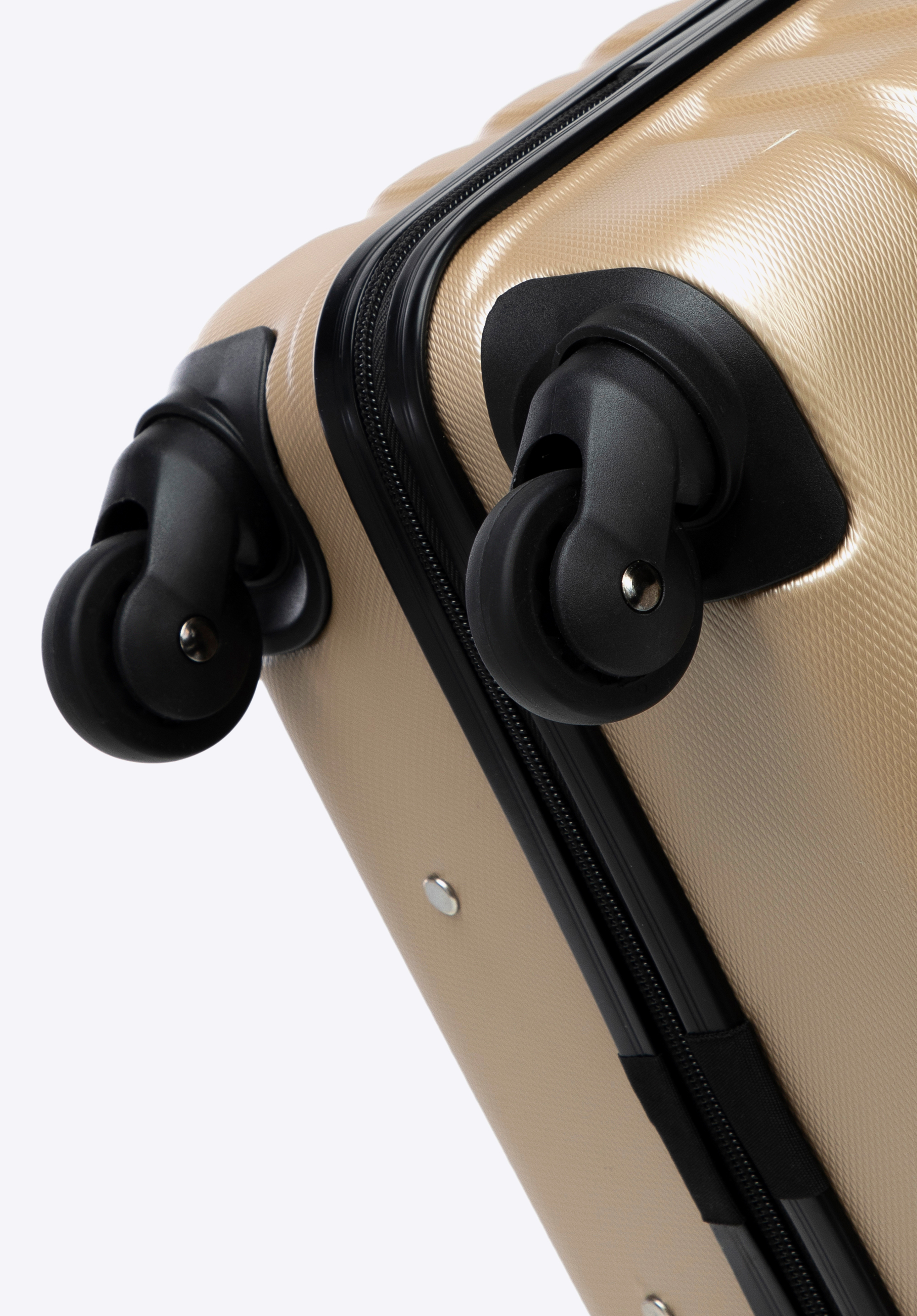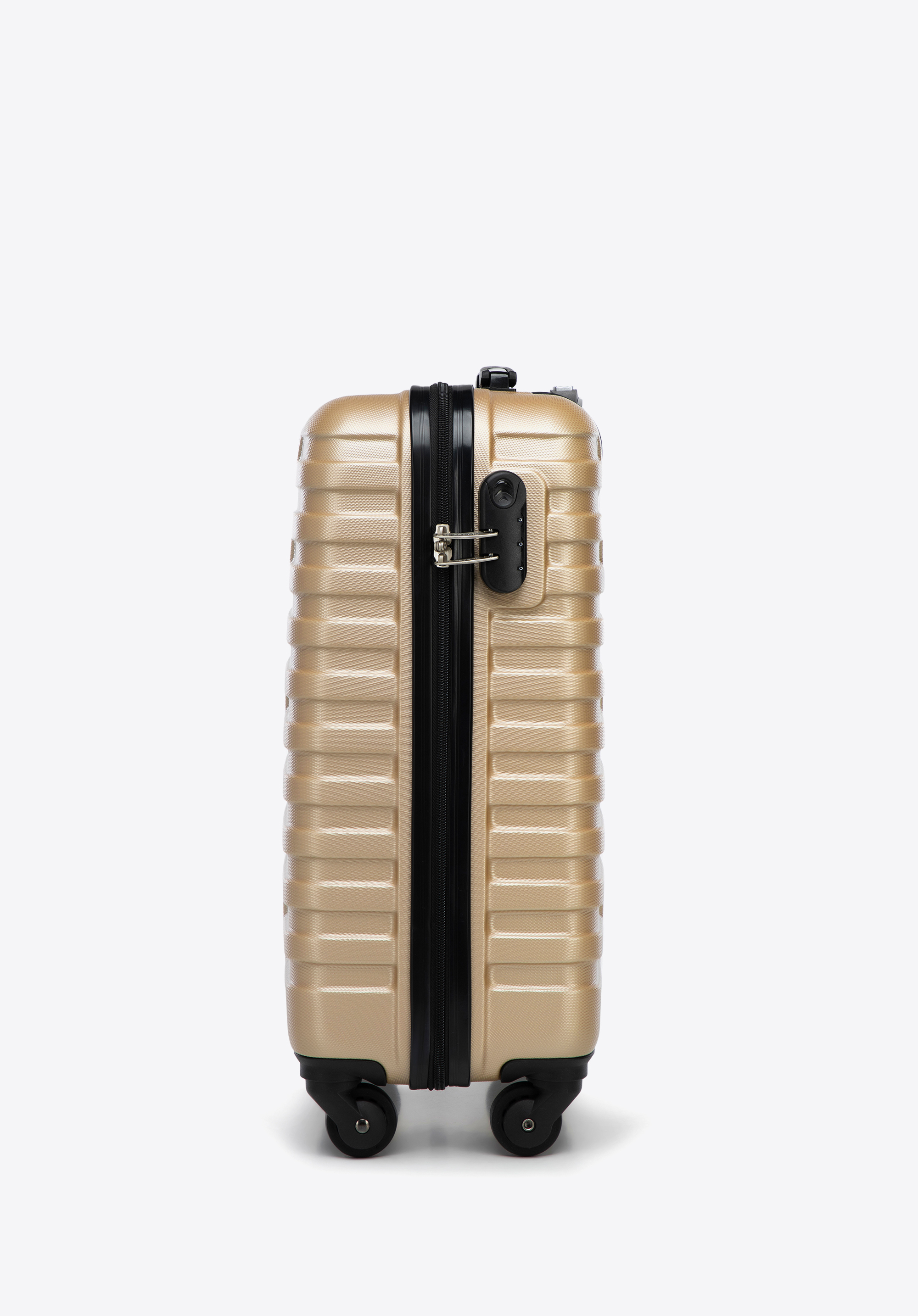 In dieser Kollektion befinden sich einfarbigen Kabinenkoffer, die aus strapazierfähigem ABS-Material hergestellt wurden. Dieses Modell passt perfekt zu einem Kosmetiketui in derselben Farbe. Dieser stillvolle Koffer ist in fünf verschiedenen Farben erhältlich: Schwarz, Rot, Grün, Blau und Gold.
