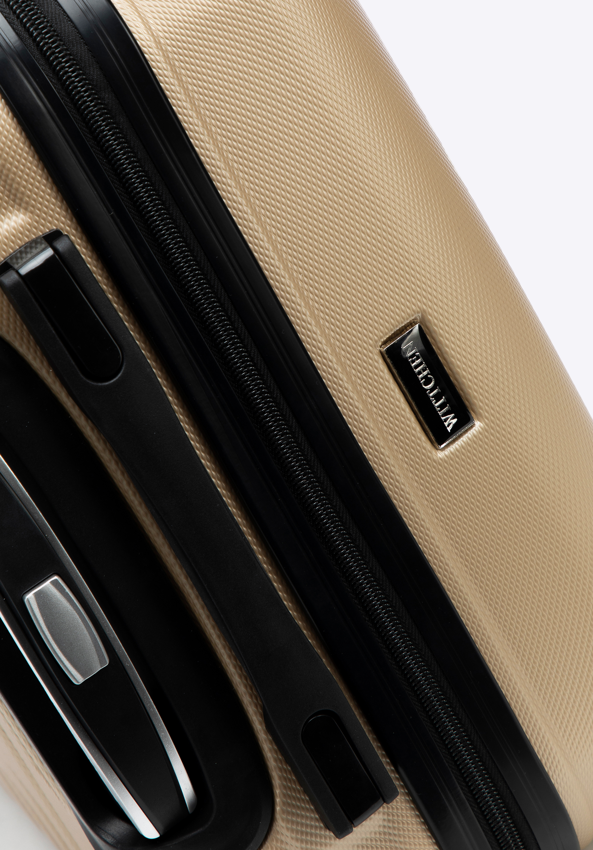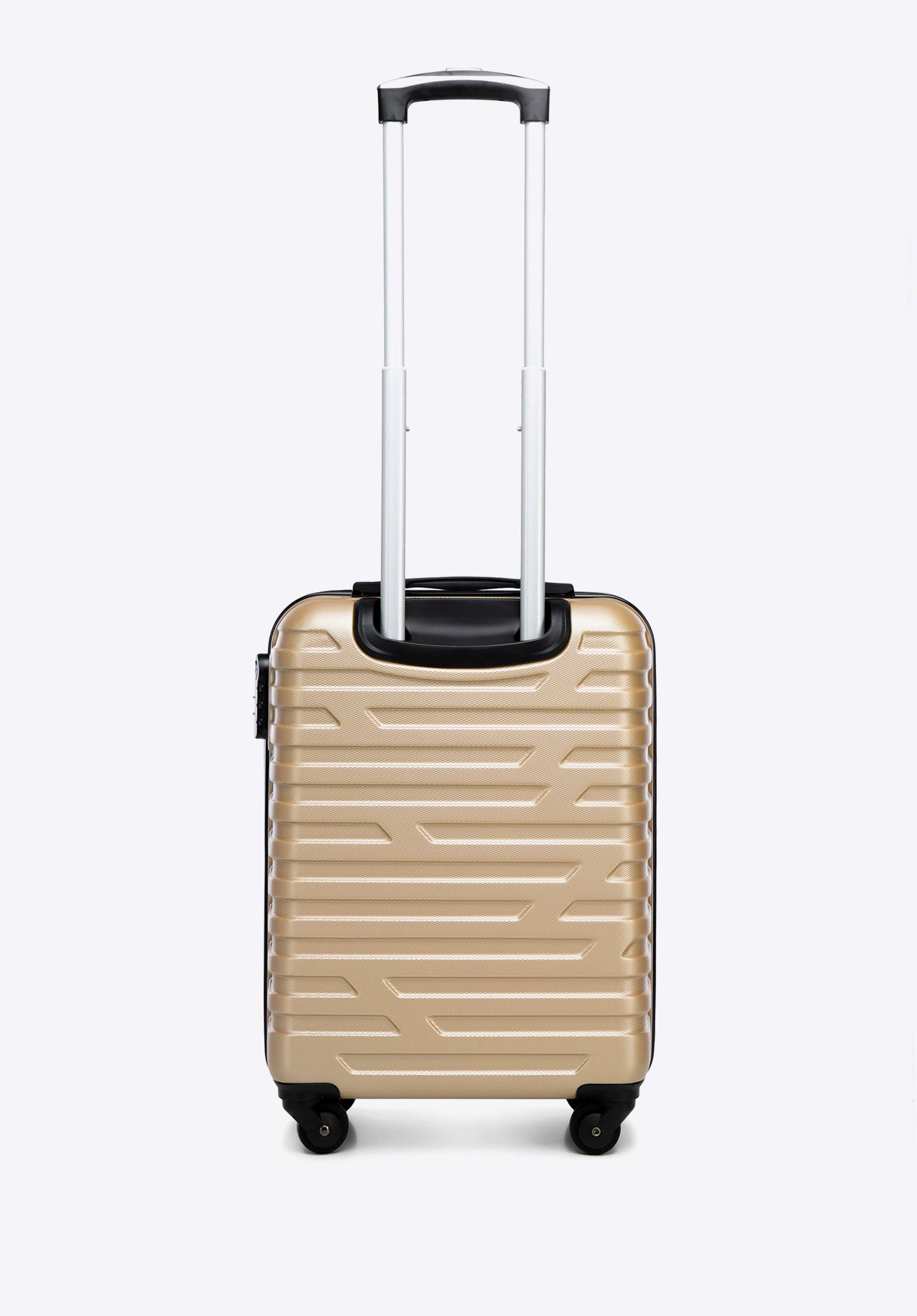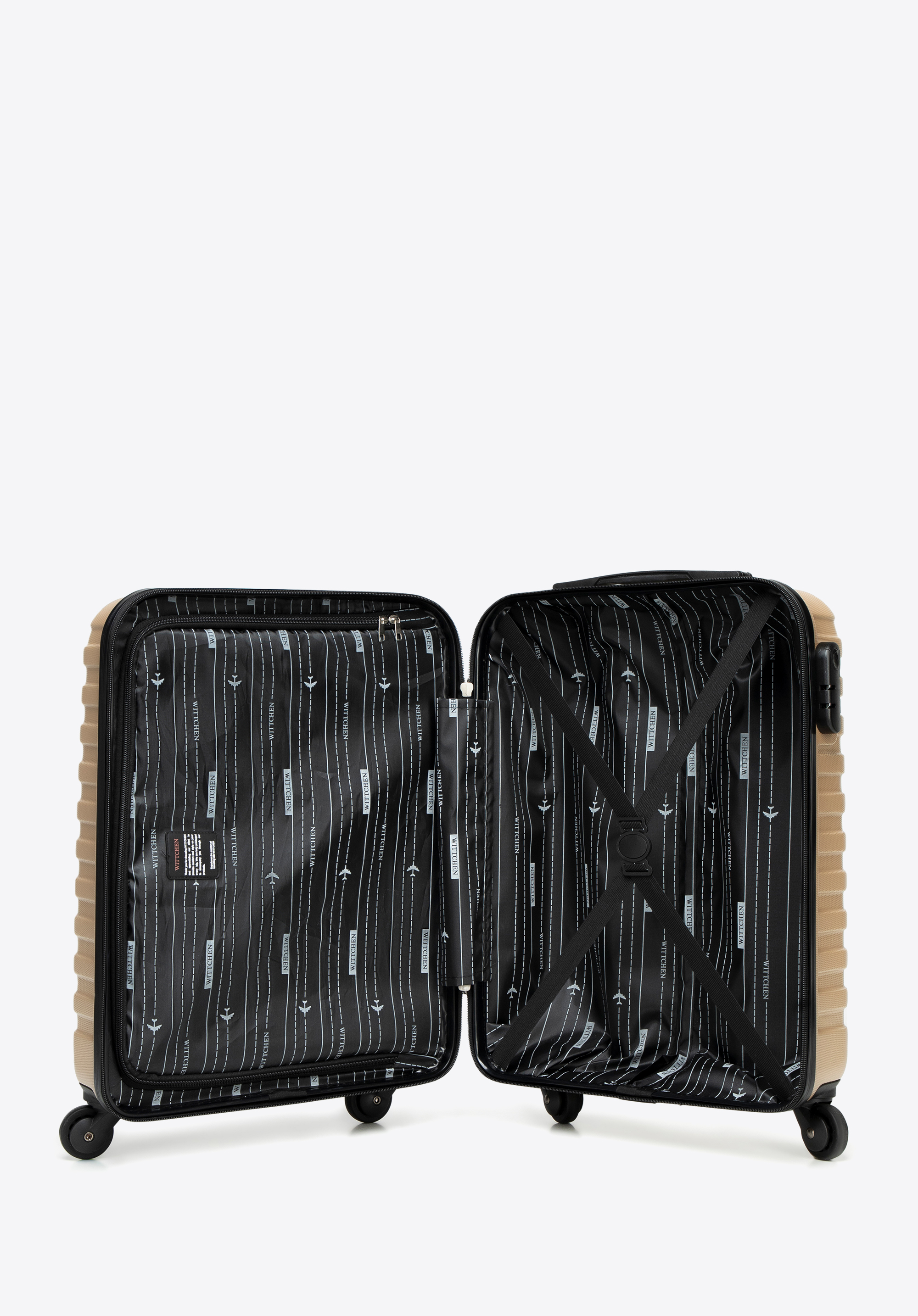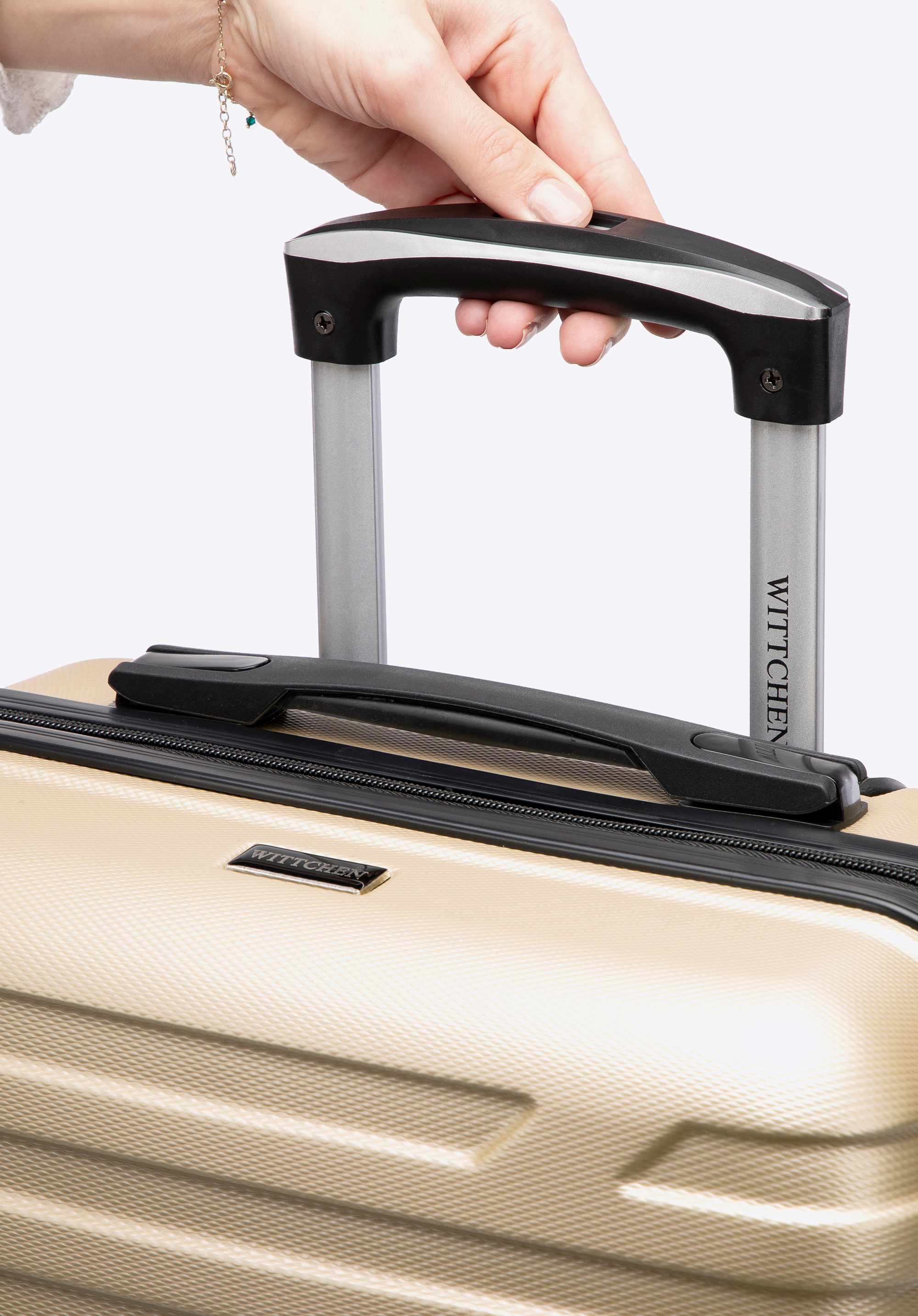 In dieser Kollektion befinden sich einfarbigen Kabinenkoffer, die aus strapazierfähigem ABS-Material hergestellt wurden. Dieses Modell passt perfekt zu einem Kosmetiketui in derselben Farbe. Dieser stillvolle Koffer ist in fünf verschiedenen Farben erhältlich: Schwarz, Rot, Grün, Blau und Gold.