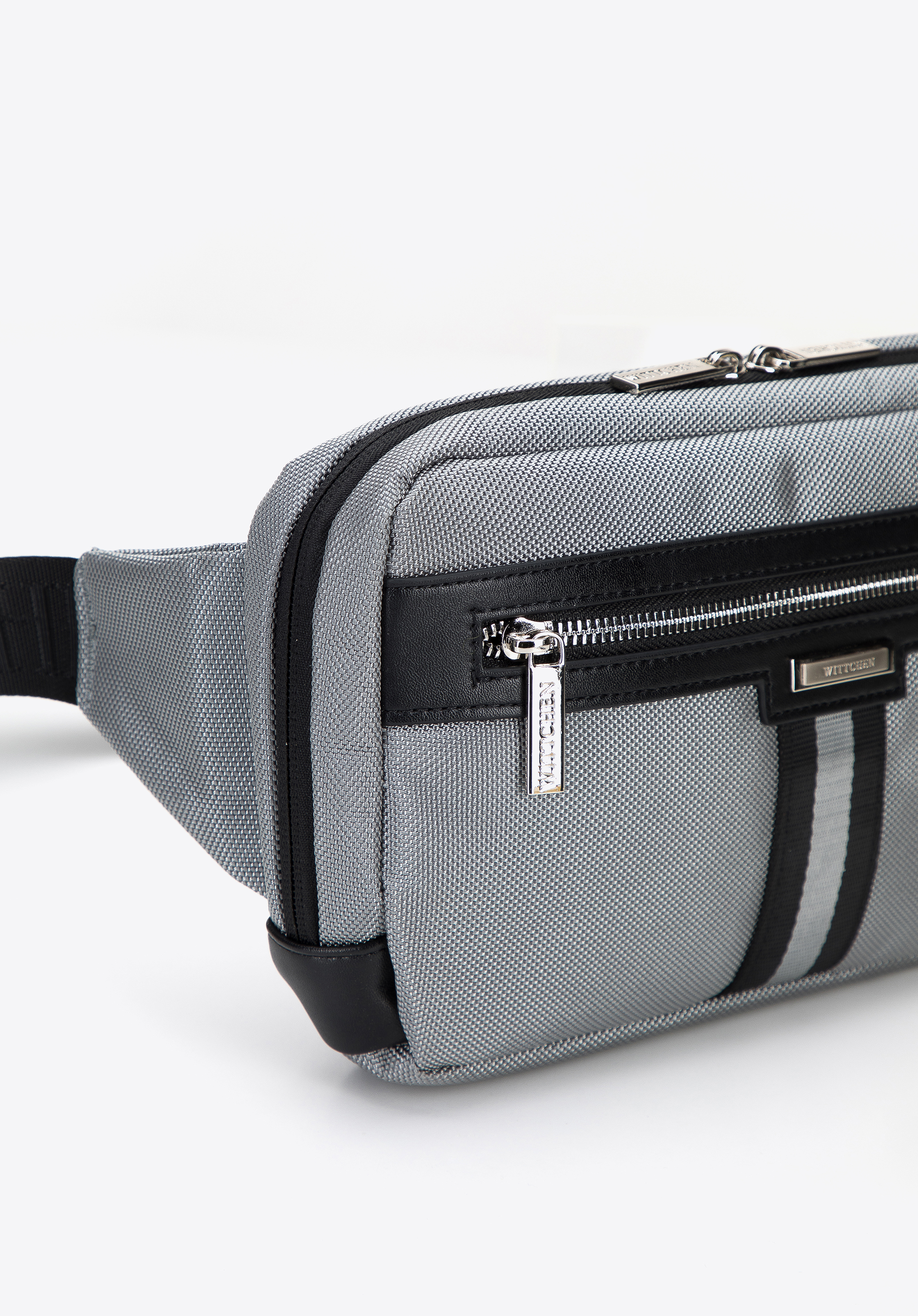 Diese Gürteltasche wird sowohl Sport- als auch Alltagsstilisierungen stilvoll ergänzen. Sie wurde aus hochwertigem Polyester mit zartem Glanz gefertigt. Sie wird mit einem Reißverschluss geschlossen, der sich weit genug öffnen lässt, um bequem verwendet zu werden. Auf der Vorderseite befindet sich ein dekoratives Band. Echtledereinsätze verleihen ihr Eleganz. Darin passen Geldbeutel, Telefon, Ersatzhandschuhe und ein paar Kleinigkeiten - perfekt für eine Fahrradtour, einen Spaziergang oder eine kurze Besichtigung. Eine Gürteltasche für Herren mit dem Band ist ein zeitloses Accessoire, das es wert ist, in Ihrem Kleiderschrank zu sein.