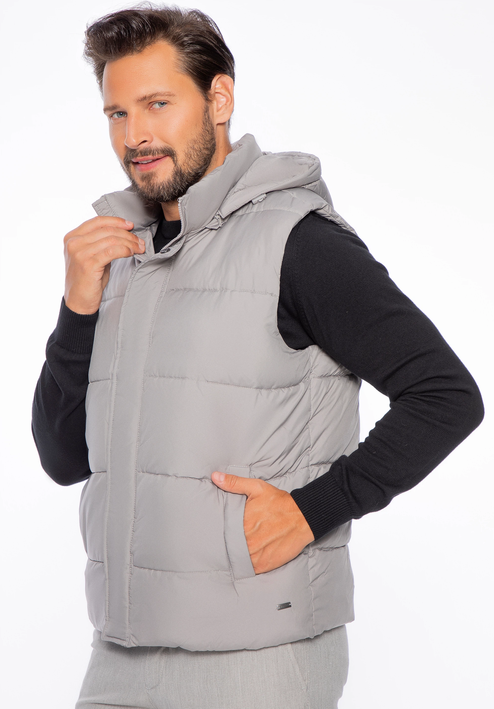 Die isolierte Weste ist in jeder Jahreszeit praktisch. Sie können sie im Herbst anstelle einer Jacke oder in den wärmeren Tagen des Winters über einem Pullover oder Sweatshirt tragen. Sie ist aus strapazierfähigem Polyester gefertigt und mit einer klassischen Steppung versehen. Das Innere der Jacke und die Kapuze sind mit einem weichen Polyestereinsatz versehen, der Sie warm und bequem hält. Praktisch ist die abnehmbare Kapuze mit Kordelzug, die Ihren Kopf fest umschließt. Die Herren-Steppweste mit abnehmbarer Kapuze ist ein vielseitiges Accessoire, das viele Jahre lang hält.