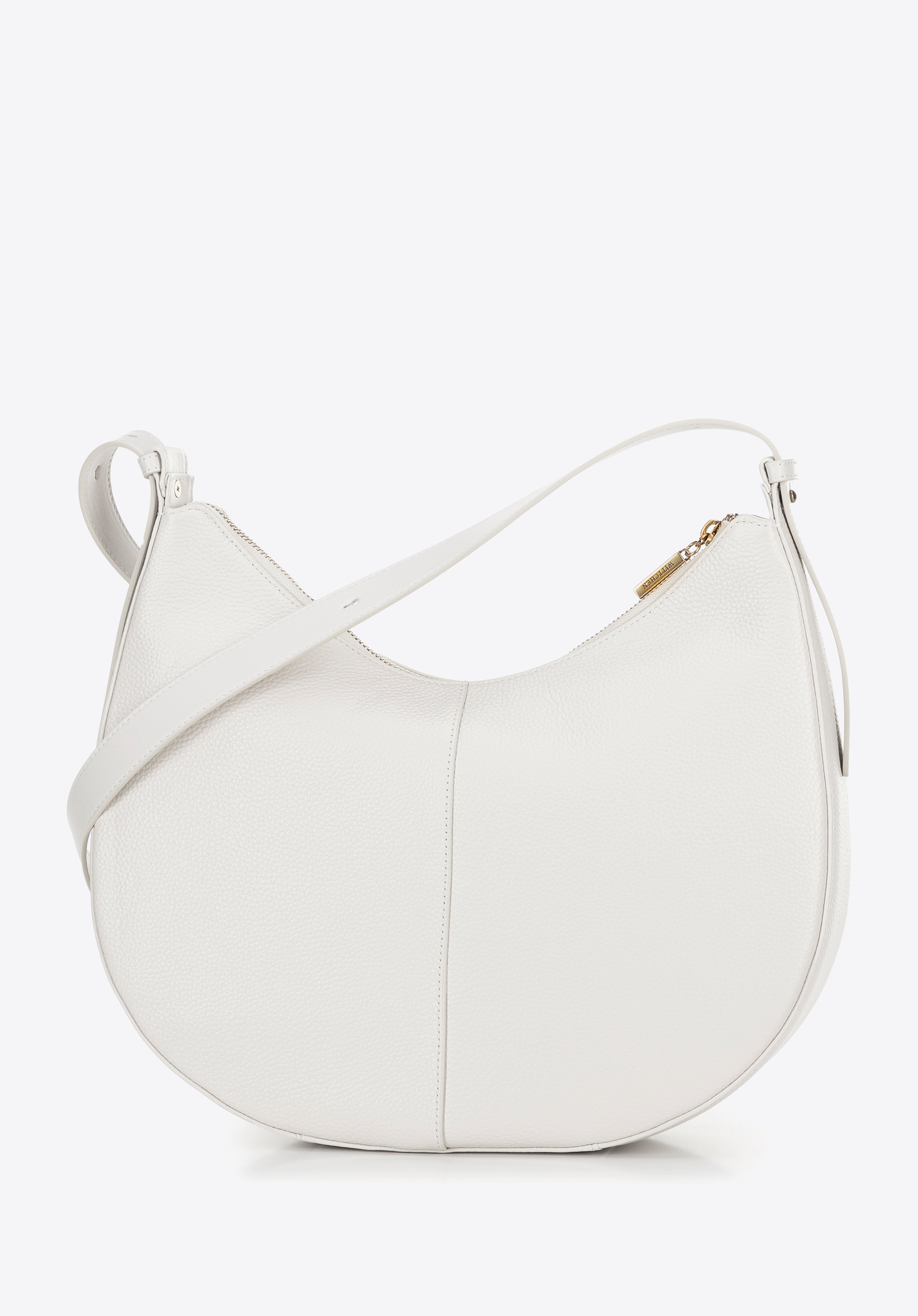 Schlicht und doch stilvoll – unsere Baguette-Tasche vereint zeitloses Design mit modernen Details. Dieses Accessoire ist aus Naturleder gefertigt, während der Riemen aus Mikrofaser gefertigt ist , die perfekt Leder imitiert. Sie ist die ideale Wahl für Frauen, die Wert auf Eleganz und Funktionalität legen. Dank des leicht verstärkten Bodens behält die Handtasche den ganzen Tag lang ihre Form, und der verstellbare Riemen bietet Ihnen Freiheit und Komfort.