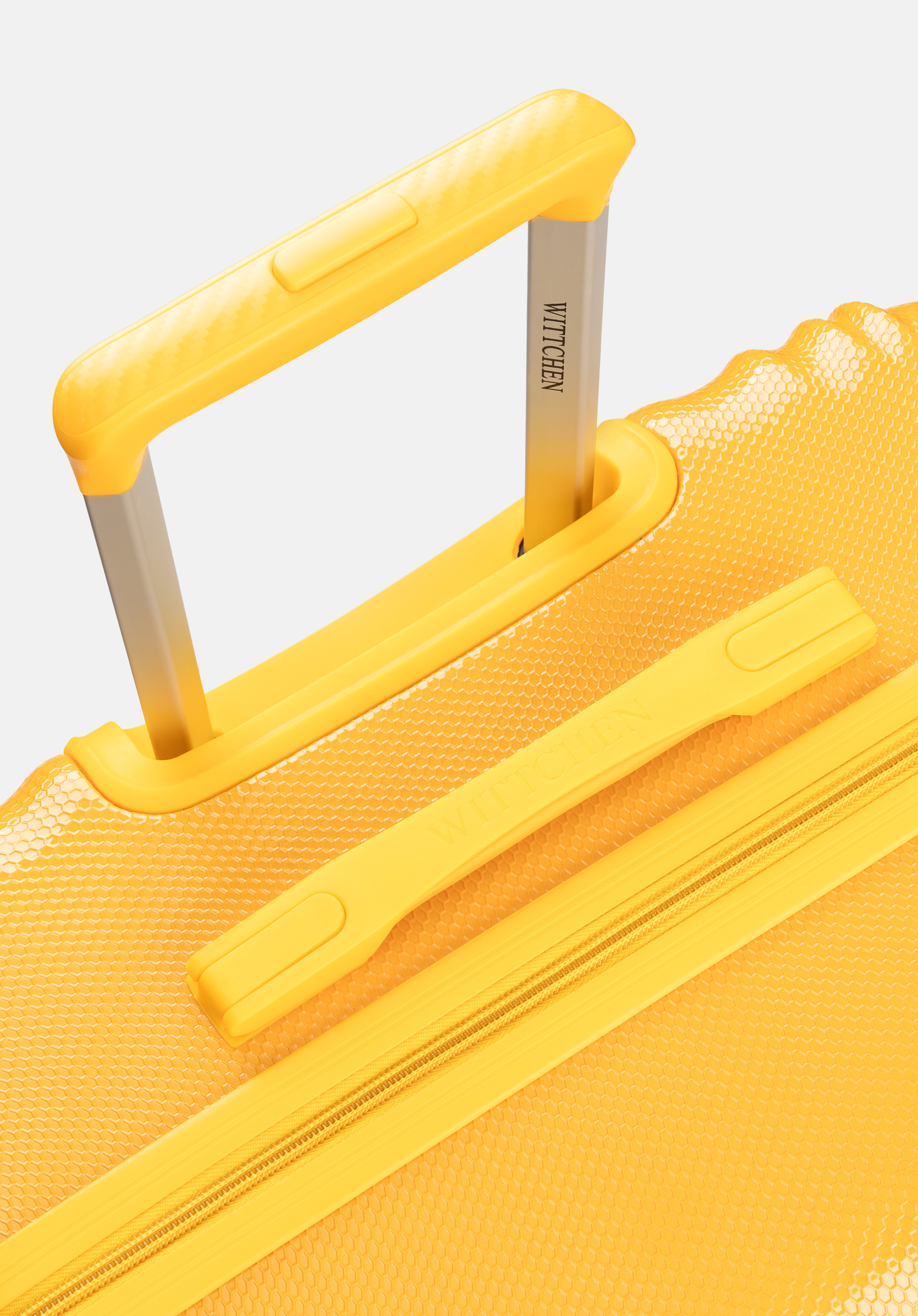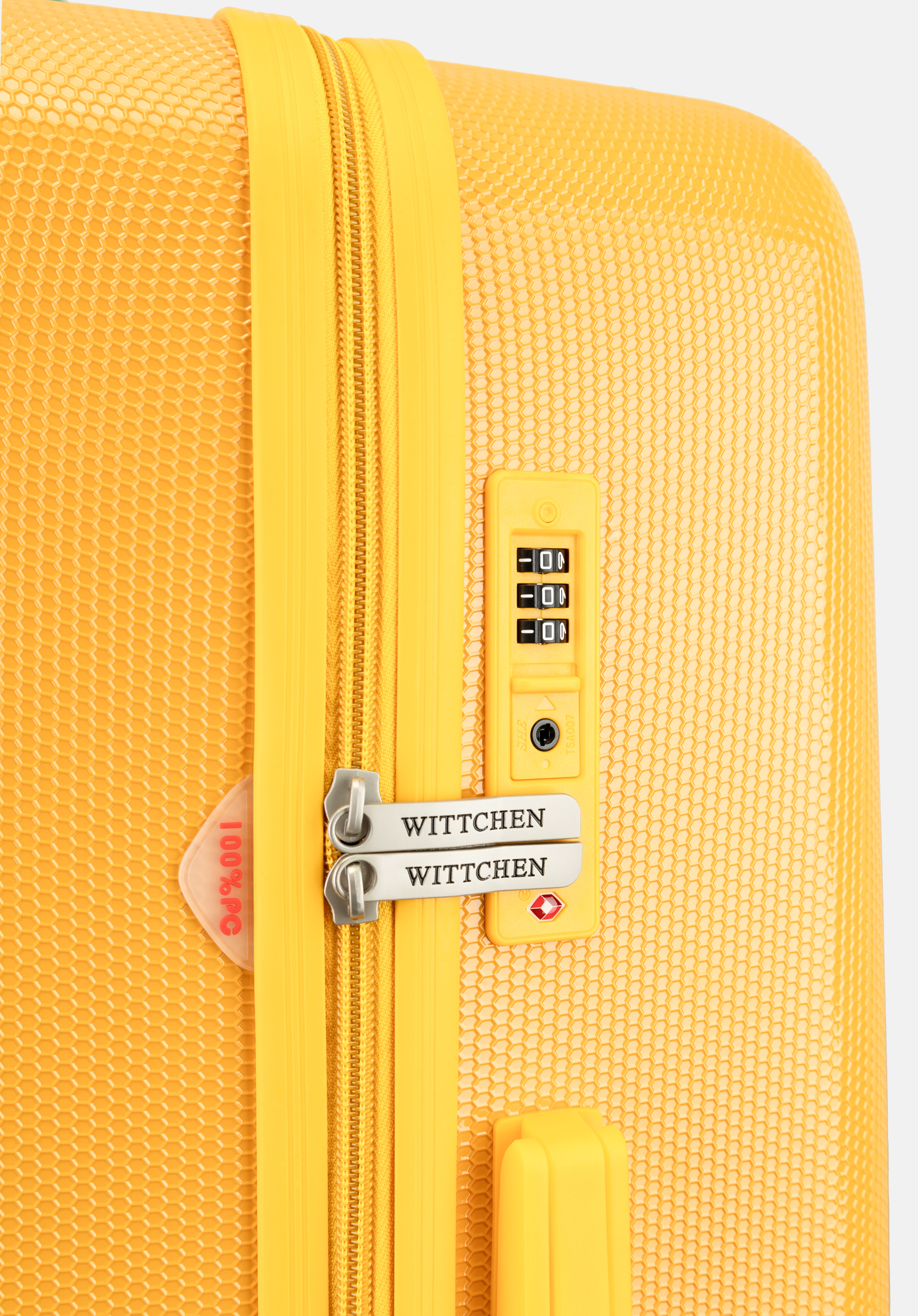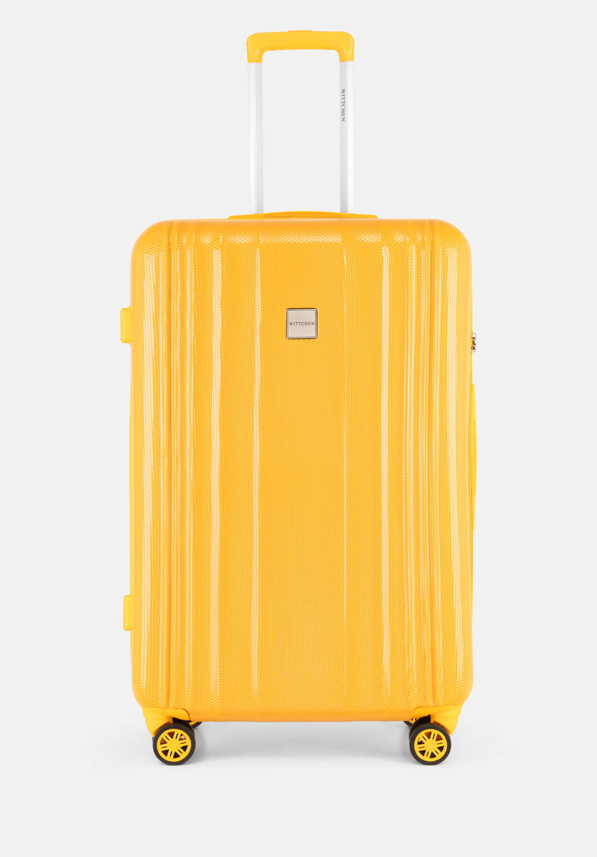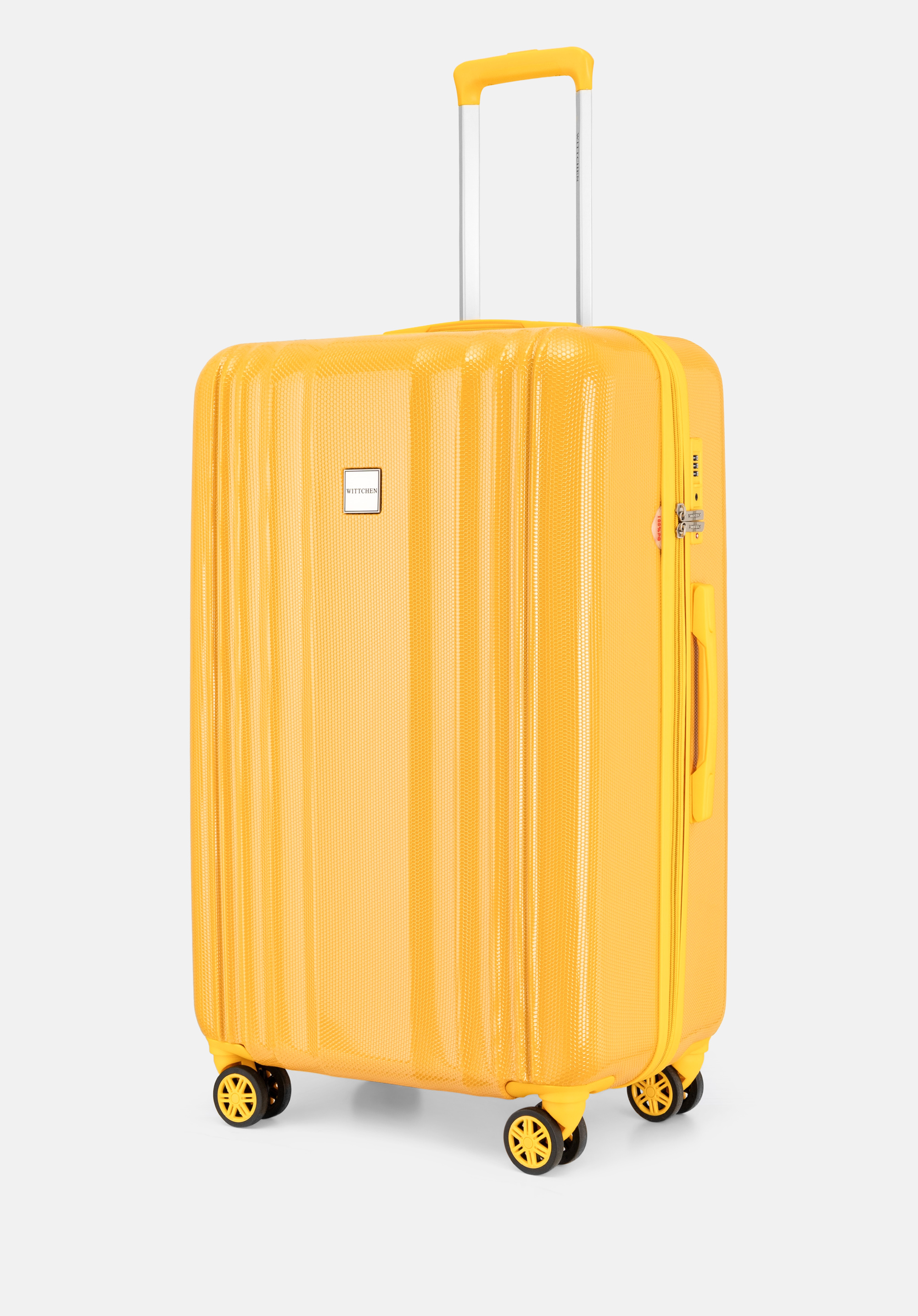 Ästhetik: Die vertikale Prägung und Textur machen den Koffer einzigartig. Der Reißverschlussriemen ist farblich auf die Kofferschale abgestimmt.