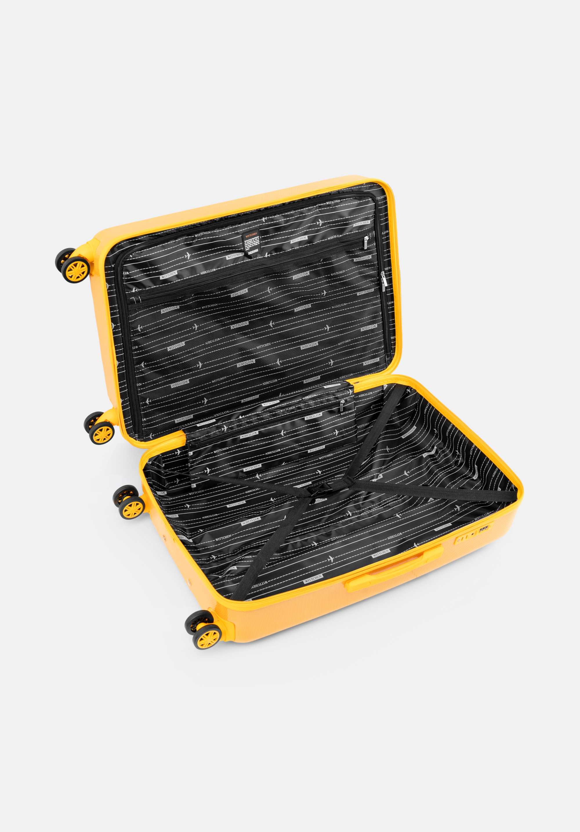 Platz und Organisation: Der Koffer bietet einen geräumigen Innenraum mit zwei Fächern, Riemen zum Sichern des Gepäcks und zusätzlichen Taschen, um den Inhalt perfekt zu organisieren.