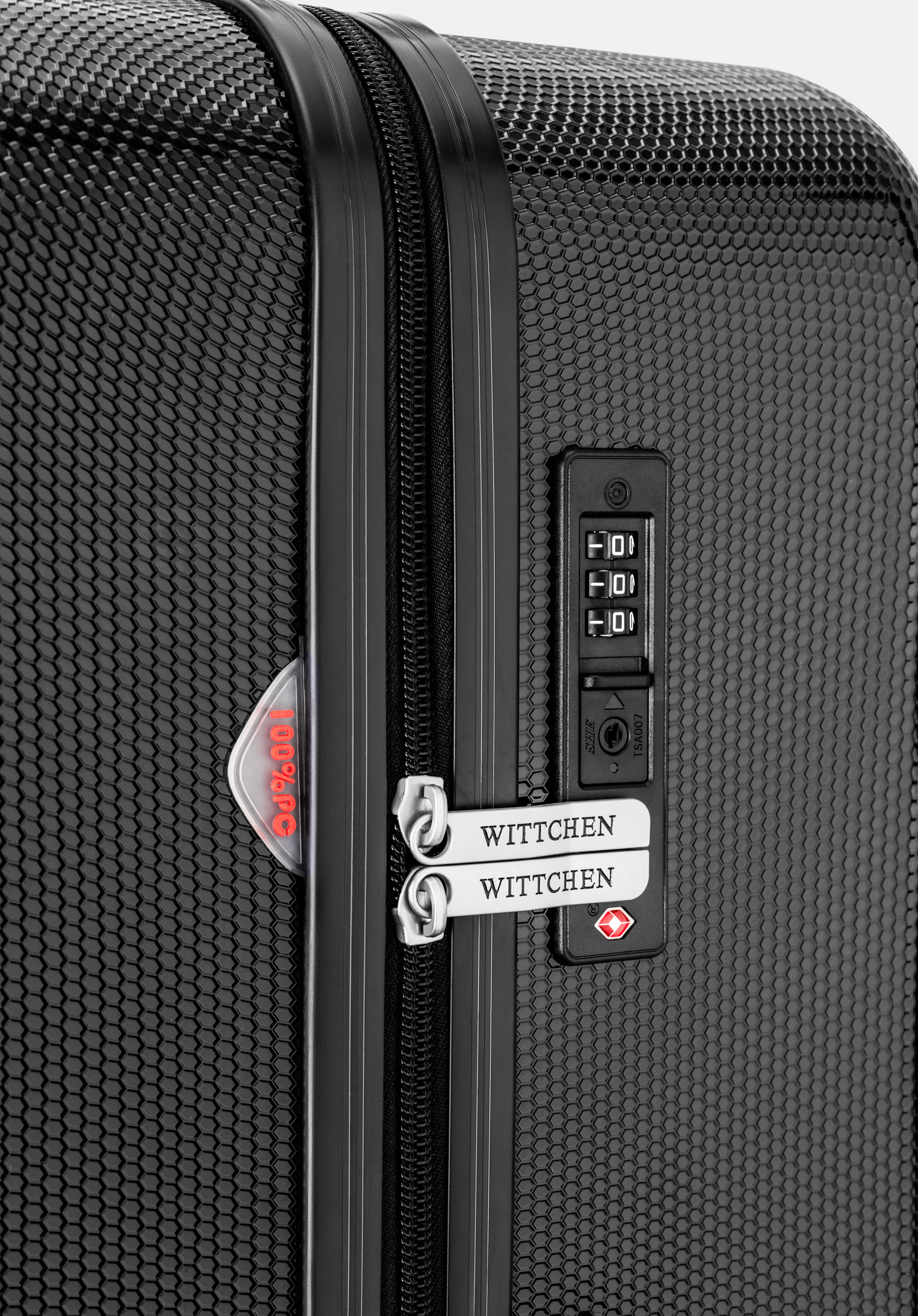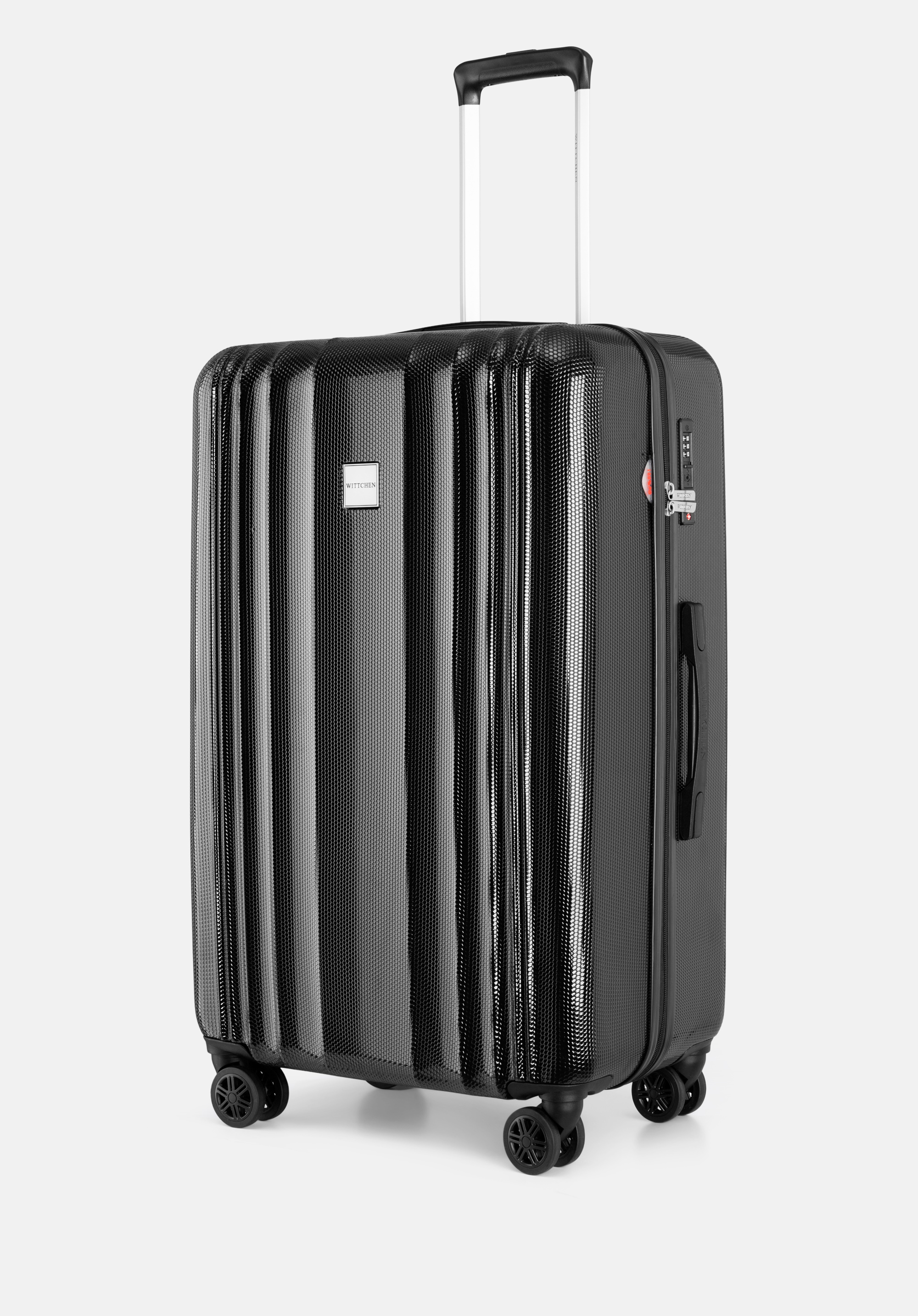 Ästhetik: Die vertikale Prägung und Textur machen den Koffer einzigartig. Der Reißverschlussriemen ist farblich auf die Kofferschale abgestimmt.