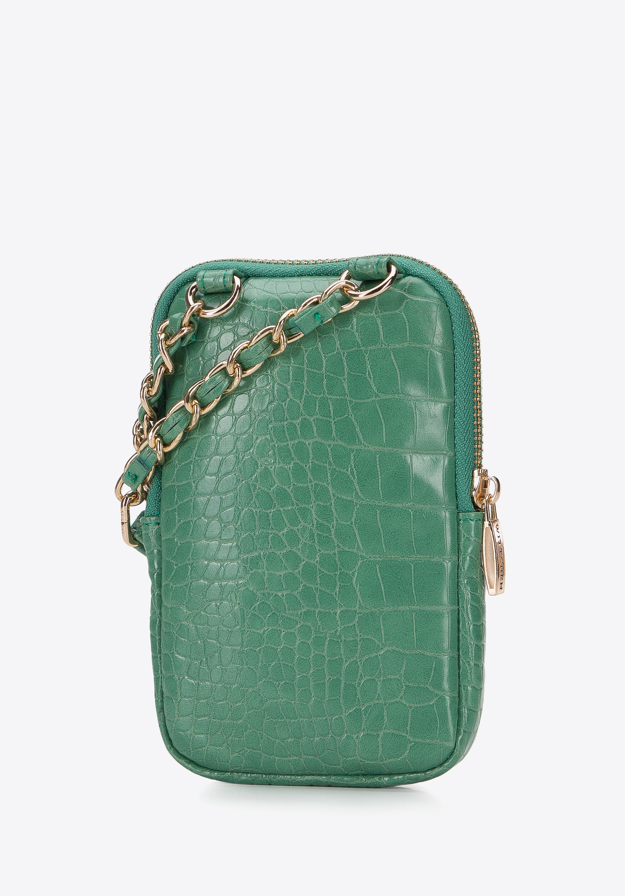 Diese kleine Damenhandtasche ist ein praktisches und stilvolles Alltagsaccessoire. Es wurde aus angenehm anzufassendem ökologischem Leder hergestellt. Darin passen ein Kartenetui, ein Telefon und Ihr Lieblingslippenstift – perfekt für einen Spaziergang, eine kurze Sightseeing-Tour und einen Kaffee mit einer Freundin. Dank der dekorativen Kette können Sie es nach Belieben wählen - auf der Schulter oder Crossbody wie eine Umhängetasche. In der mit einem Druckknopf verschlossenen Vordertasche verstecken Sie Kleinigkeiten, die Sie schnell griffbereit haben möchten. Eine Mini-Geldbörse aus Kunstleder an einer Kette ist eine gute Wahl für jede gut organisierte Frau.