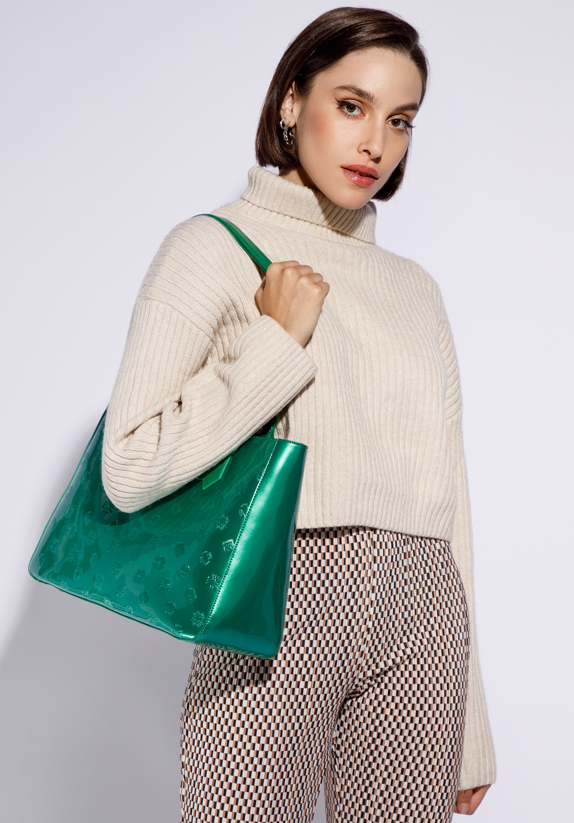 Shopper-Tasche aus Lackleder mit Monogramm