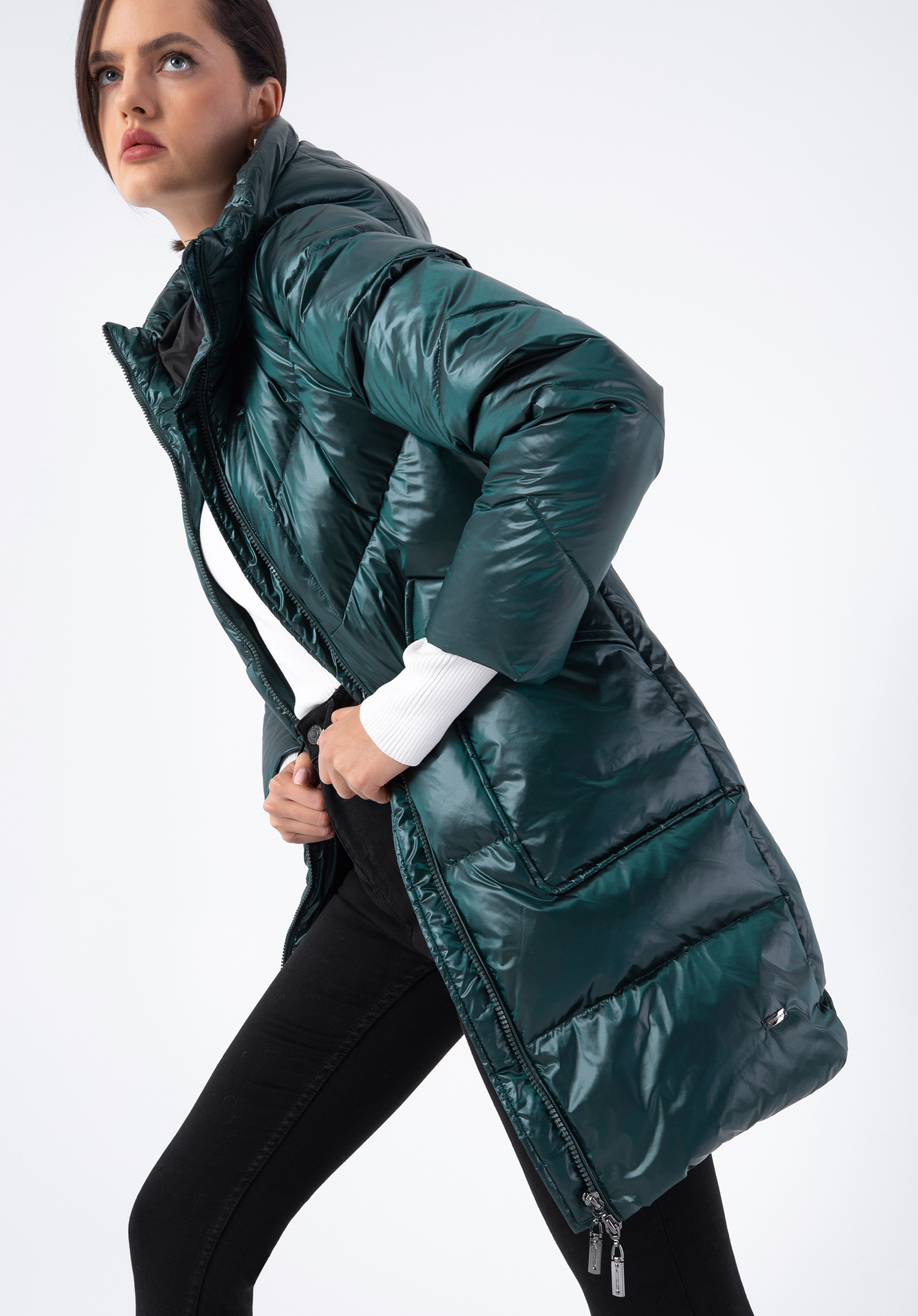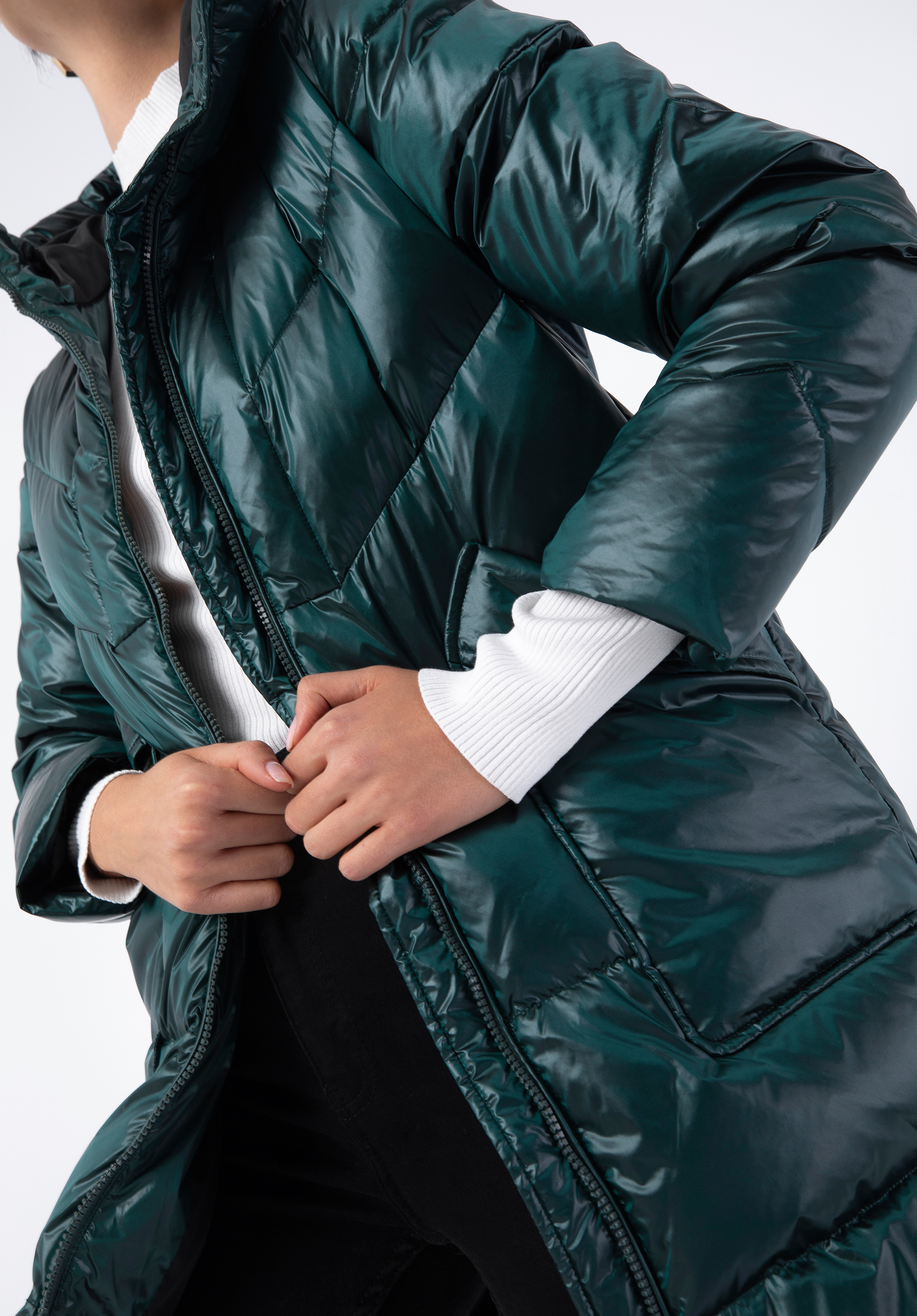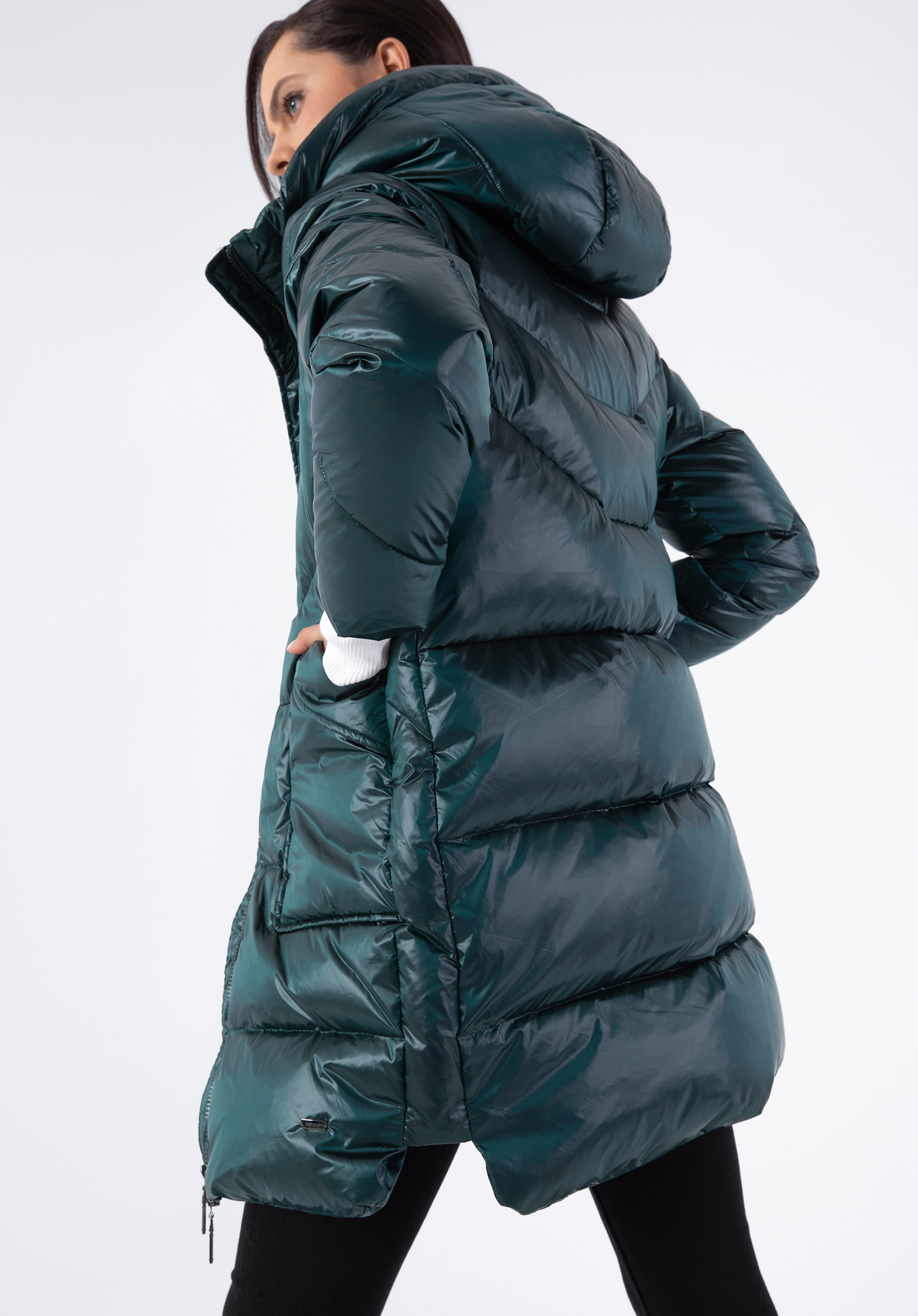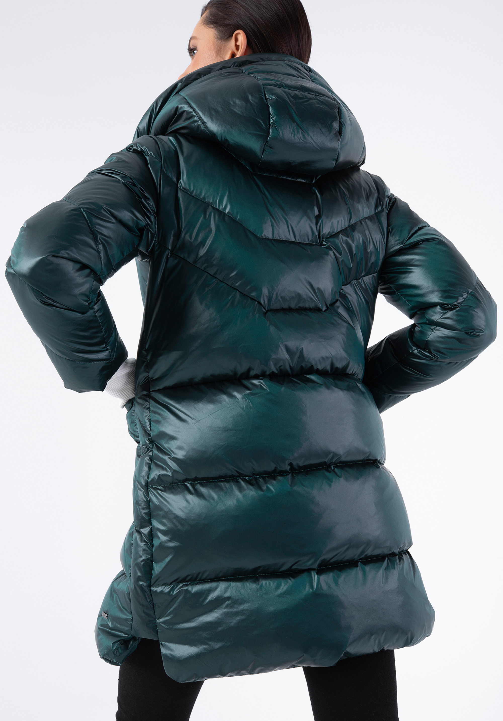 Dieser stilvolle Mantel verleiht Ihrem Winterlook einen Hauch von Glamour. Er ist aus glänzendem Nylon gefertigt, das selbst dem einfachsten Outfit Abwechslung verleiht. Er ist mit einer geometrischen Steppung und einer hübschen, nicht abnehmbaren Kapuze versehen. Die Füllung aus 70% Entendaunen und 30% Entenfedern sorgt für Wärme an richtig kalten Tagen. In den offenen, langen Vordertaschen können Sie Ihre Hände oder kleine Gegenstände verstauen. Tragen Sie ihn zu Ihrem Lieblingsminikleid und Stiefeln oder zu Jeans und Trappern - Sie werden in jeder Situation schick aussehen. Der Damen-Nylon-Daunenmantel mit Kapuze ist eine gute Wahl für jede elegante Frau.