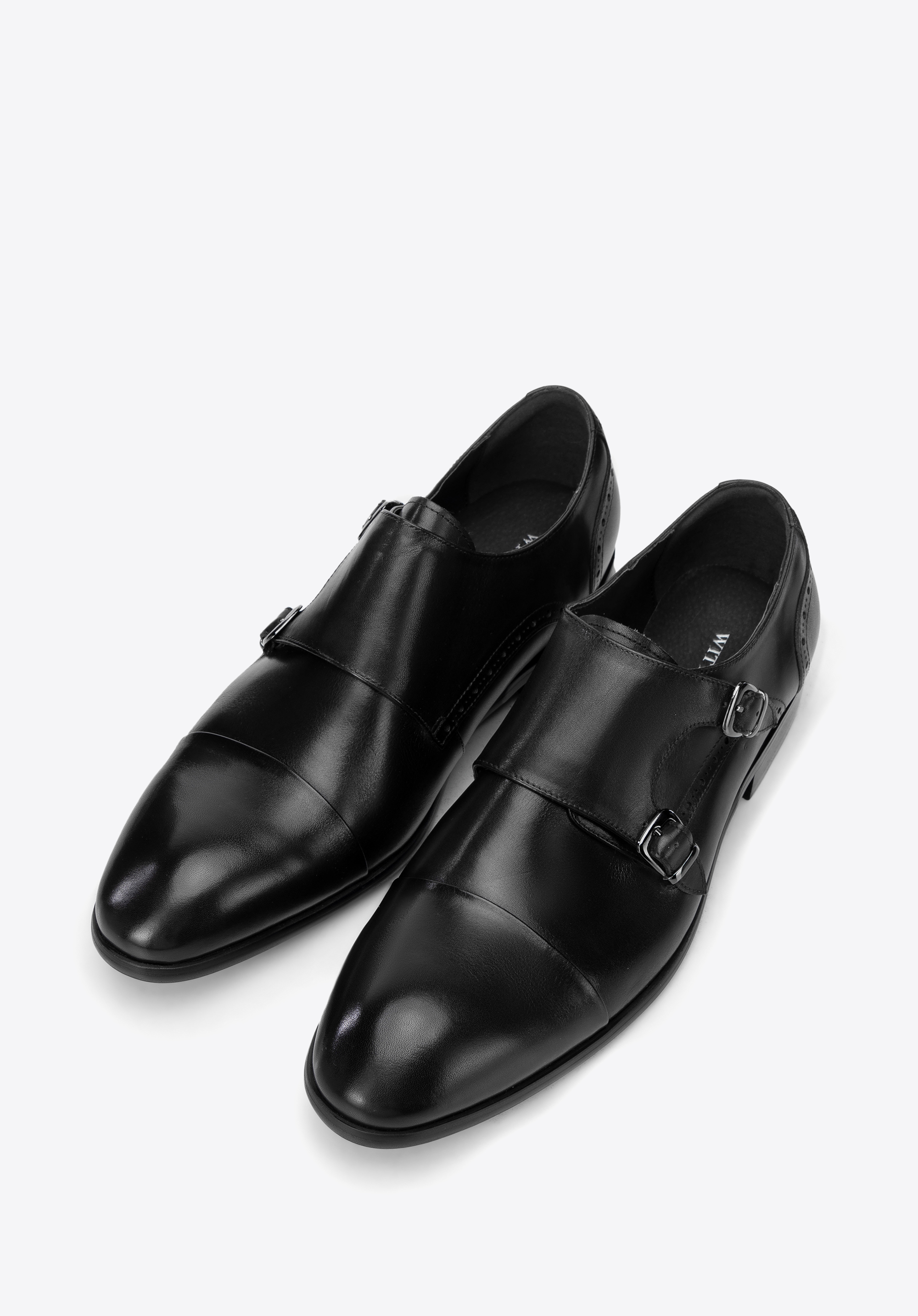 Halbschuhe für Männer - doppelte Mönche aus Leder schwarz