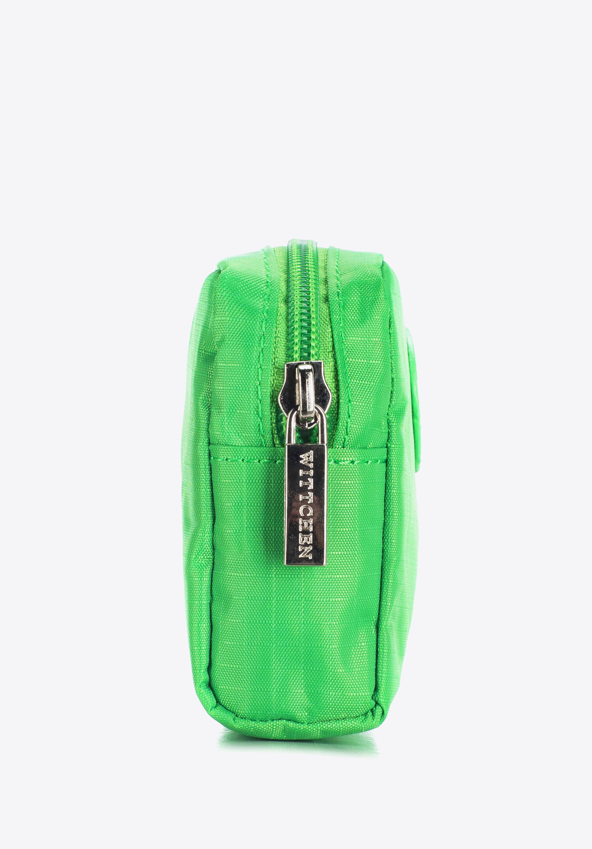 Diese kleine Kosmetiktasche ist ein praktisches Accessoire für jede Frau. Sie ist sorgfältig aus hochwertigem Polyester gefertigt und mit dem WITTCHEN-Logo auf dem Einsatz aus Öko-Leder verziert. Die Kosmetiktasche hat die kastenförmige Form und lässt sich mit einem praktischen Reißverschluss schließen. Im Inneren können Sie einige Ihrer Lieblingskosmetika unterbringen. Die kleine Kosmetiktasche für Damen ist ein großartiges Accessoire, das Sie in Ihrer Handtasche tragen können.