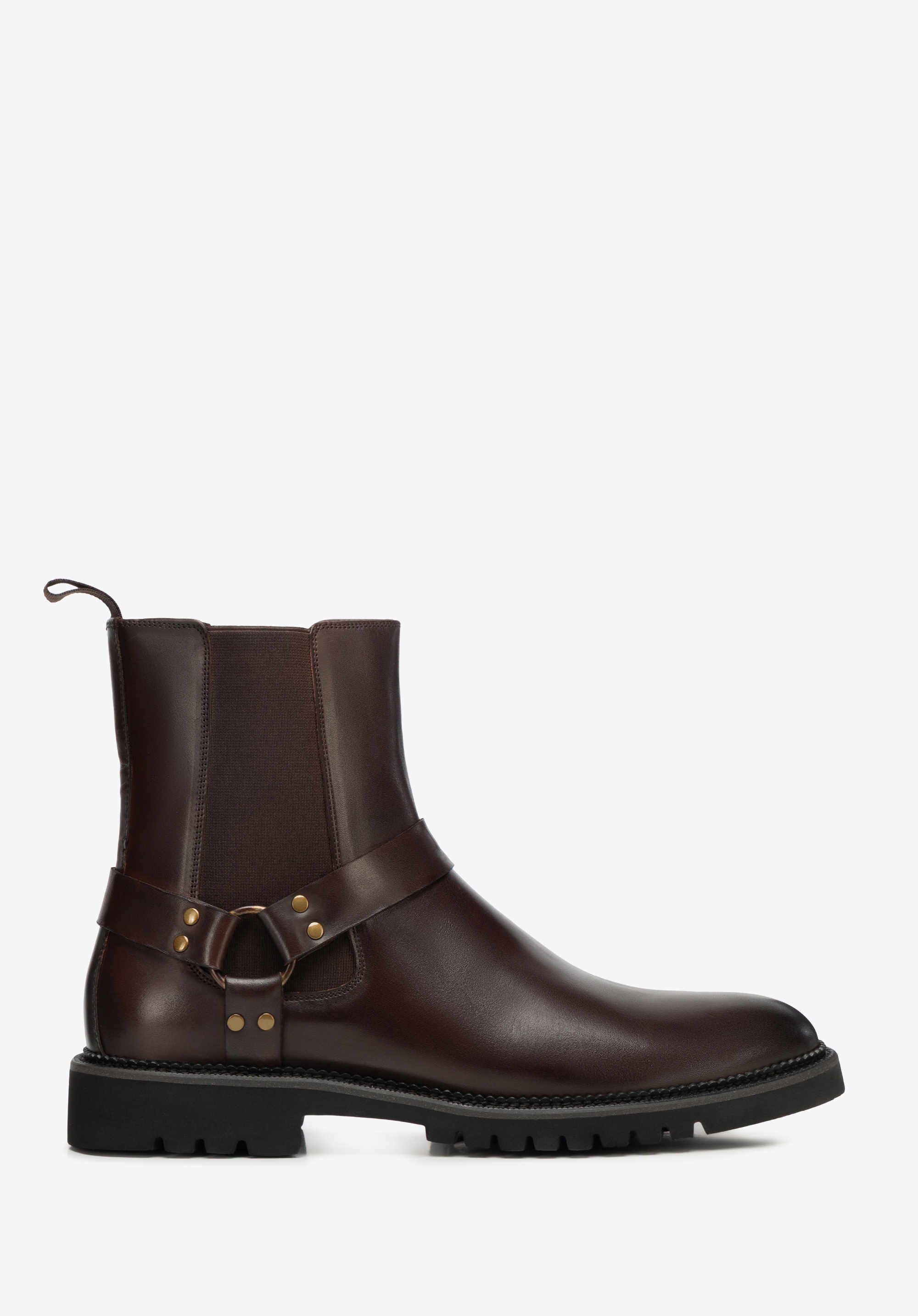 - Design: Die elegante Chelsea-Boot-Form wird durch einen dekorativen Seitenriemen aufgewertet, der einen subtilen und dennoch modernen Akzent setzt.