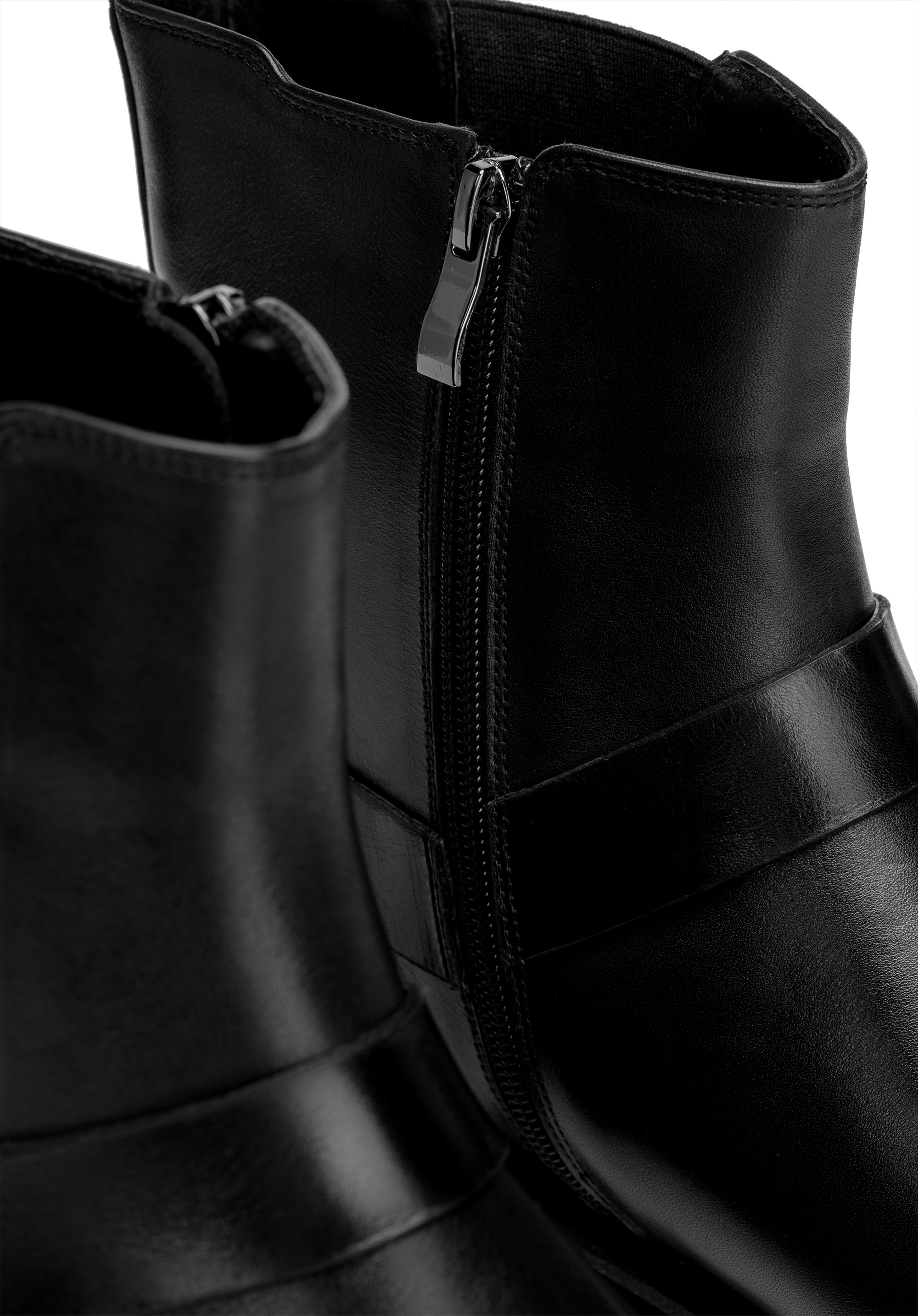 - Mandelförmige Spitze: Eine raffinierte Linie, die den Fuß optisch verlängert und den klassischen Charakter der Stiefel betont.