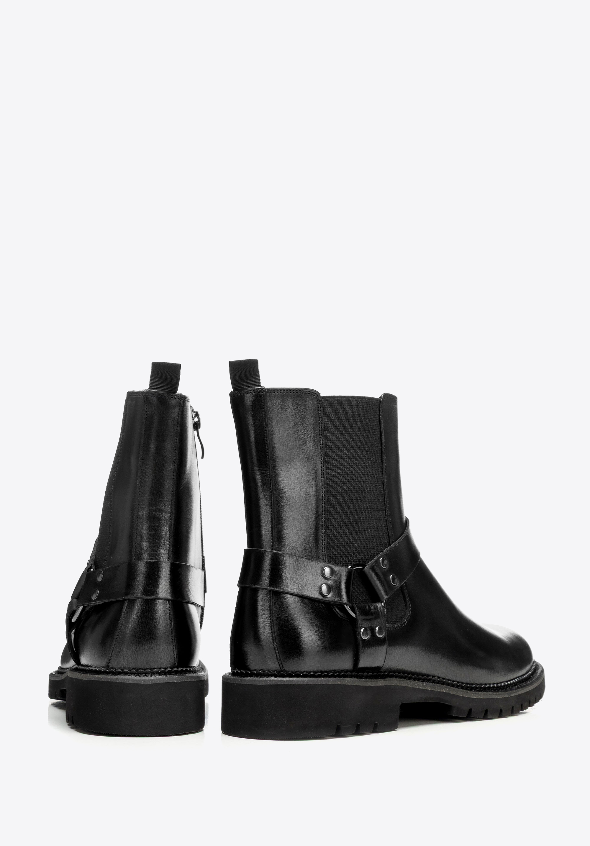 - Design: Die elegante Chelsea-Boot-Form wird durch einen dekorativen Seitenriemen aufgewertet, der einen subtilen und dennoch modernen Akzent setzt.