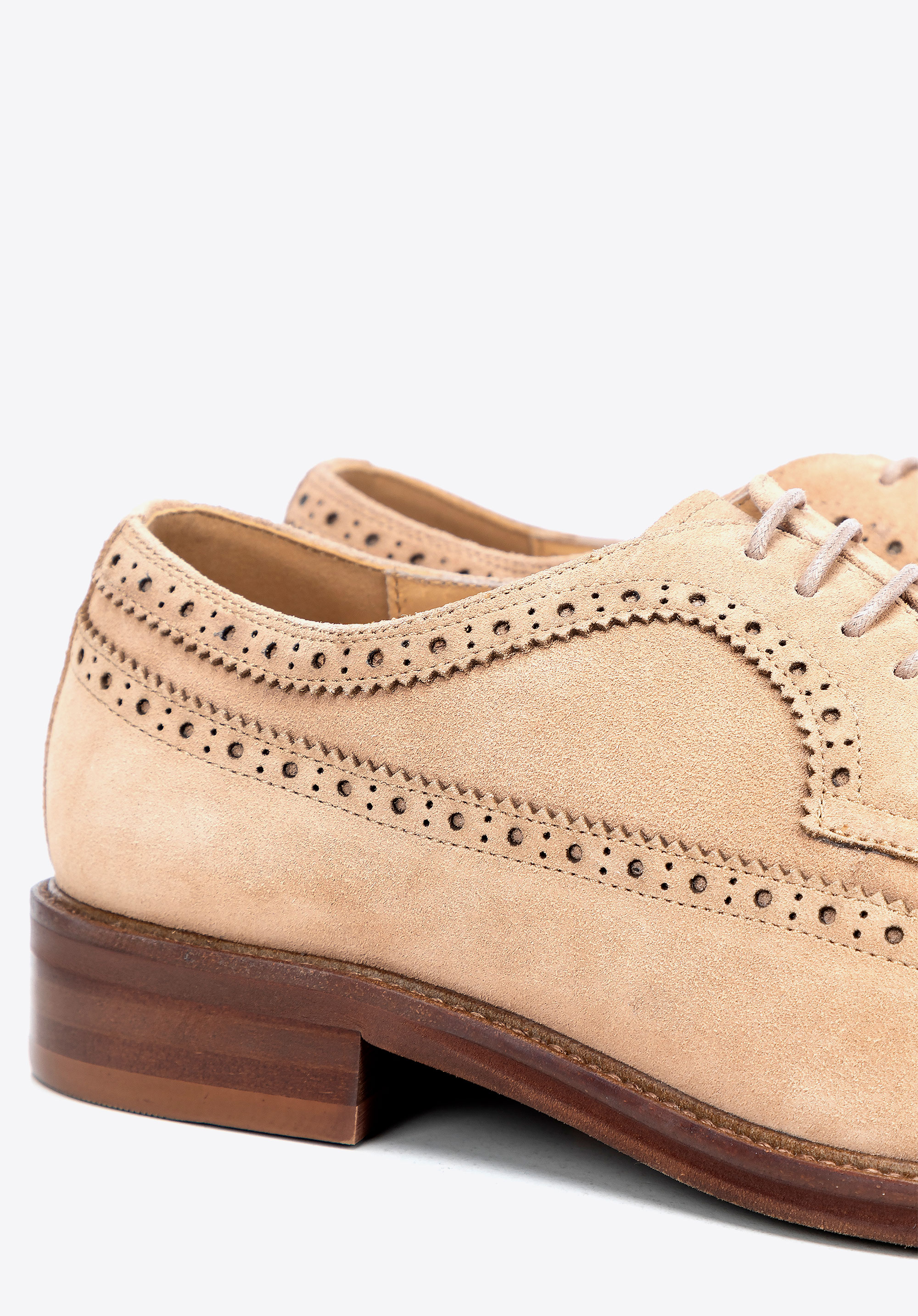 Diese stilvollen Derby-Schuhe sind der Inbegriff von Eleganz und Komfort. Sie sind aus hochwertigem Veloursleder gefertigt und bestechen durch ihre Weichheit, Strapazierfähigkeit und Perforierungen, die ihnen einen einzigartigen Charakter verleihen. Die klassische mandelförmige Spitze und die raffinierten Details machen diese Schuhe zu einem Must-Have in der Garderobe eines Mannes, der zeitlosen Stil schätzt.
