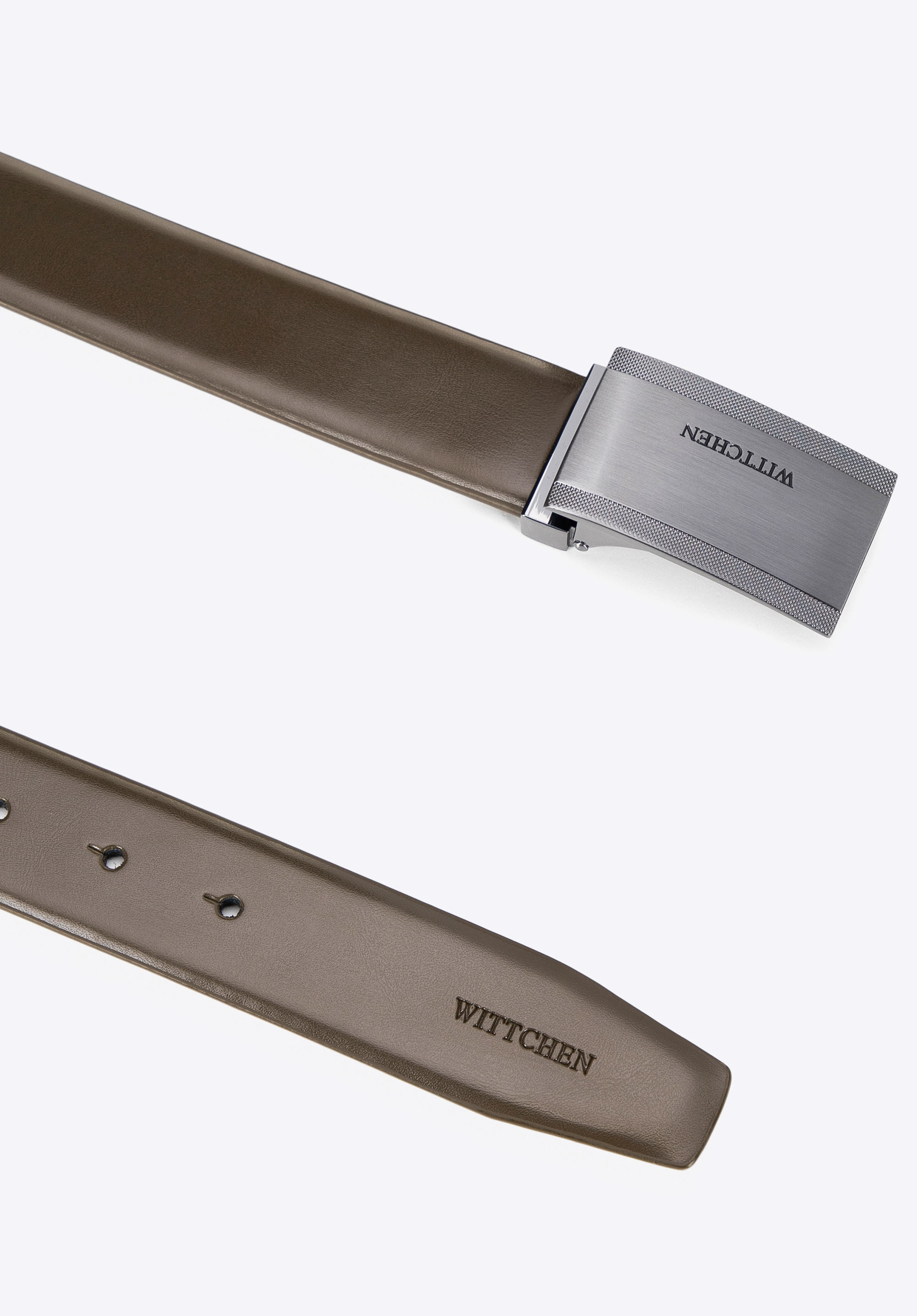 Moderne Eleganz – Herren-Ledergürtel mit Plattenschnalle und Markenlogo
