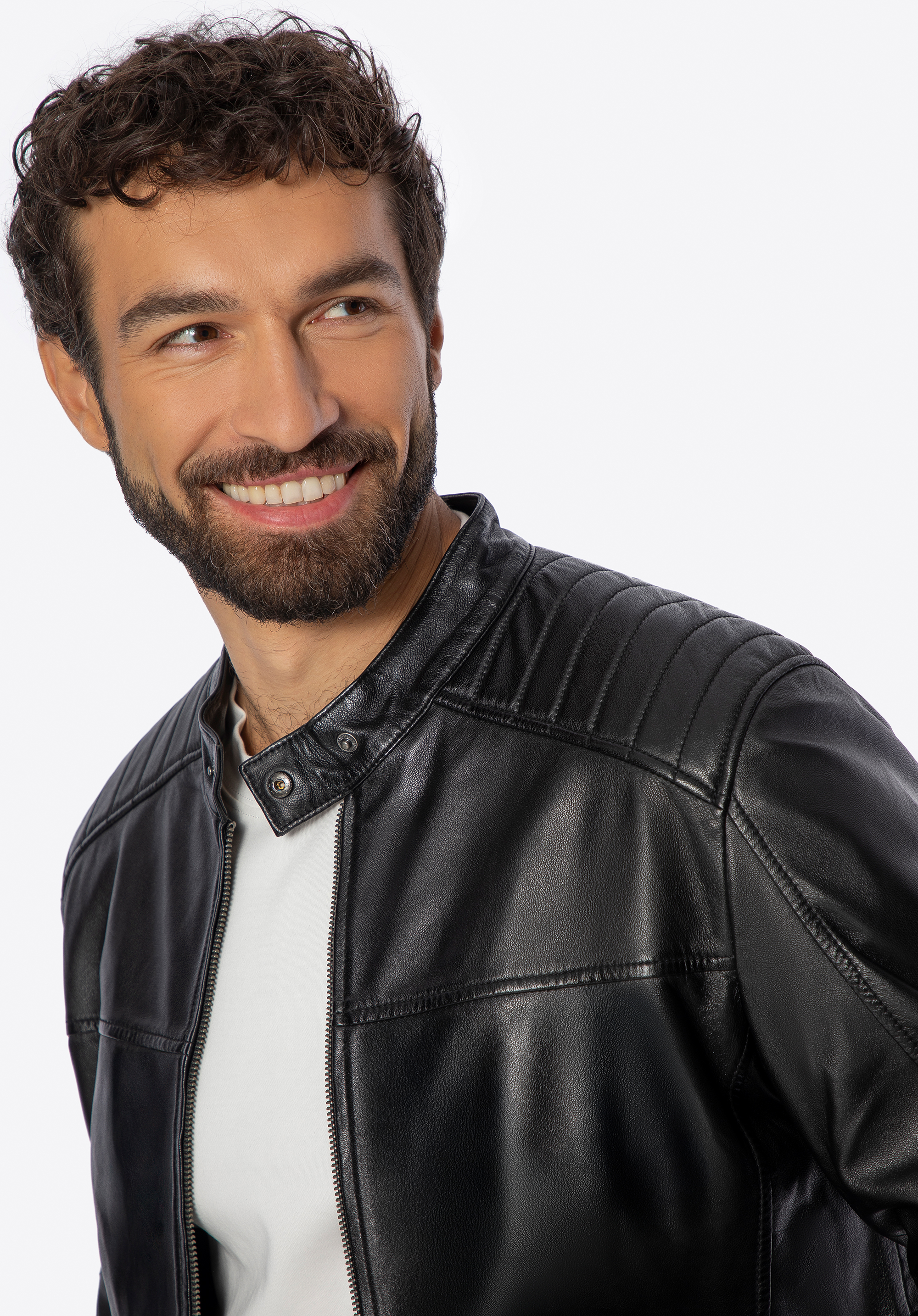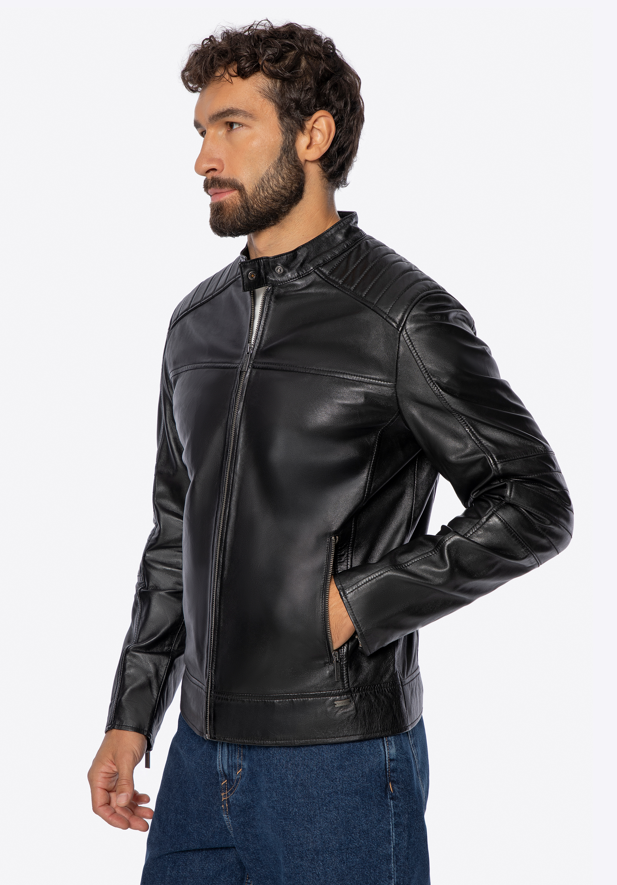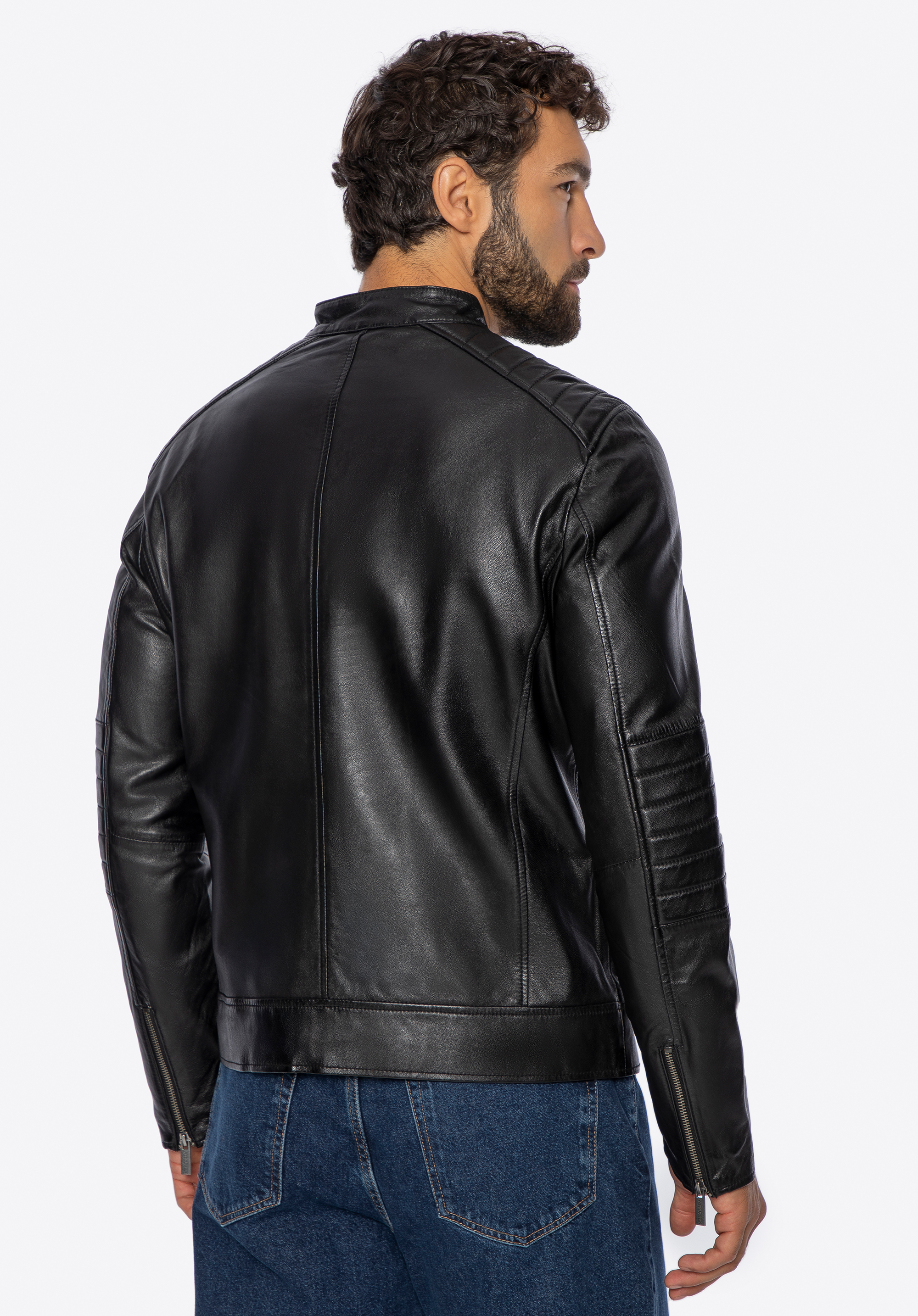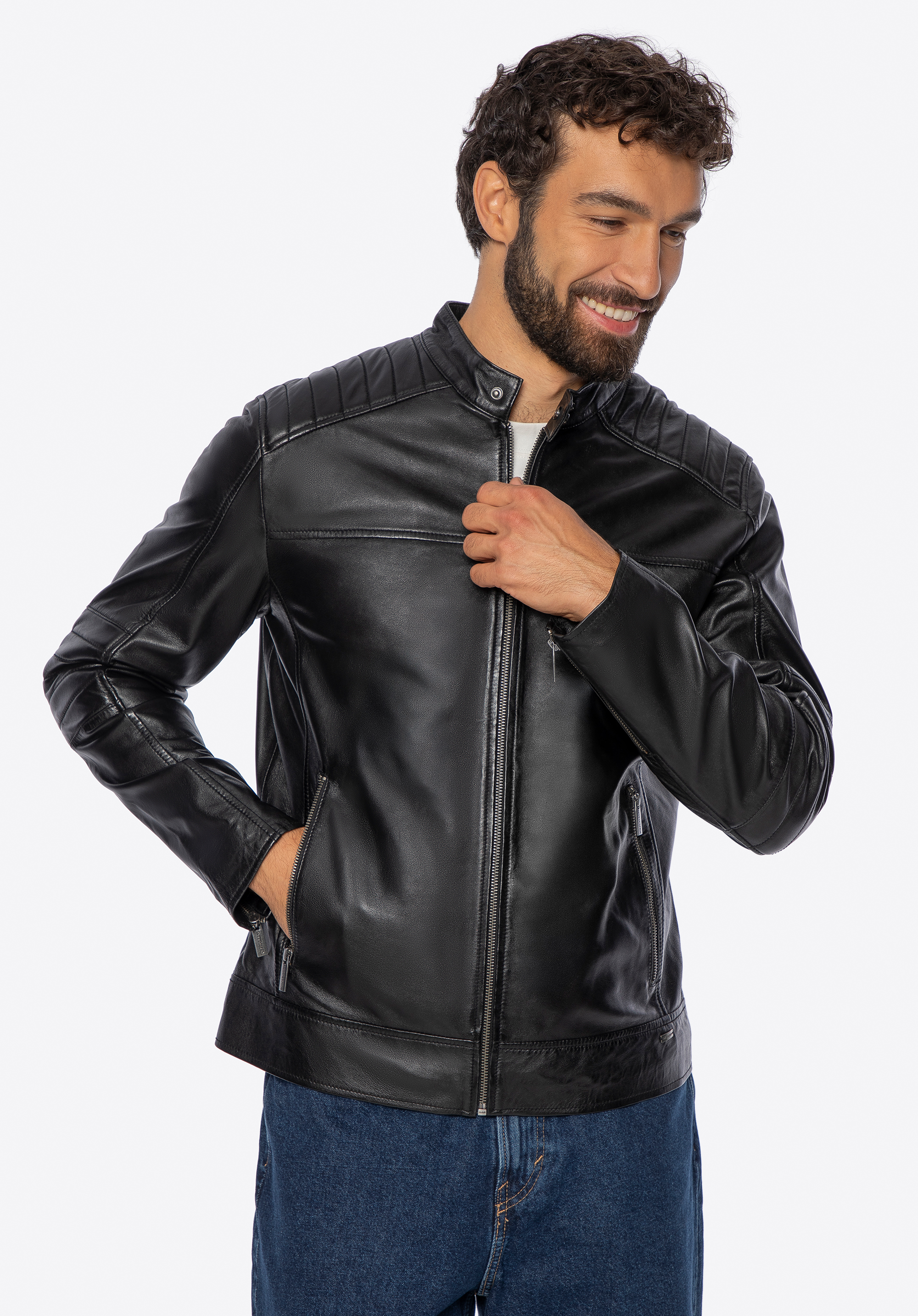 Herren Lederjacke mit Stehkragen Farbe: schwarz