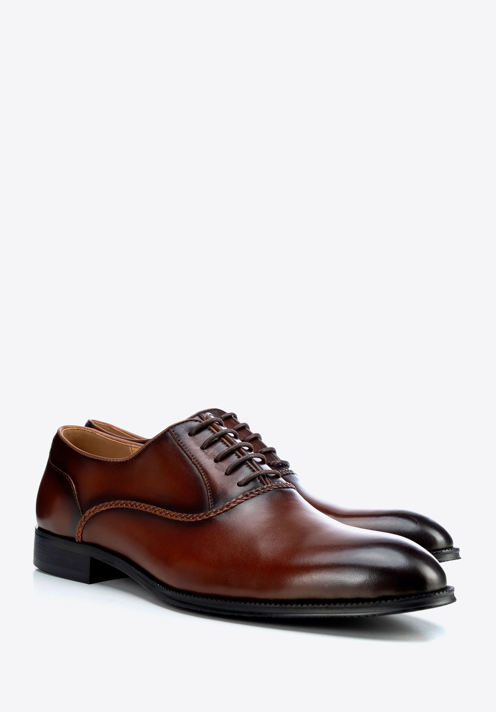 Eine stilvolle und zeitlose Option für Männer, die klassische Designs mit subtilen Details schätzen. Herren-Derby-Schuhe aus Vollnarbenleder mit mandelförmiger Spitze , geschlossener Schnürung und Ziernähten verbinden Komfort mit Eleganz. Sie sind aus hochwertigem Leder gefertigt und sorgen für ganztägigen Komfort, während die synthetische Sohle und das weiche Futter das Design abrunden.