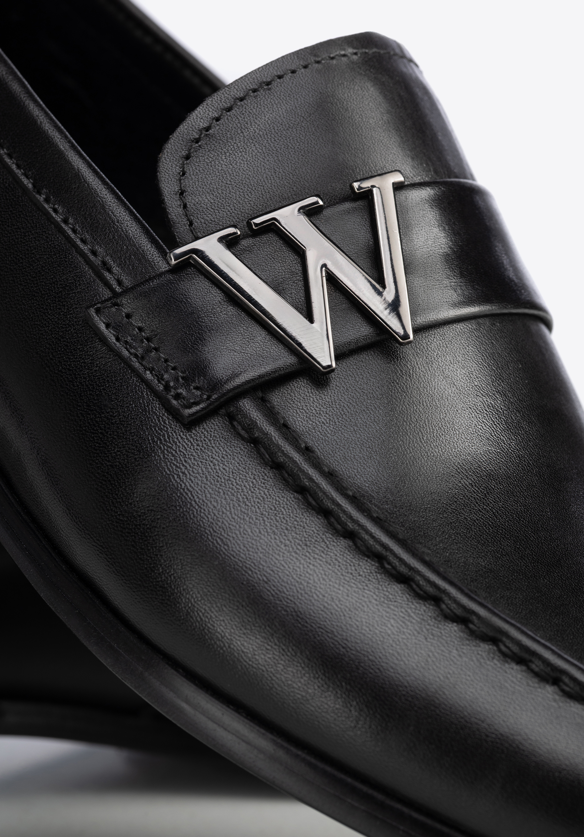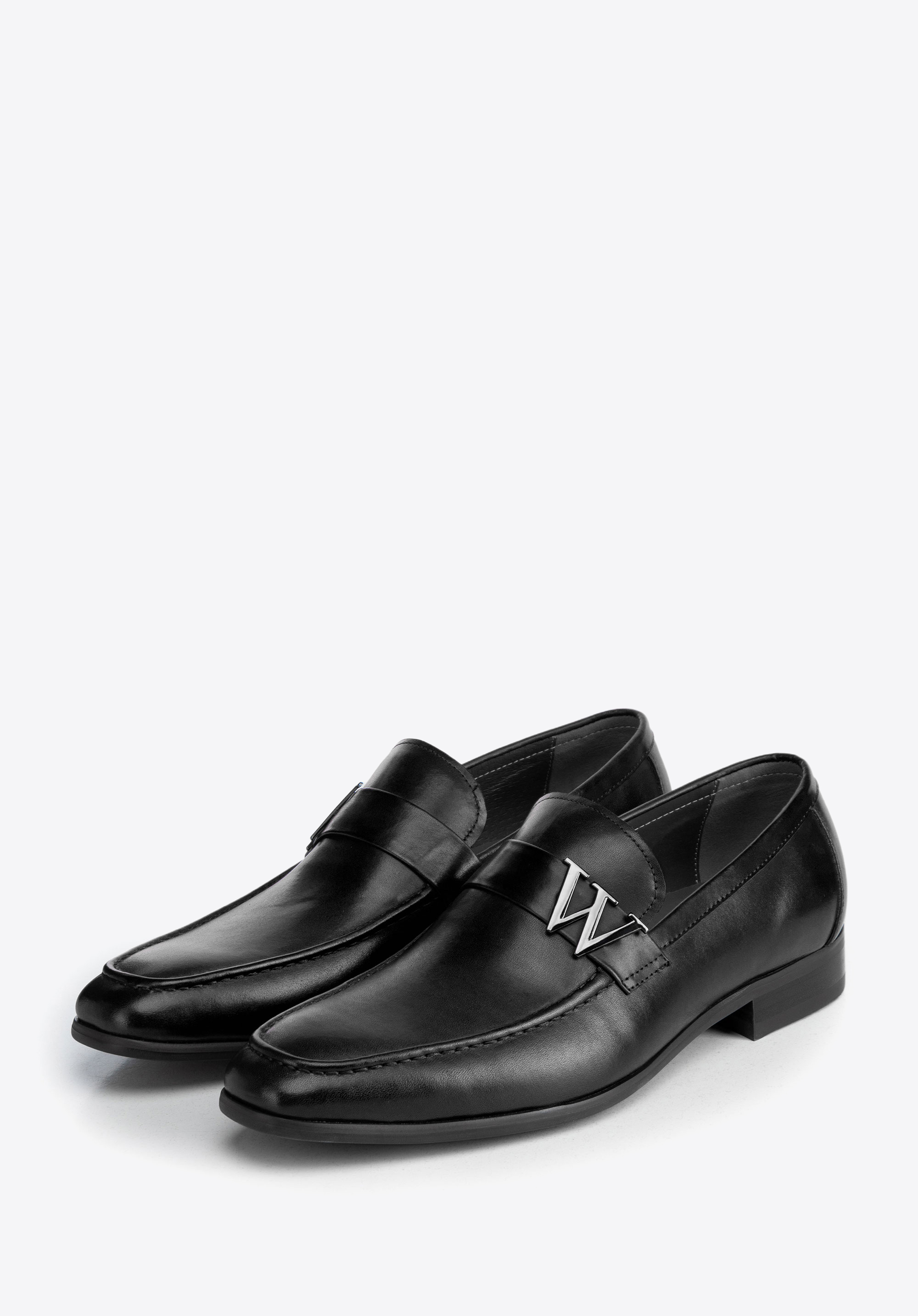 Herren-Mokassins aus Naturleder mit Metall-Logo schwarz