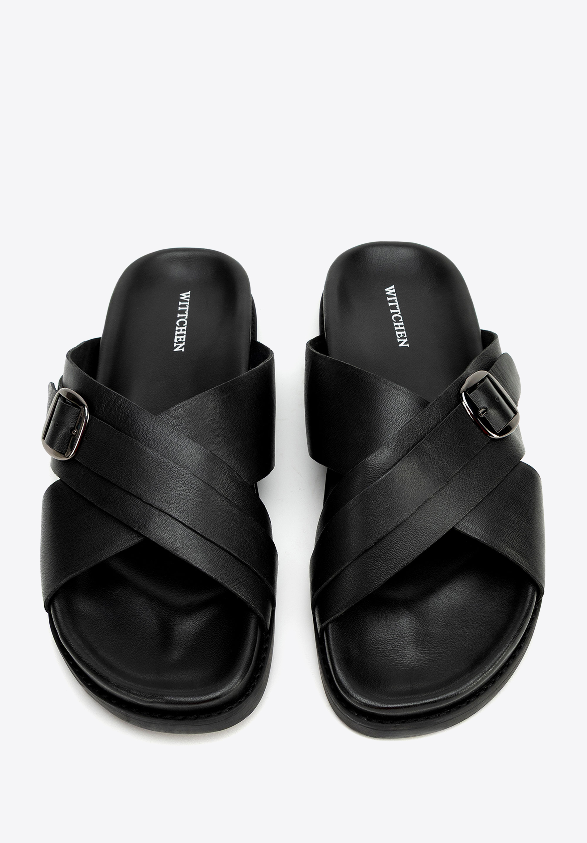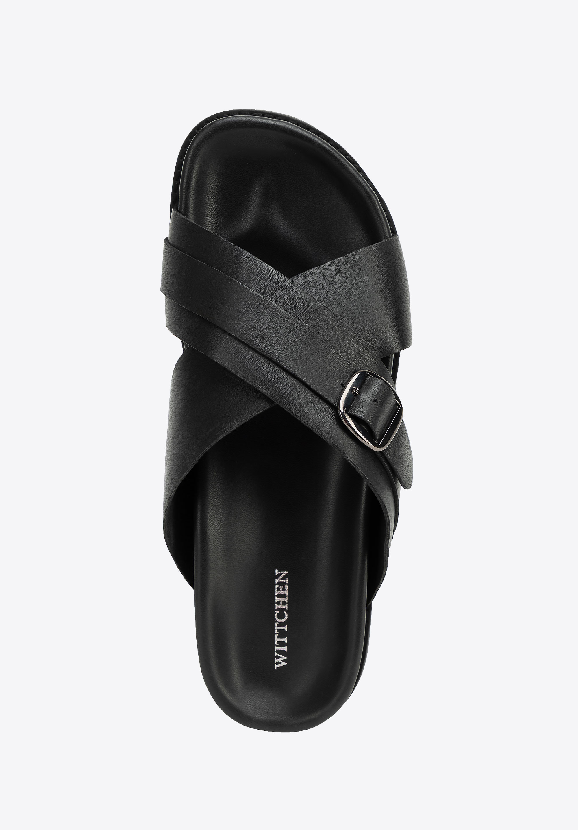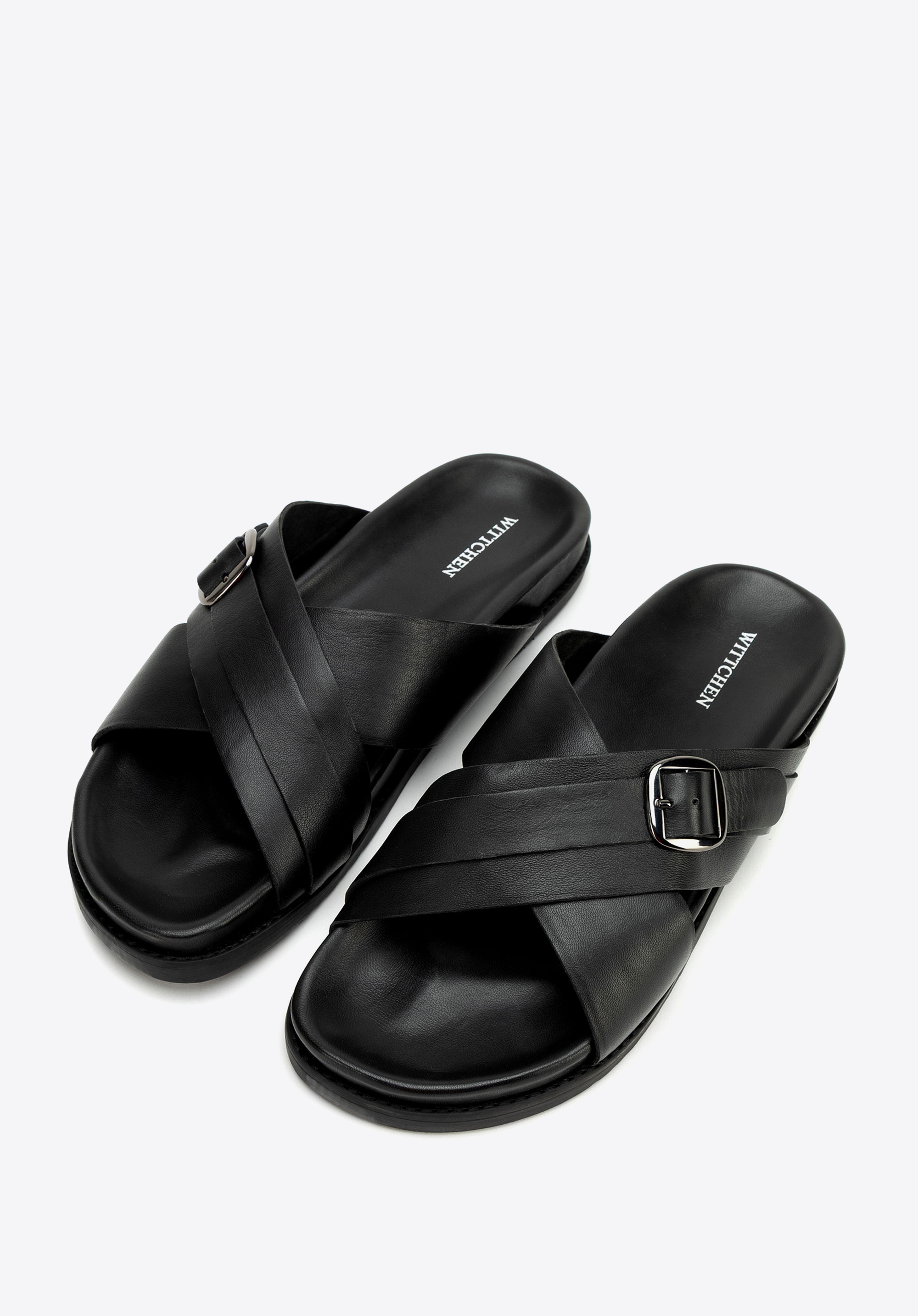 Herren-Sandalen aus Leder mit überkreuzten Riemen und Schnalle
