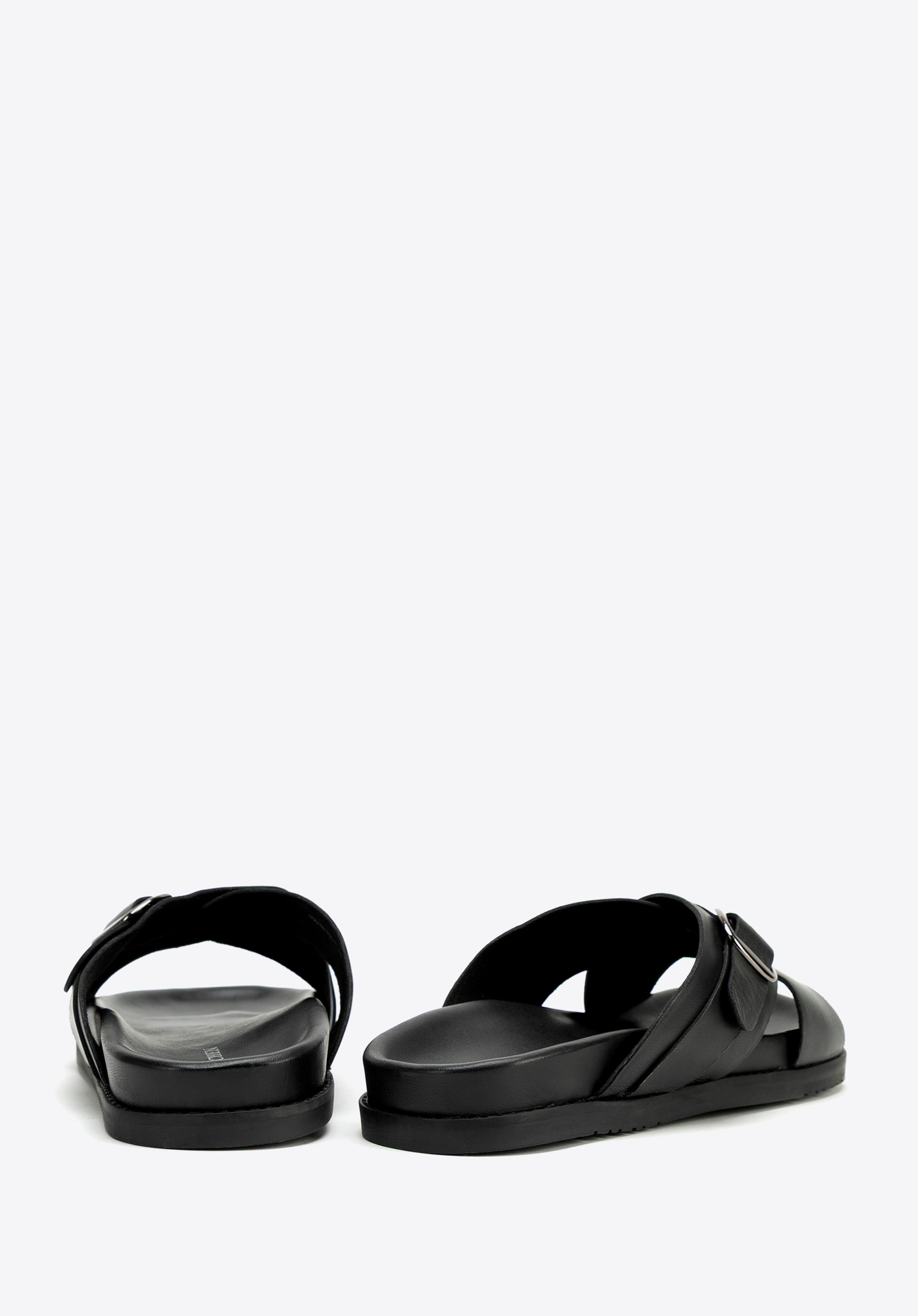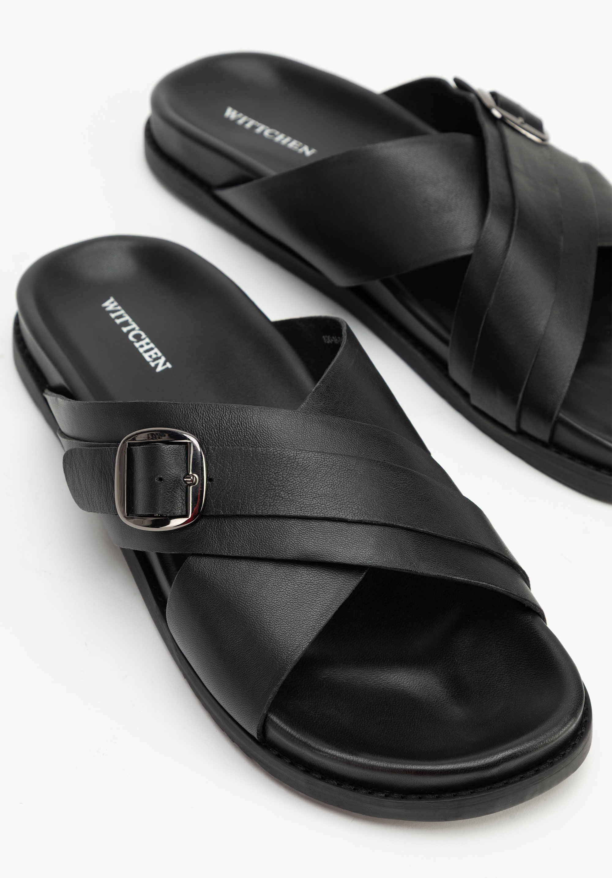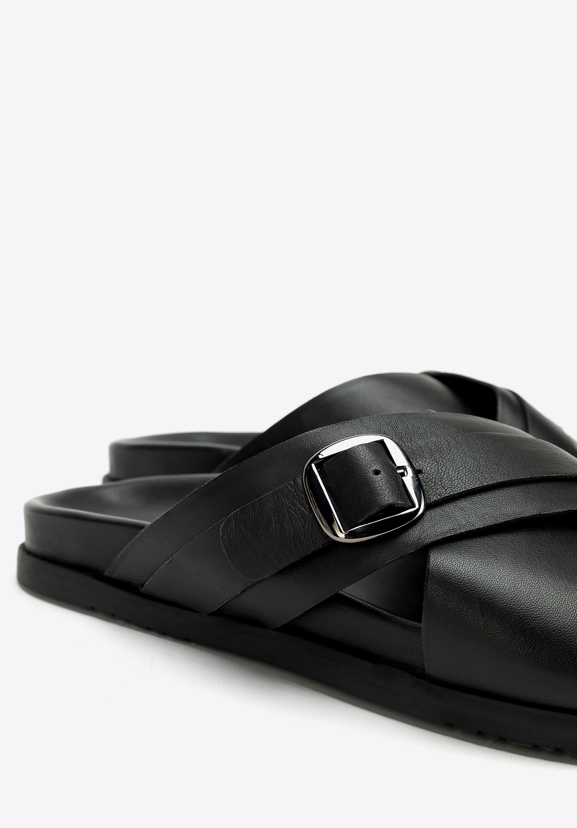 Herren-Sandalen aus Leder mit überkreuzten Riemen und Schnalle