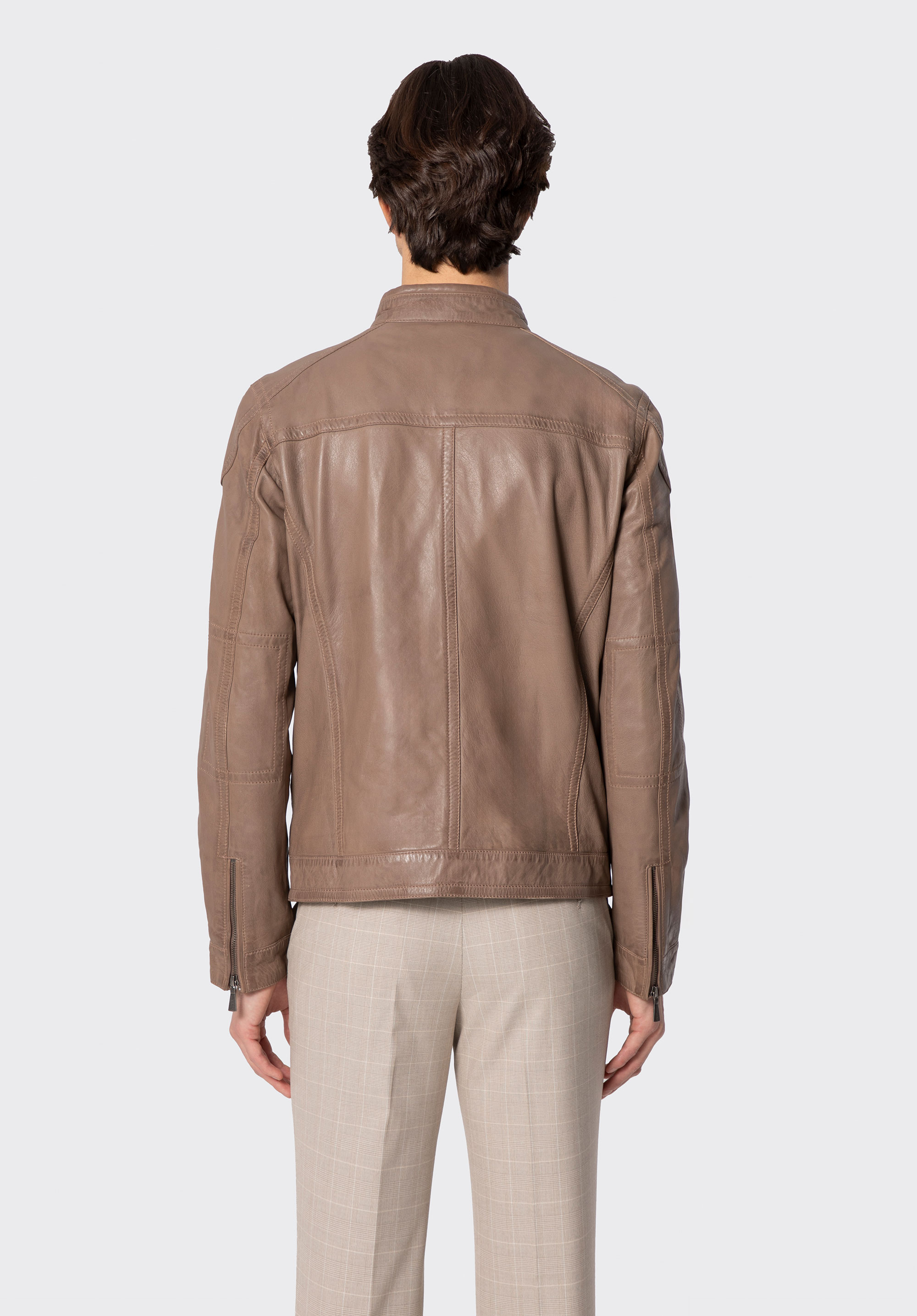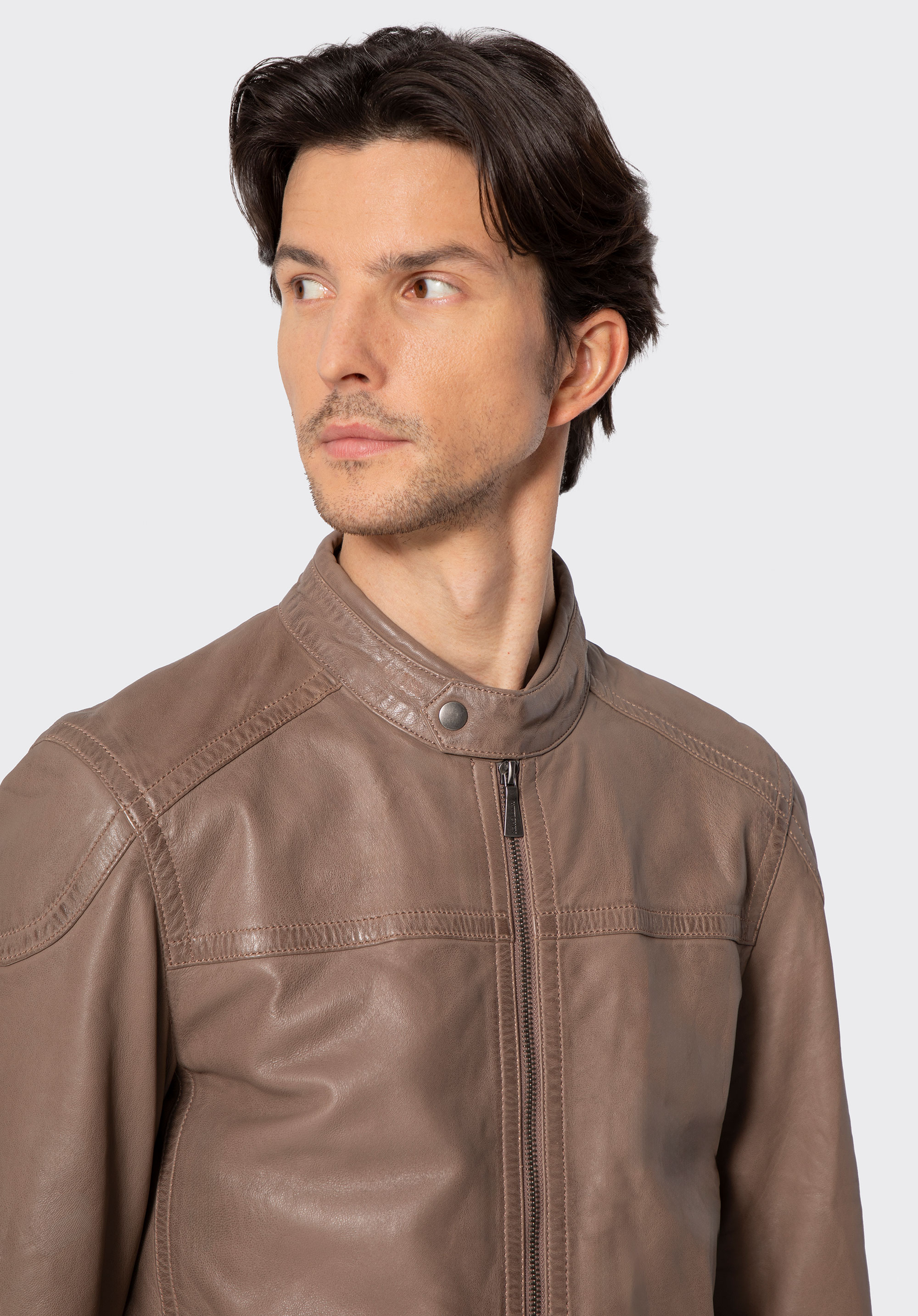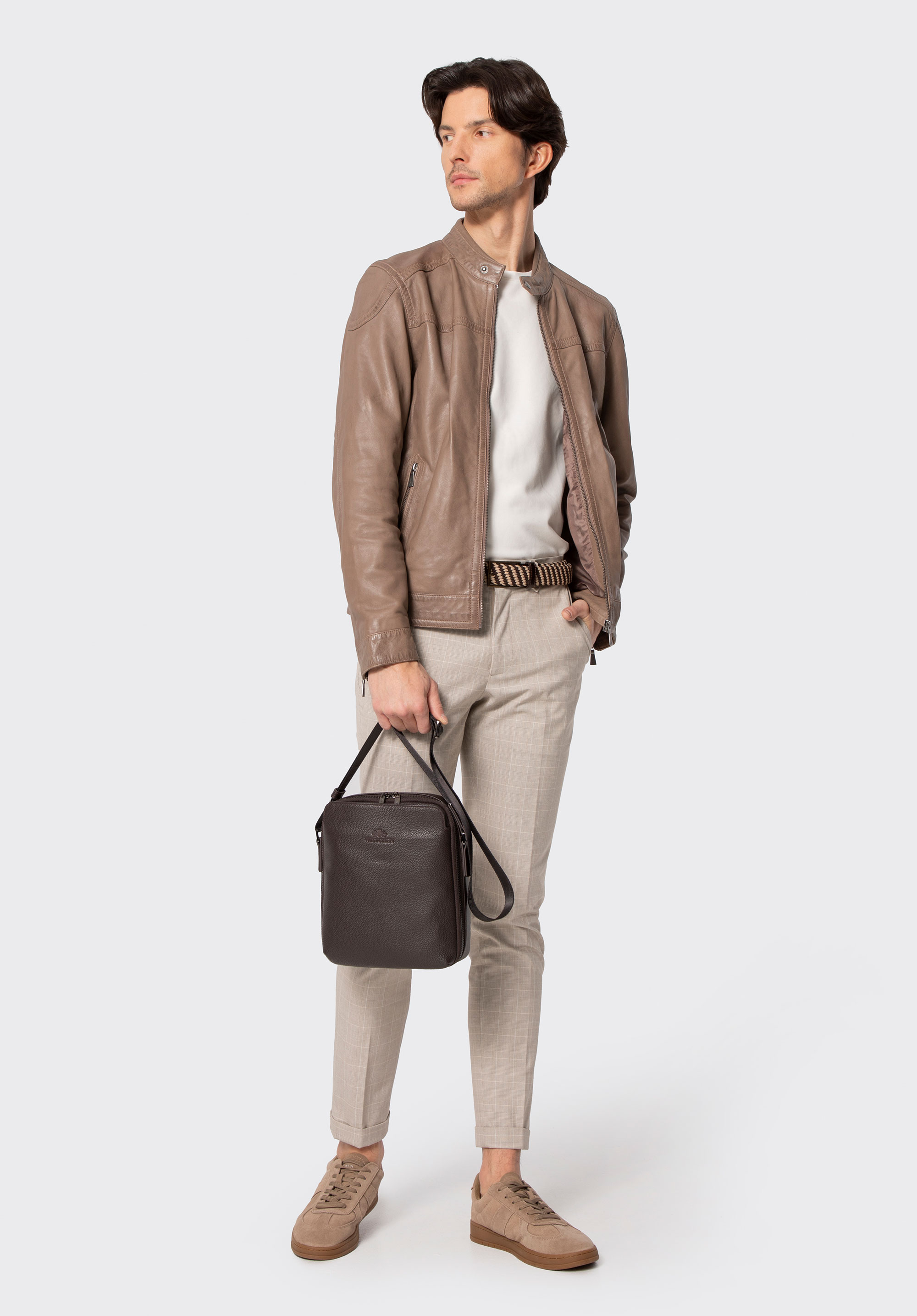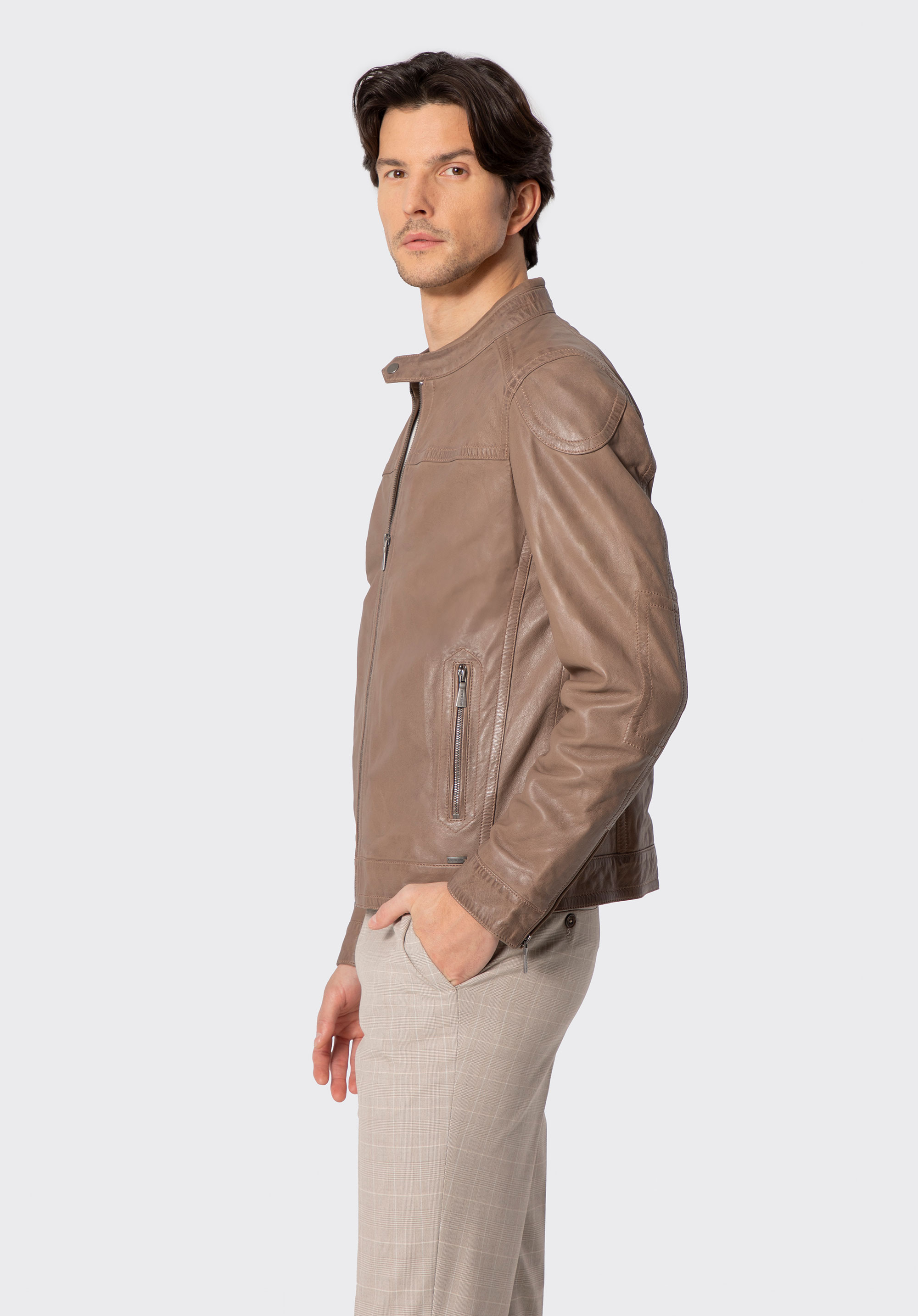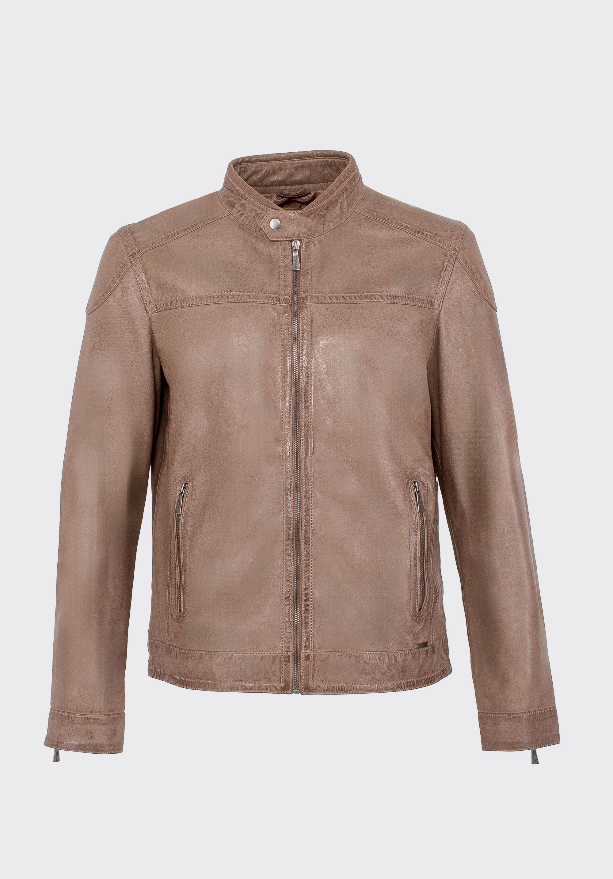 Entdecken Sie die Herrenjacke , die Aufmerksamkeit auf sich zieht und Ihren Stil unterstreicht. Sie ist aus natürlichem Schafsleder gefertigt und zeichnet sich durch ihre Weichheit und Haltbarkeit aus. Metalldetails – das Markenlogo an der Seite und Markenreißverschlüsse – verleihen eine unverwechselbare Note. Dieses Kleidungsstück wird mit einem robusten Reißverschluss geschlossen, verfügt über einen hohen Kragen mit Druckknopfverschluss und Reißverschlüsse an den Manschetten und verbindet Eleganz mit einem urbanen Touch. Praktische Taschen – zwei vertikale Reißverschlusstaschen und zwei Innentaschen (eine mit Reißverschluss, die andere offen) – sorgen für Funktionalität und Komfort.