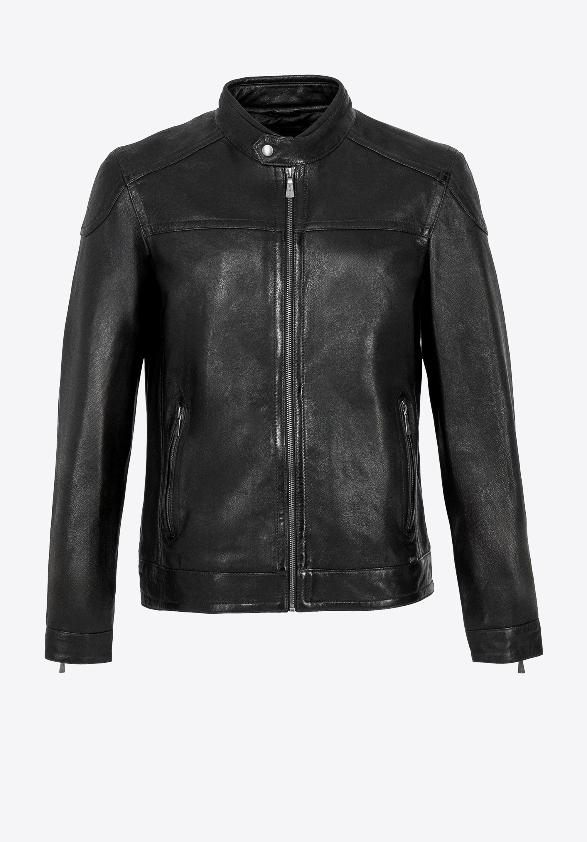 Entdecken Sie die Herrenjacke , die Aufmerksamkeit auf sich zieht und Ihren Stil unterstreicht. Sie ist aus natürlichem Schafsleder gefertigt und zeichnet sich durch ihre Weichheit und Haltbarkeit aus. Metalldetails – das Markenlogo an der Seite und Markenreißverschlüsse – verleihen eine unverwechselbare Note. Dieses Kleidungsstück wird mit einem robusten Reißverschluss geschlossen, verfügt über einen hohen Kragen mit Druckknopfverschluss und Reißverschlüsse an den Manschetten und verbindet Eleganz mit einem urbanen Touch. Praktische Taschen – zwei vertikale Reißverschlusstaschen und zwei Innentaschen (eine mit Reißverschluss, die andere offen) – sorgen für Funktionalität und Komfort.