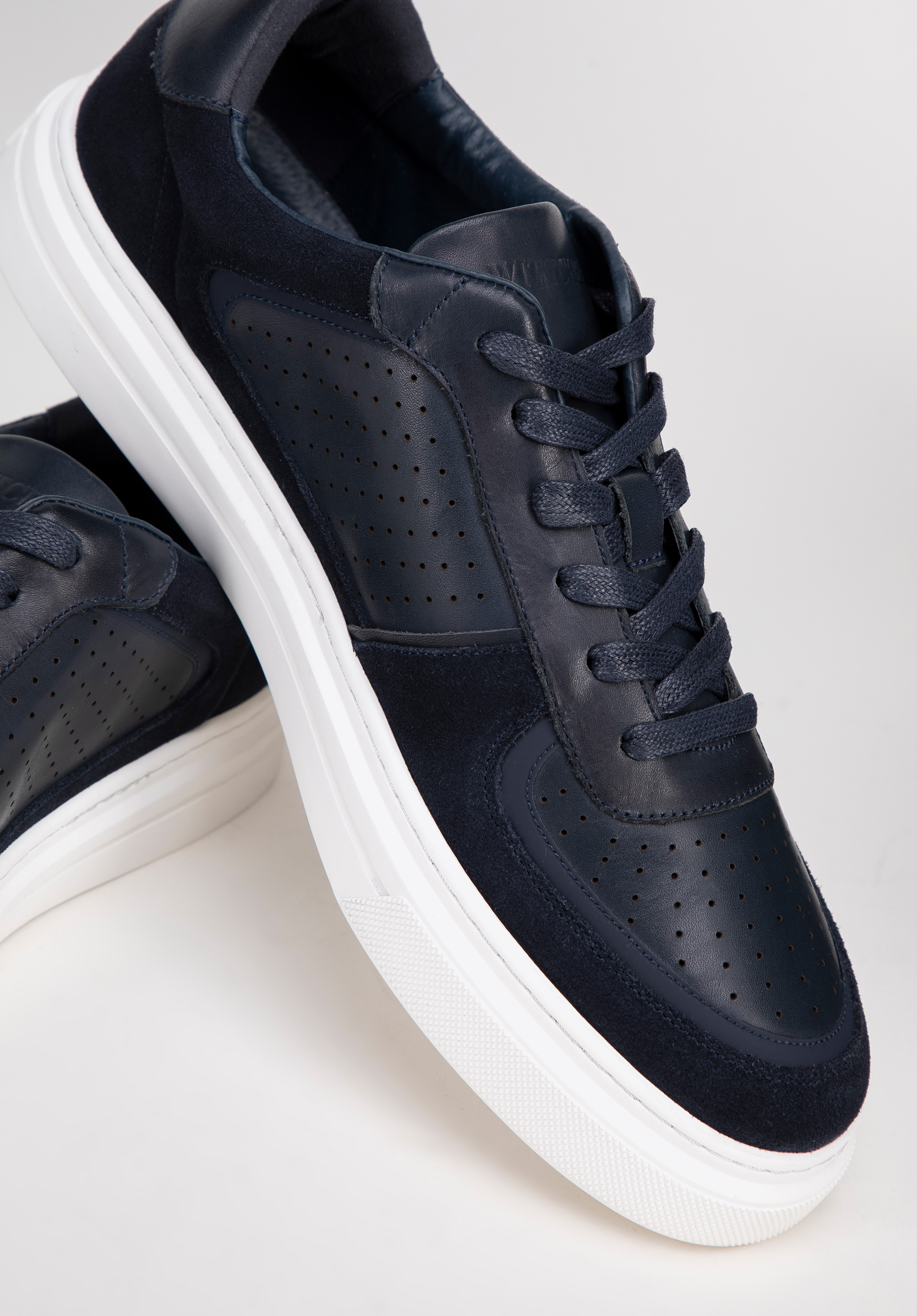 Entdecken Sie die perfekte Kombination aus Eleganz und Komfort mit diesen Herren-Sneakern , die luxuriöses Wildleder mit glattem Vollnarbenleder kombinieren. Diese Low-Top- Schnürschuhe sind für Männer konzipiert, die sowohl Stil als auch Komfort in ihrem Alltag schätzen. Die markante mandelförmige Spitze verleiht einen subtilen, modernen Touch. Details wie Perforationen an der Spitze und den Seiten verbessern nicht nur die Belüftung, sondern unterstreichen auch den einzigartigen Stil dieser Schuhe.