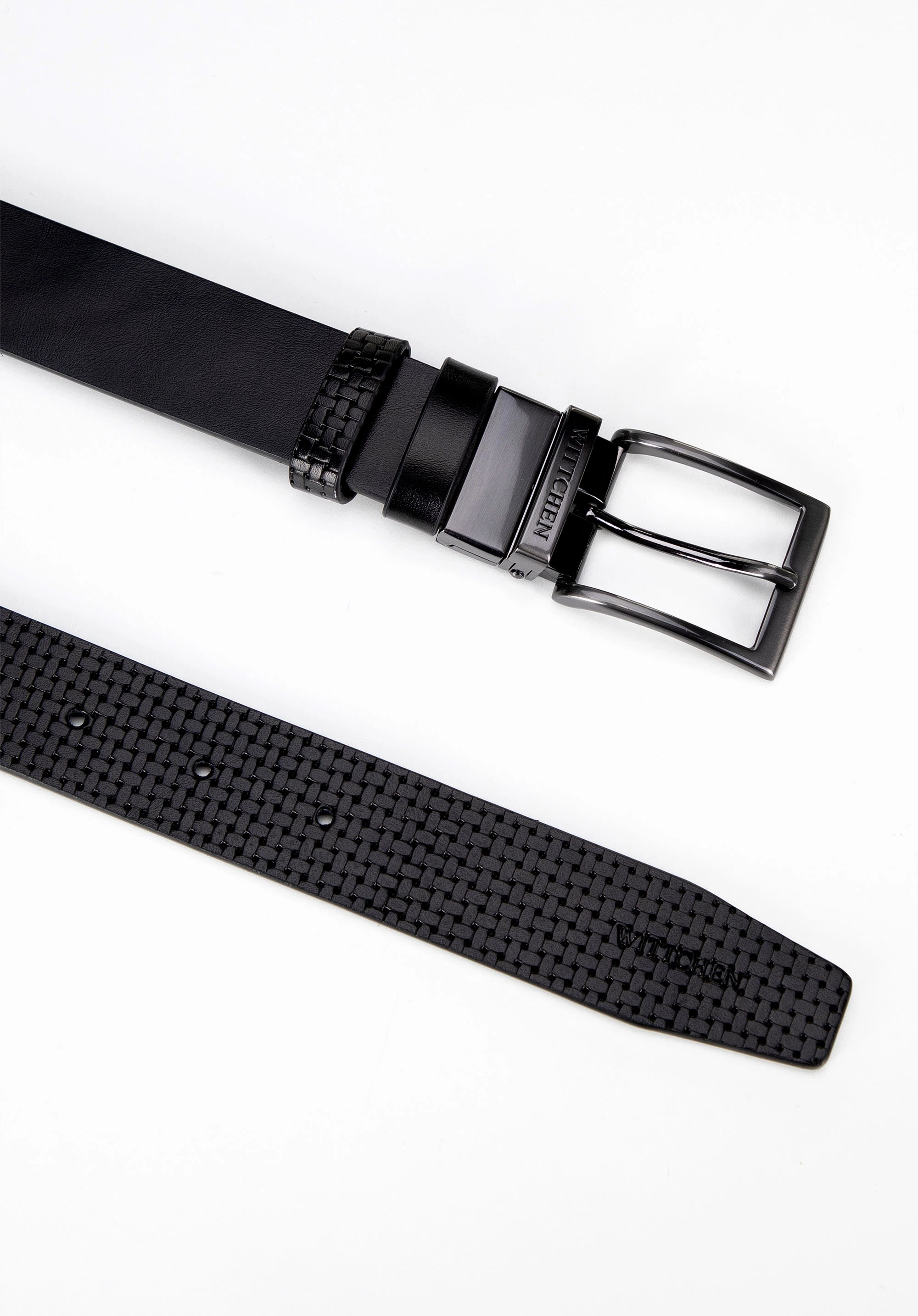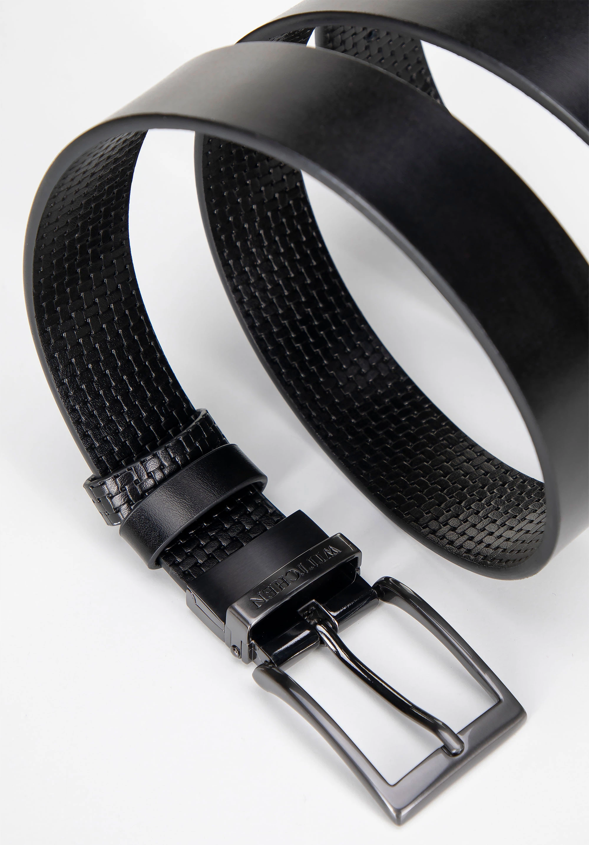 Dieser Gürtel ist für Männer gedacht, die eine perfekte Mischung aus klassischer Eleganz und modernem Stil schätzen. Er ist aus hochwertigem Naturleder gefertigt und hat auf der einen Seite eine glatte Oberfläche und auf der anderen eine geflochtene Textur. Er bietet bemerkenswerte Vielseitigkeit und raffinierte Ästhetik. Mit der drehbaren Schnalle können Sie mühelos zwischen zwei unterschiedlichen Stilen wechseln – schlicht und klassisch oder dynamisch und strukturiert . Ein dezentes Markenlogo auf der Schnalle verleiht dem Ganzen den letzten Schliff und macht dieses Accessoire nicht nur durch sein Design beeindruckend, sondern gewinnt mit der Zeit auch an Charakter.
