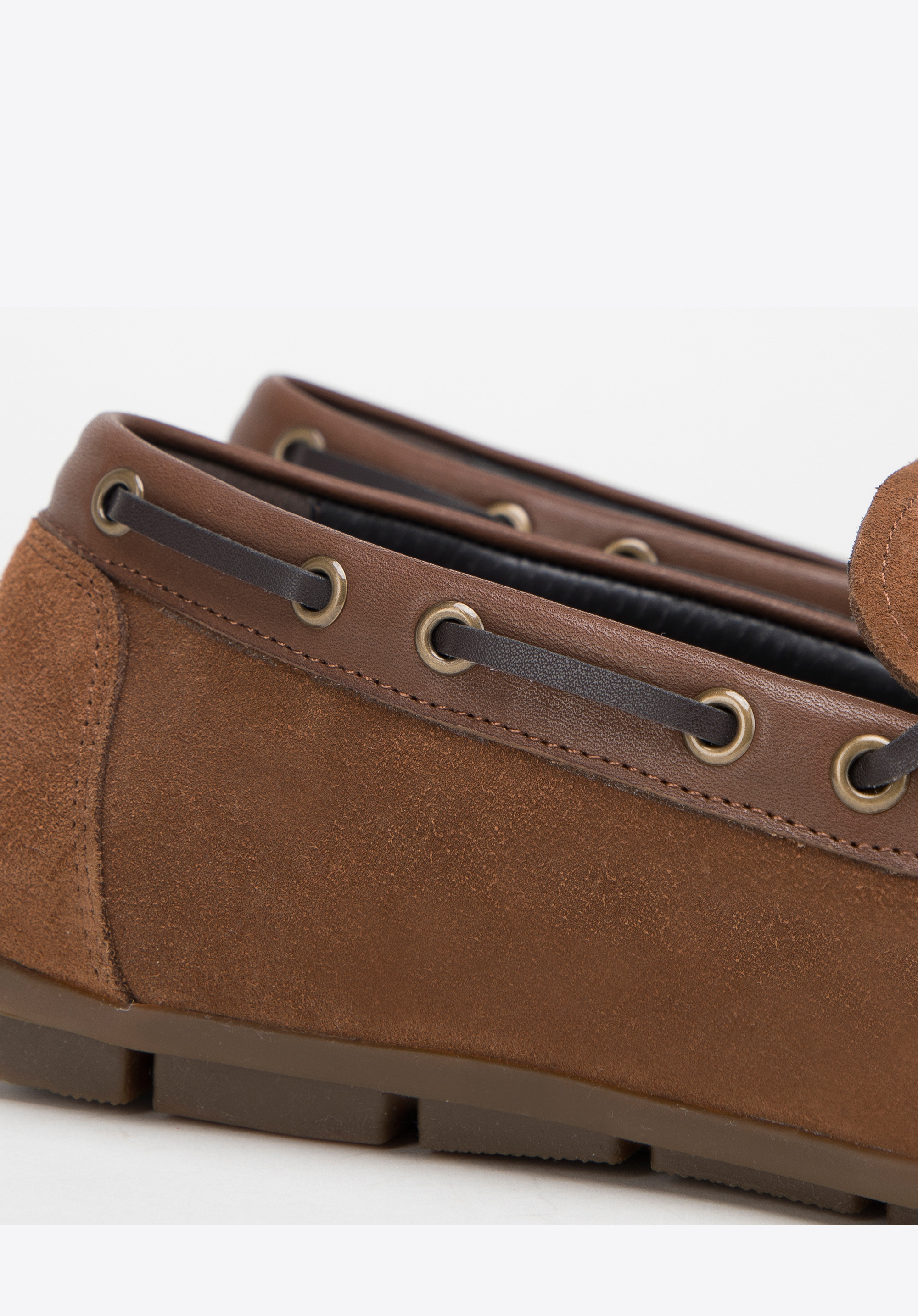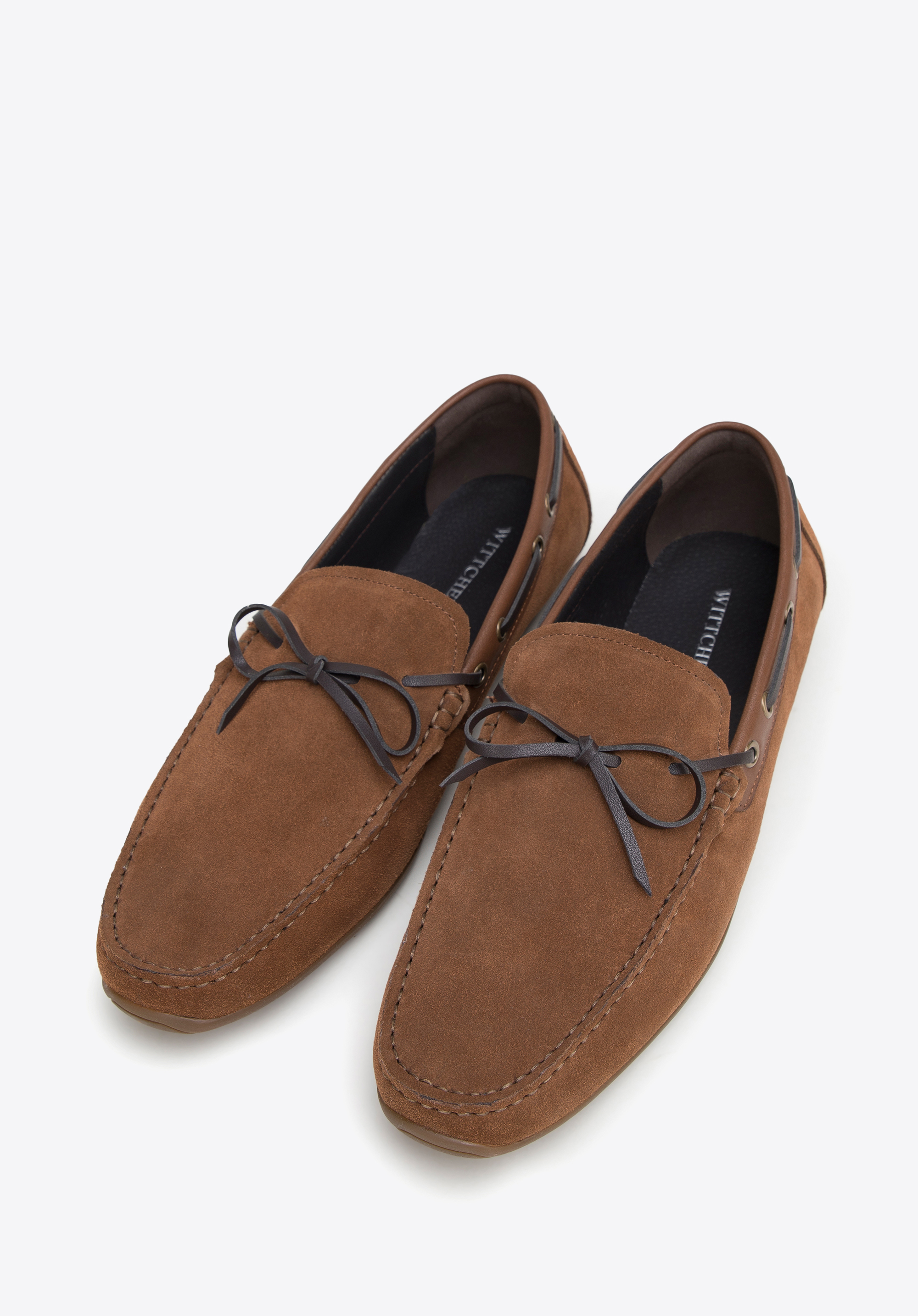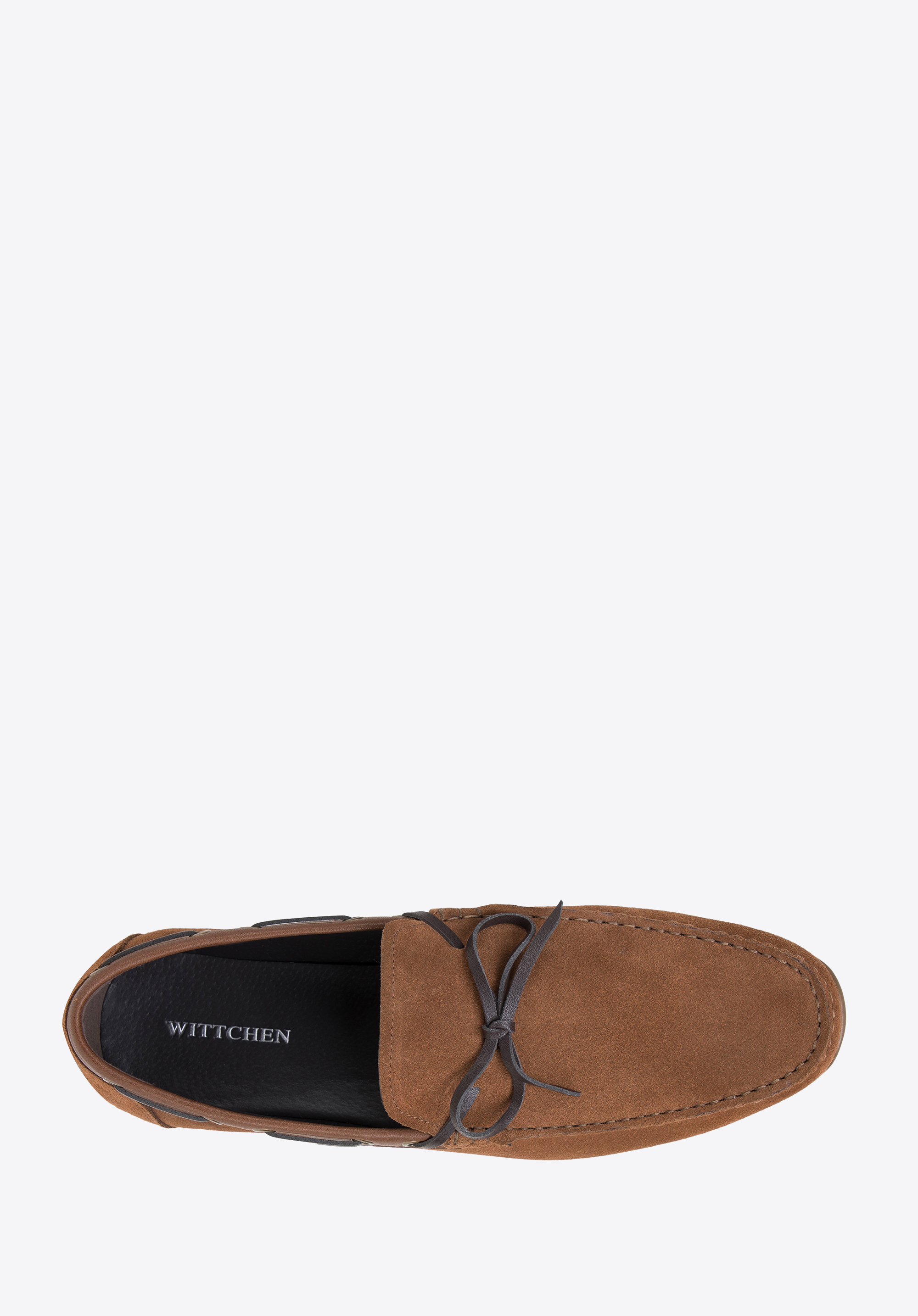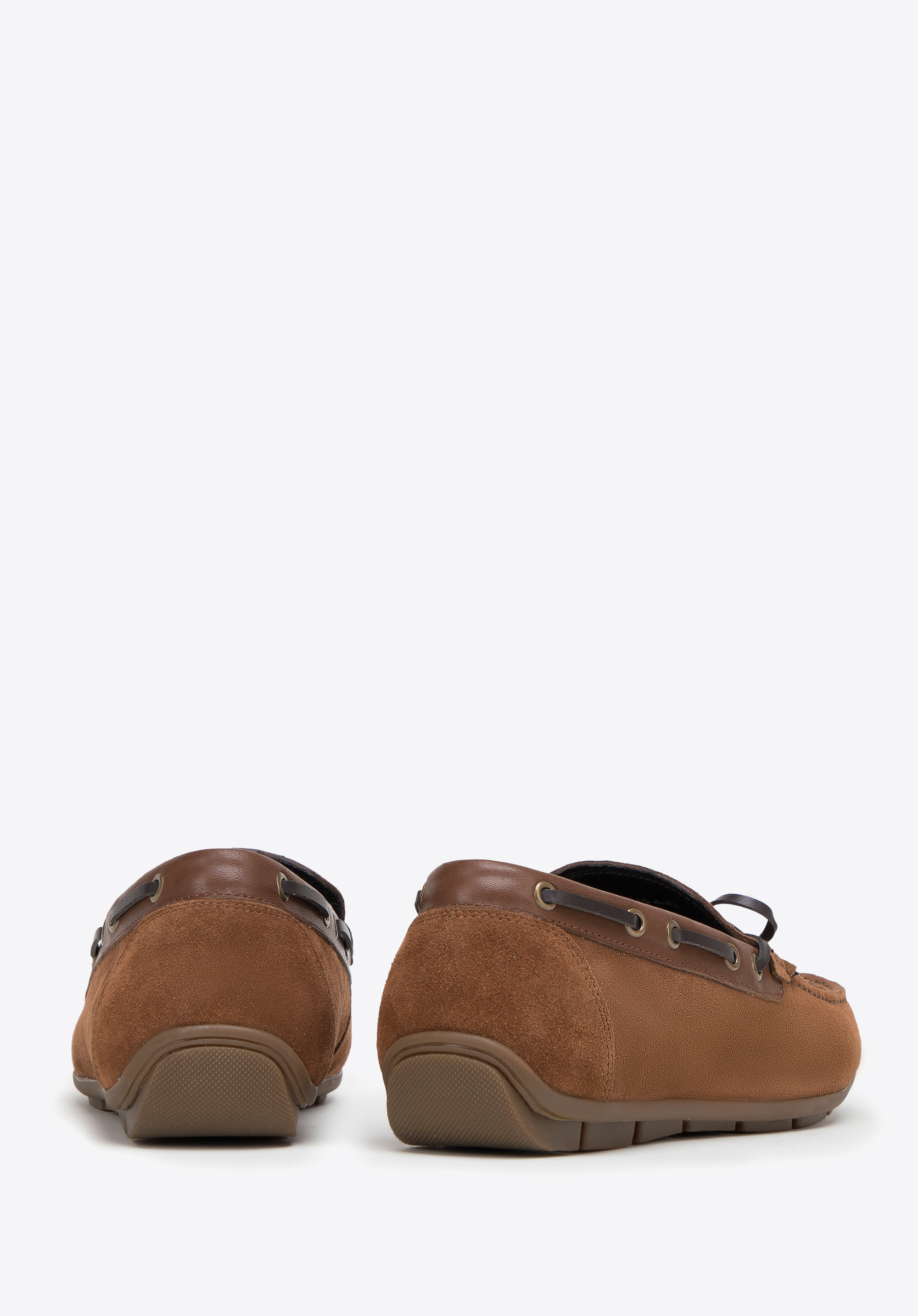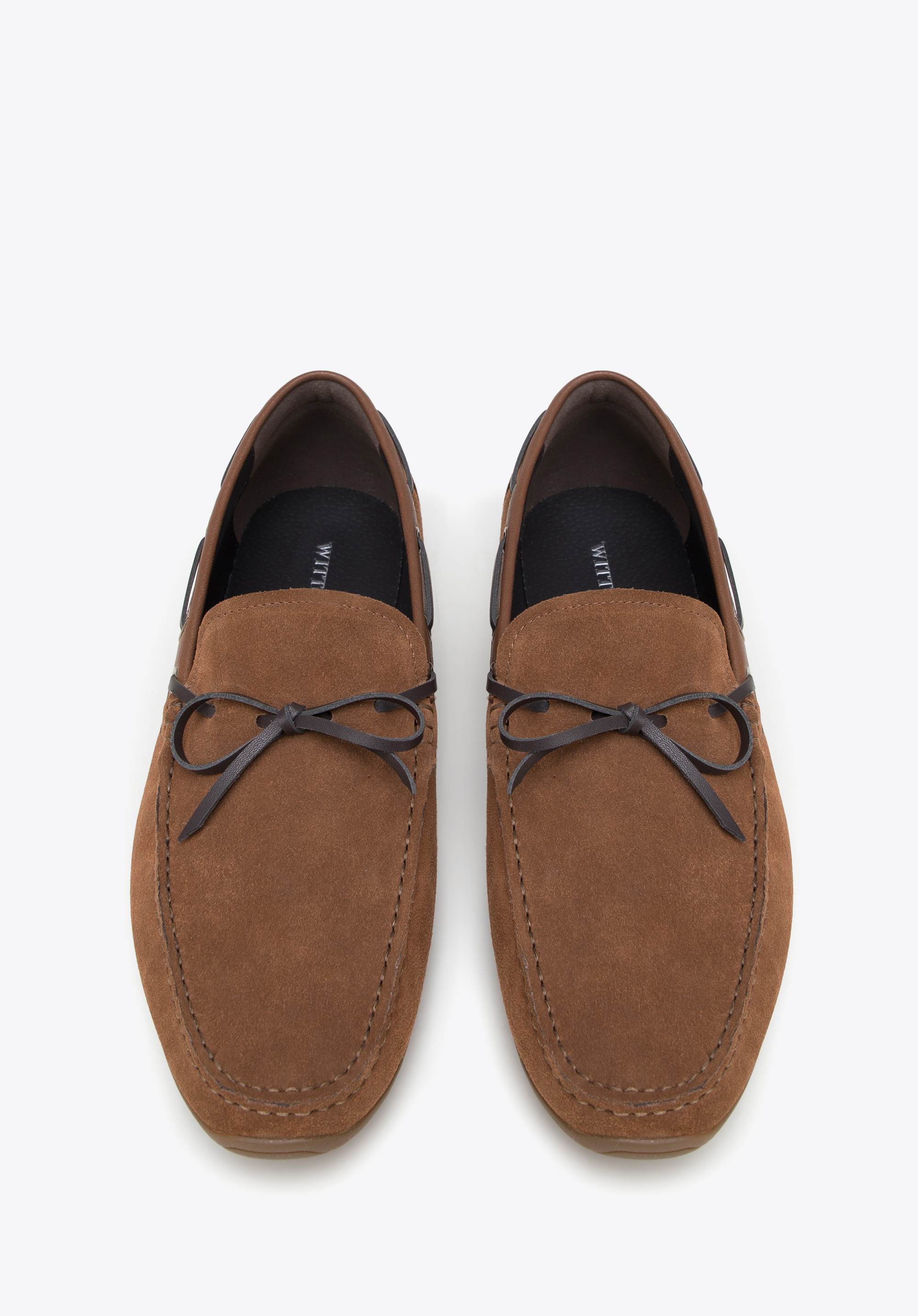 Die leichten, bequemen Herren-Mokassins sind ein absolutes Muss in der Garderobe eines jeden stilvollen Herrn. Dieses außergewöhnlich weiche Modell ist aus natürlichem Wildleder genäht, das sich sanft an den Fuß schmiegt, ohne zu reiben. Es ist die perfekte Wahl, wenn es darum geht, gut auszusehen und die Hindernisse des Alltags mit leichtem, flinkem Schritt zu überwinden. Der Gehkomfort wird durch die leichte Gummisohle mit Paspelierung noch erhöht. Mokassins aus Wildleder mit Zierriemen. Wildledermokassins mit dekorativem Schnürriemen sind perfekt für das urbane Styling, aber auch für Ausflüge in die nähere und weitere Umgebung geeignet. Ihr unbestrittener Vorteil ist ein universeller, zeitloser Stil, der nie langweilig wird.
