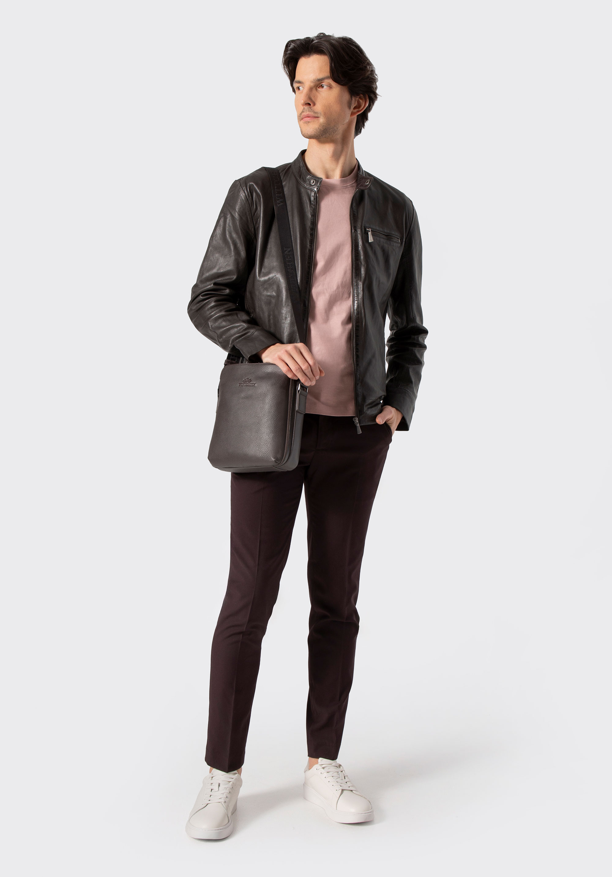 Unser Tipp: Kombinieren Sie dazu eine Herrentasche aus Leder in Schwarz- oder Brauntönen - mit praktischen Metalldetails, die den Look abrunden. Die Schuhe? Leder-Sneakers oder klassische Halbschuhe sind eine gute Wahl, um den Charakter der Jacke zu unterstreichen.