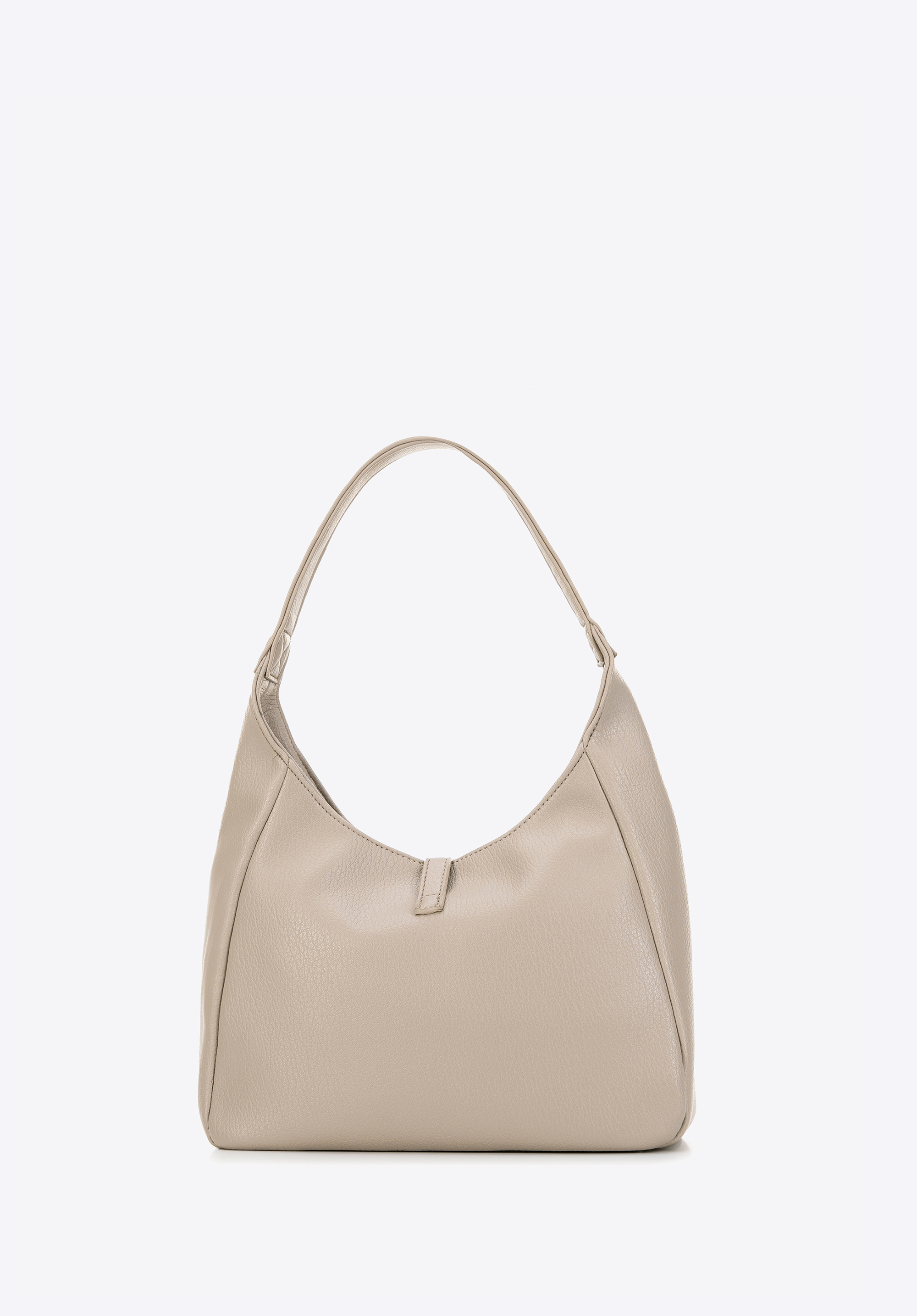 Diese stilvolle Hobo-Tasche für Damen ist die perfekte Kombination aus Stil und Funktionalität. Das geräumige, einteilige Innere bietet Platz für alle wichtigen Dinge des täglichen Bedarfs, während der robuste Boden für Stabilität sorgt. Der praktische Griff erleichtert das Tragen, während die raffinierte Schnalle am Riemen ihr einen besonderen Look verleiht. Mit der Innentasche mit Reißverschluss und den zwei offenen Fächern der Handtasche bleiben Sie organisiert. Das diskrete Markenlogo auf der Vorderseite und dem Innenfutter verleiht einen Hauch von Eleganz und unterstreicht die Premiumqualität der Handtasche.