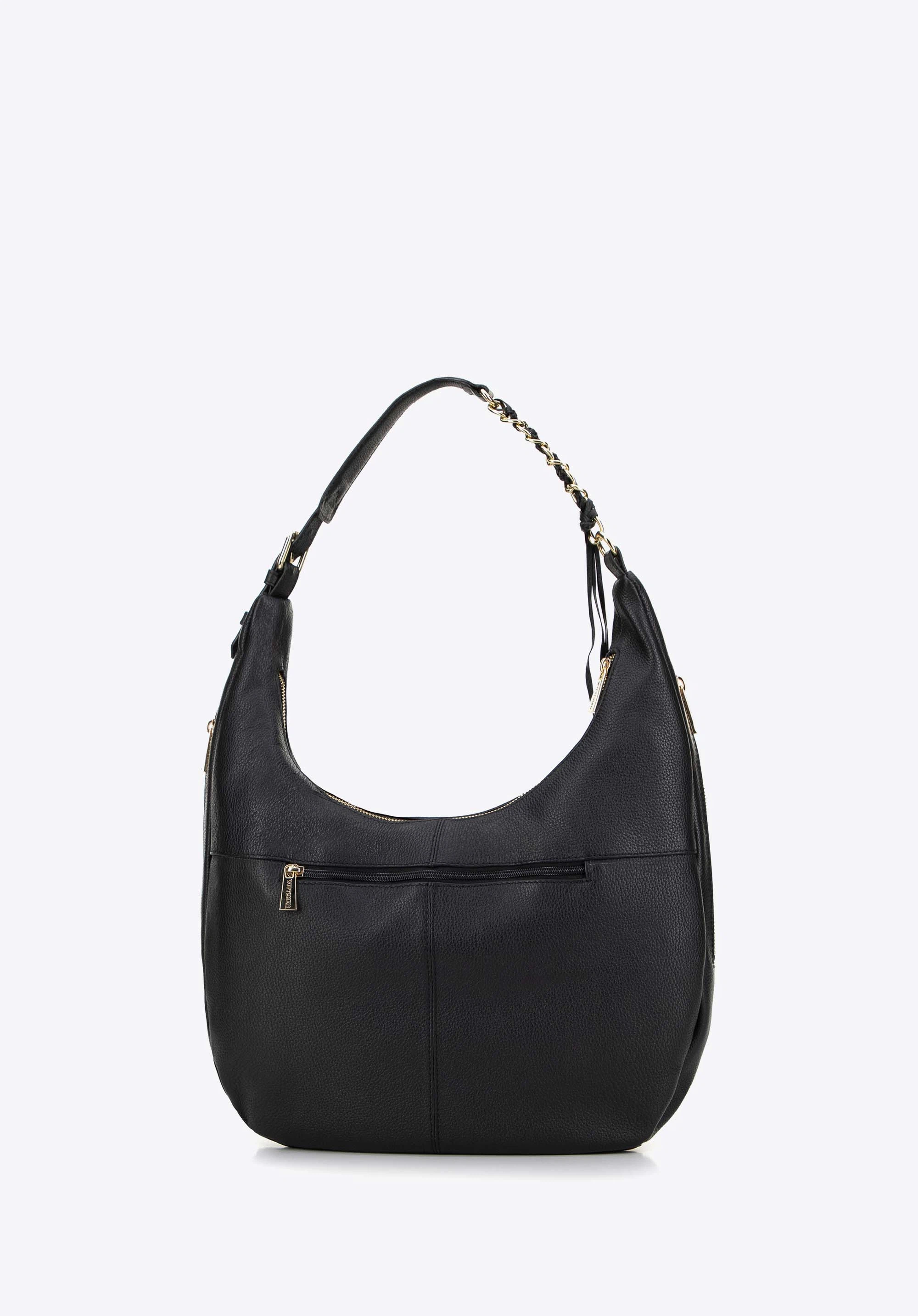 Stil, der für sich spricht – diese Hobo Bag aus hochwertigem Naturleder ist nicht nur ein praktisches Accessoire, sondern auch ein Spiegel Ihrer Persönlichkeit. Ihr einzigartiges Design verbindet Eleganz und Funktionalität auf harmonische Weise und das minimalistische Markenlogo unterstreicht dezent ihre charakteristische Qualität.