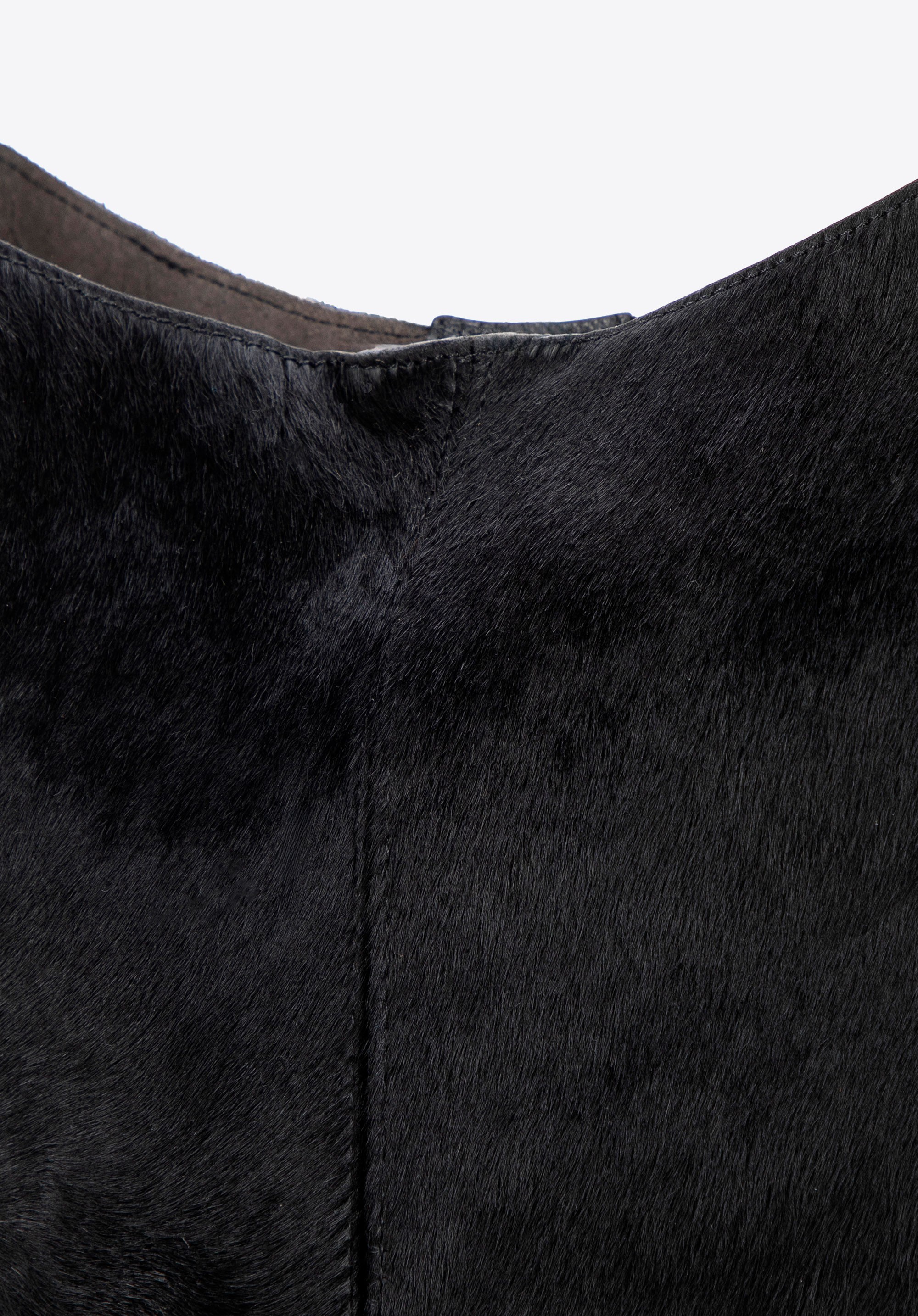 - Material: Natürliches Kalbsleder mit Haaren – weich, edel und außergewöhnlich langlebig, behält es sein elegantes Aussehen über viele Saisons hinweg.
