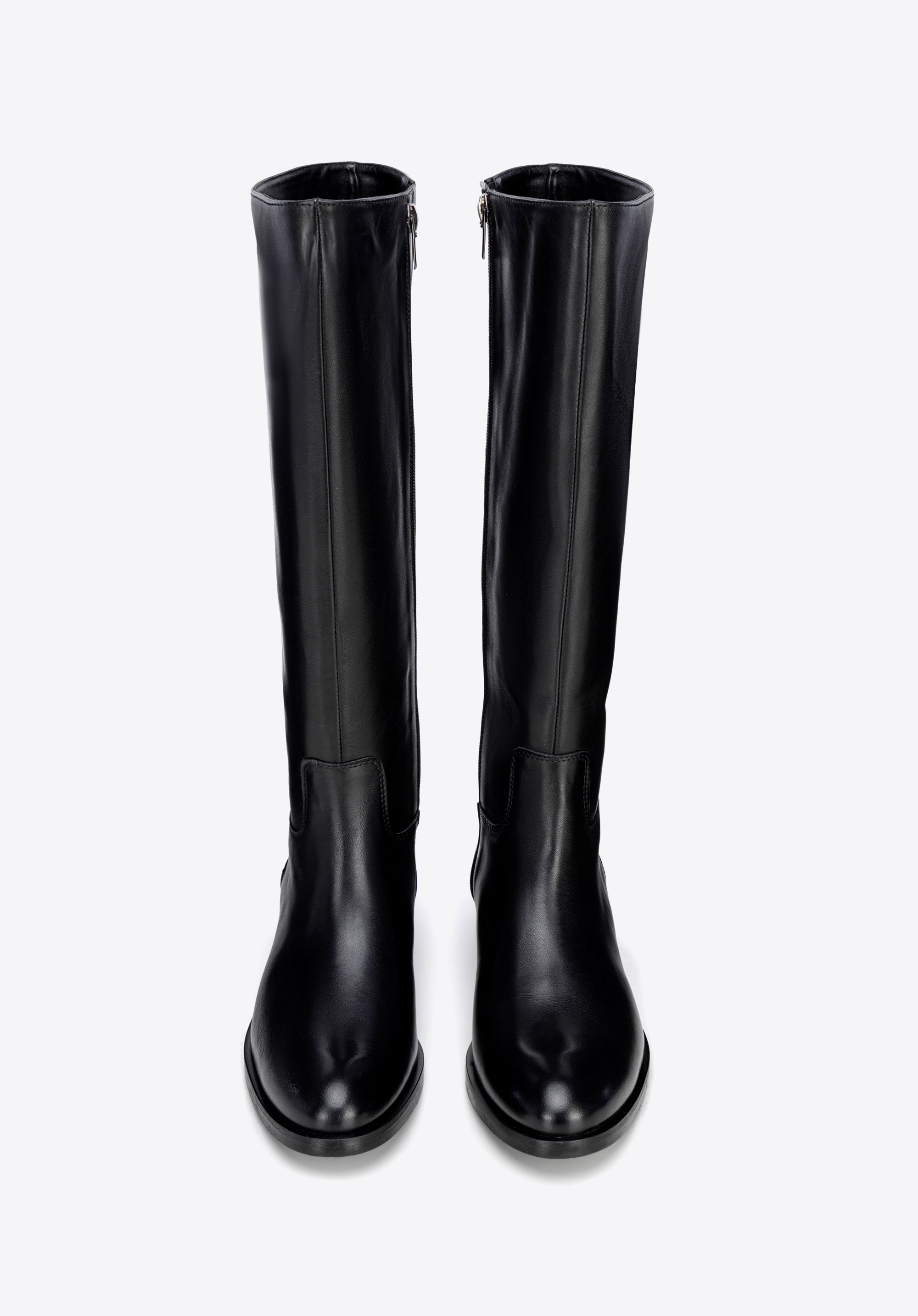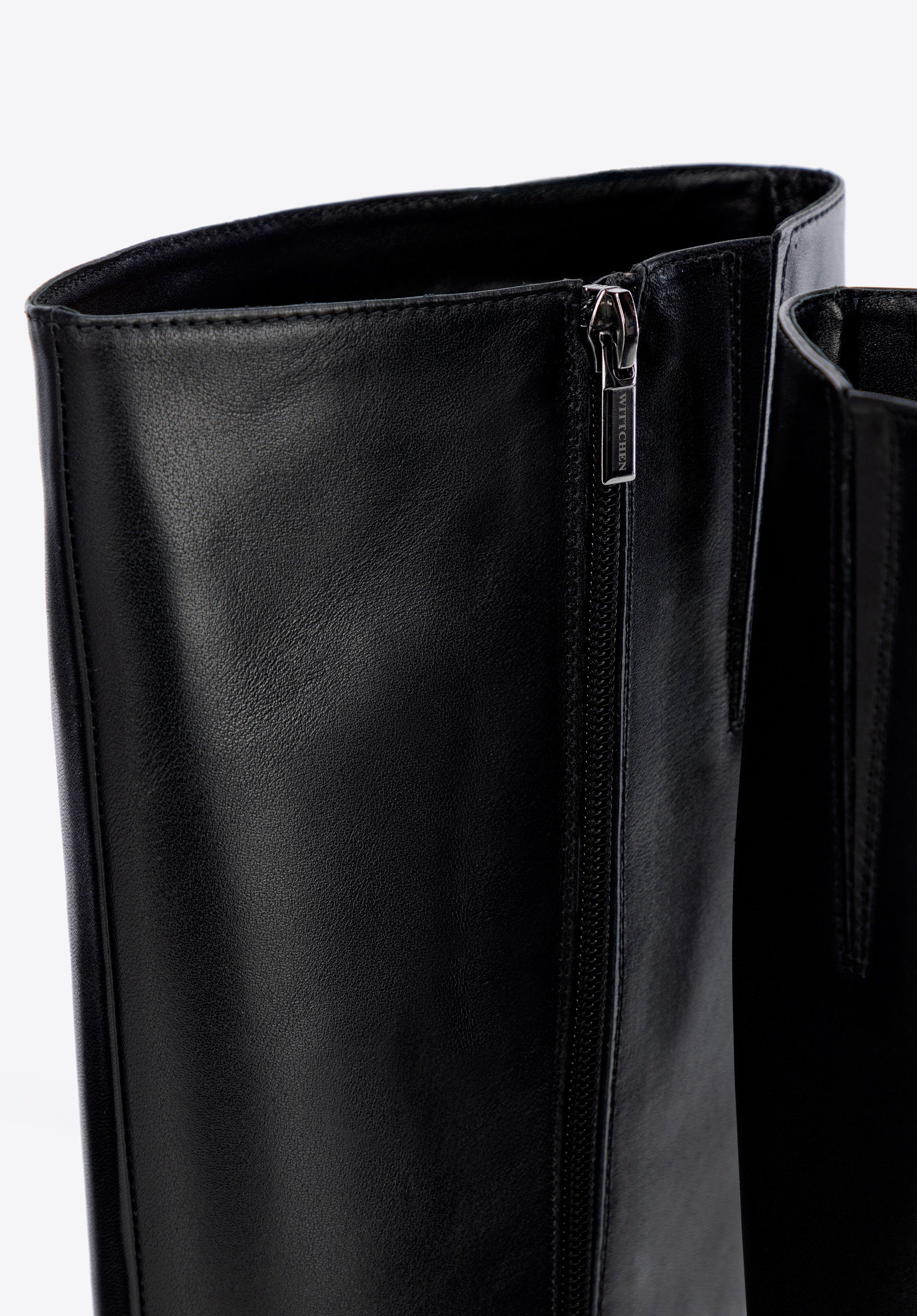 Für wen sind sie geeignet? Diese hohen Stiefel sind für Frauen gedacht, die eine Kombination aus klassischer Eleganz und moderner Funktionalität suchen. Sie passen perfekt sowohl zu alltäglichen als auch zu eleganten Outfits.