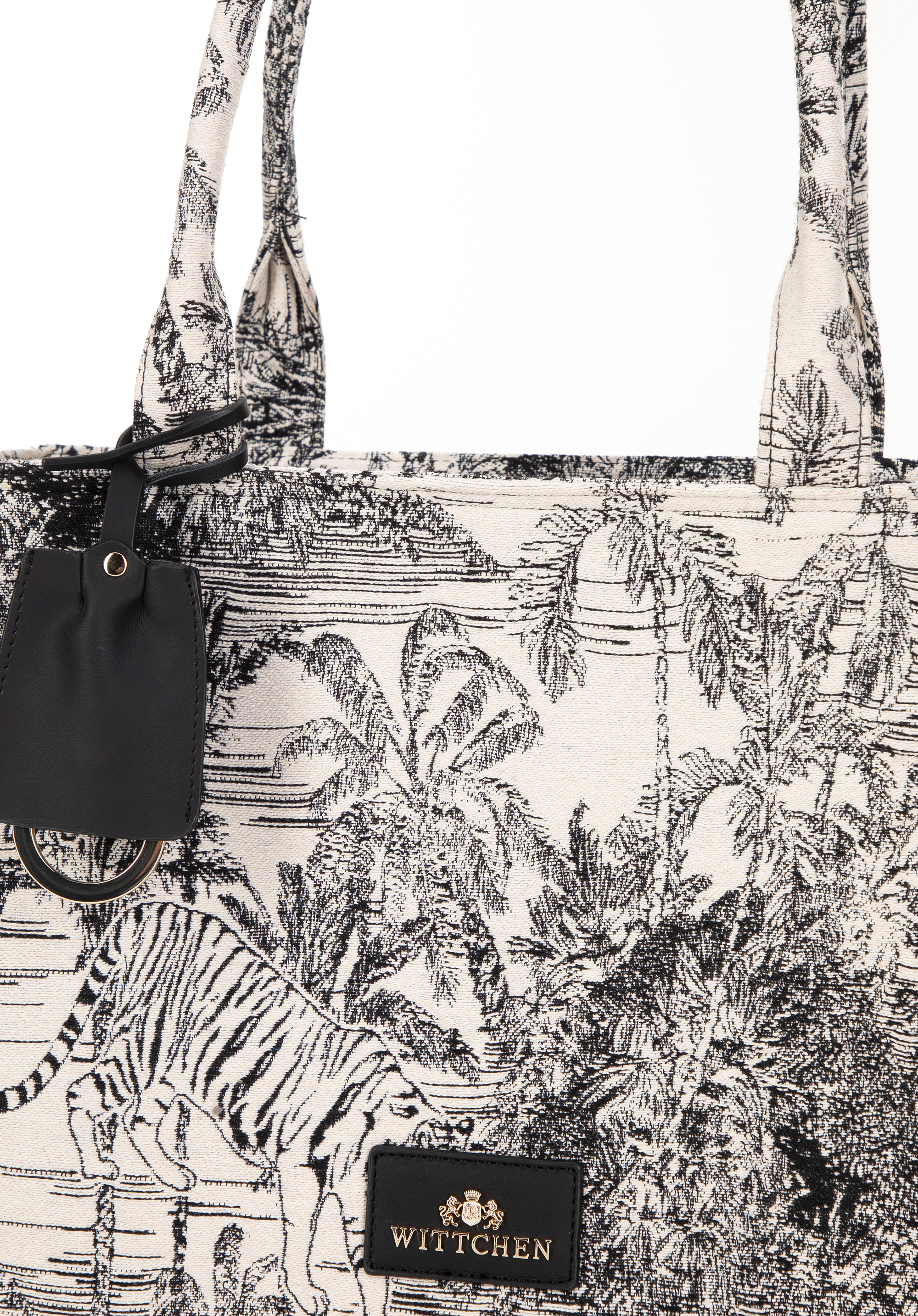 Entdecken Sie mit dieser eleganten Shopper-Tasche aus Jacquard eine neue Dimension von Stil und Funktionalität. Diese außergewöhnliche Handtasche ist die perfekte Wahl für Frauen, die Wert auf modisches Design und praktische Lösungen legen. Der gemusterte Stoff und subtile Details wie die abnehmbare Quaste und das Markenlogo verleihen der Tasche einen einzigartigen Charakter. Das helle Innenfutter mit gesticktem WITTCHEN-Logo garantiert höchste Qualität und raffinierten Stil. Die Shopper-Tasche ist ideal für die Arbeit und Geschäftstreffen, bietet Platz für A4-Dokumente und alle wichtigen Dinge und sorgt für einen stilvollen Look und hervorragende Funktionalität.
