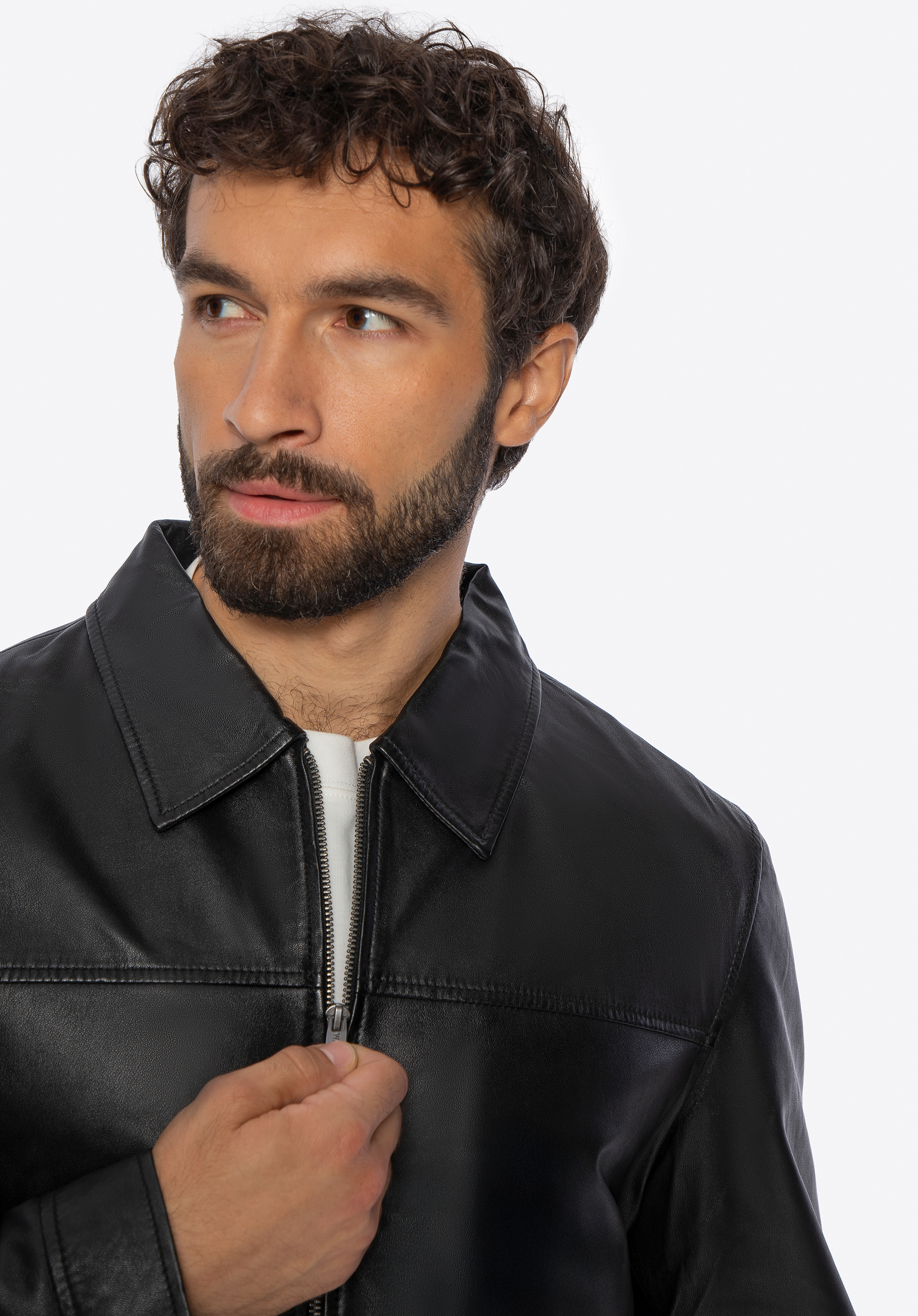Wählen Sie eine Jacke , die Eleganz und Funktionalität perfekt vereint. Gefertigt aus natürlichem Schafsleder , besticht sie durch Weichheit, Strapazierfähigkeit und klassischen Charme. Der stylische Kragen verleiht der Jacke einen edlen Touch, während der praktische Reißverschluss für Tragekomfort und müheloses Tragen sorgt. Ein seitliches Markenlogo aus Metall und die charakteristischen Reißverschlüsse unterstreichen den exklusiven Charakter der Jacke. Das Design ist auf Funktionalität ausgelegt und verfügt über zwei Seitentaschen mit Druckknopfverschluss für kleine Utensilien sowie zwei Innentaschen – eine davon mit Reißverschluss –, in denen Sie Ihr Telefon, Ihre Brieftasche oder Ihre Dokumente sicher und griffbereit aufbewahren können.
