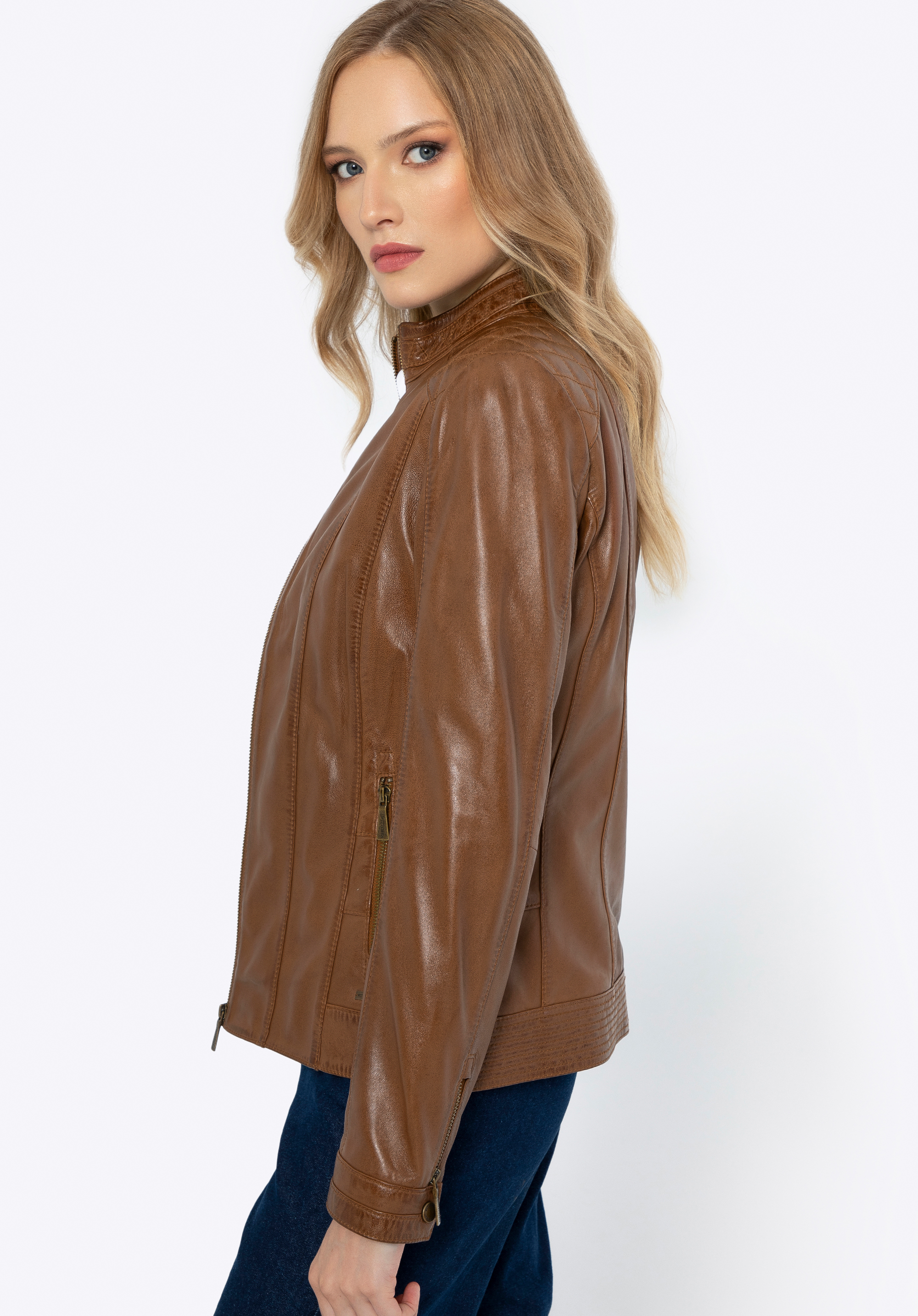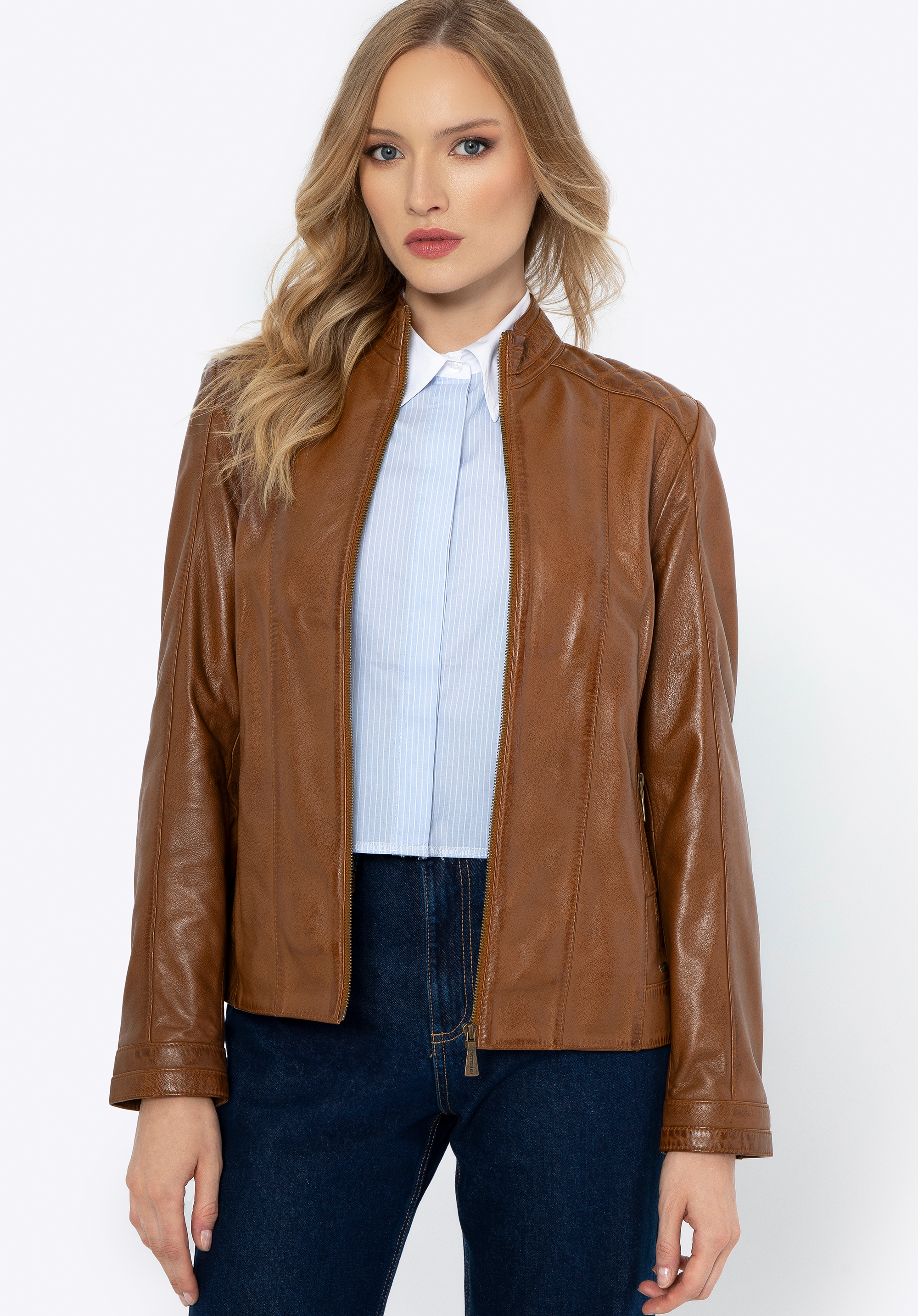 Klassische Lederjacke für Damen Farbe: hellbraun