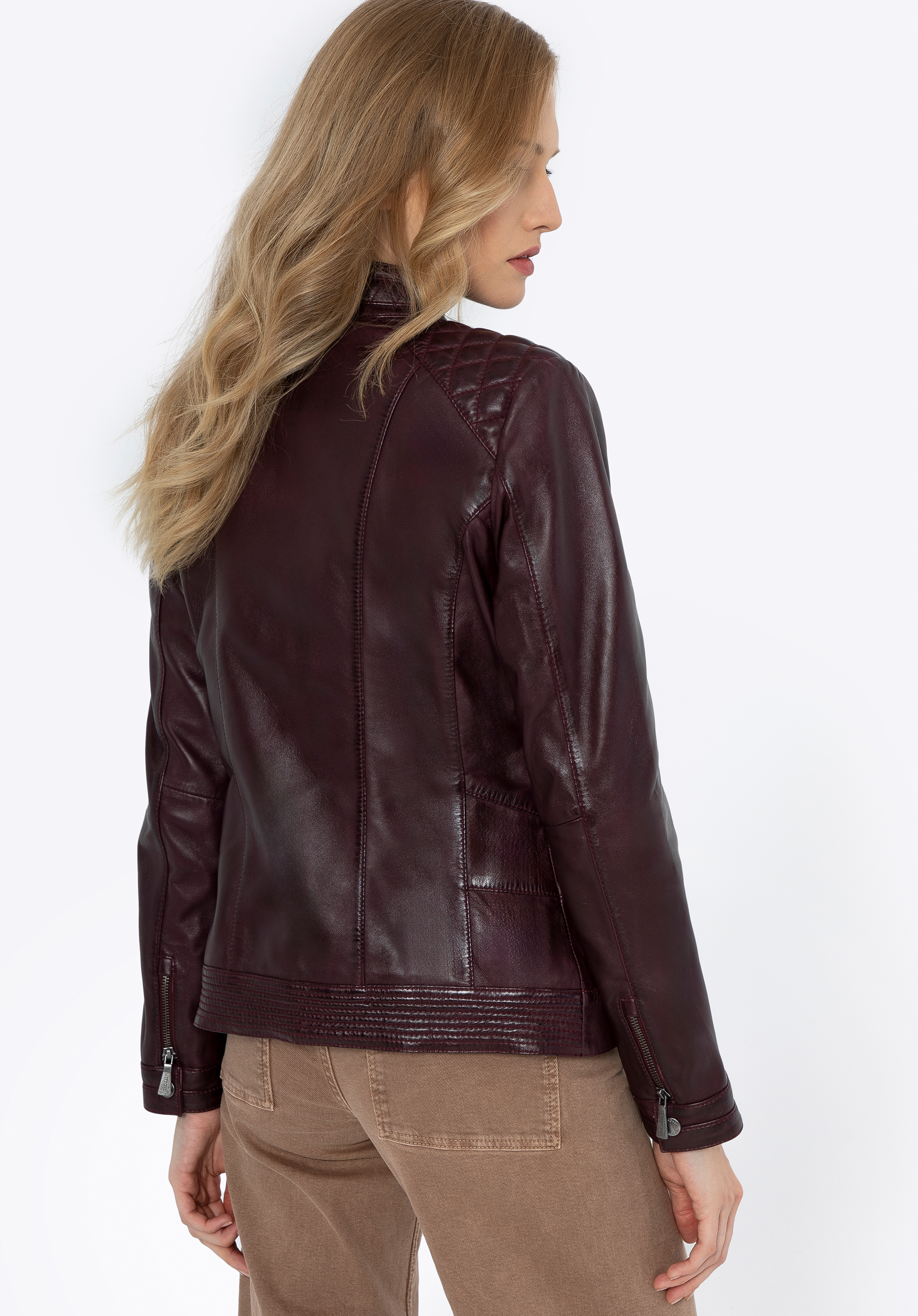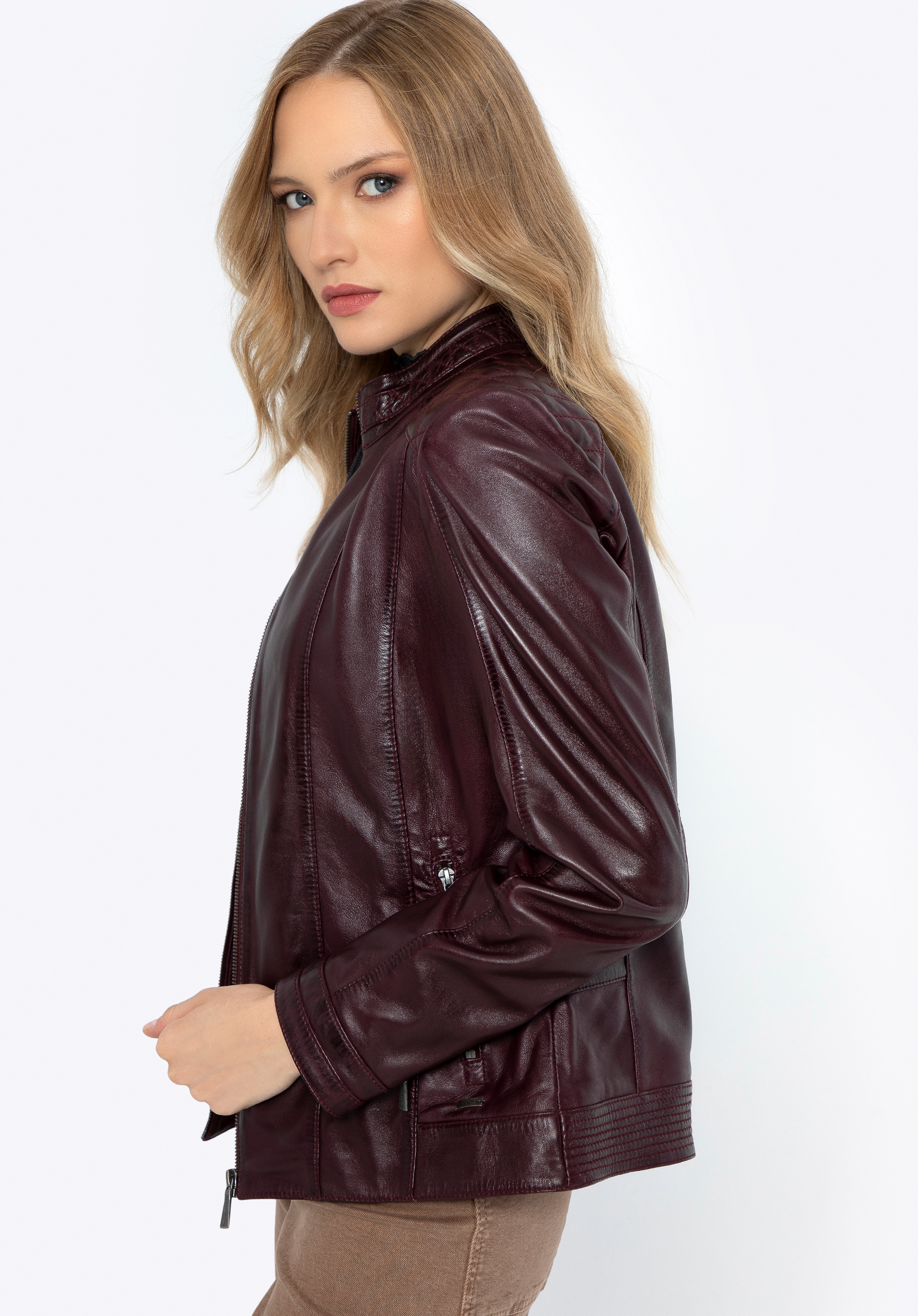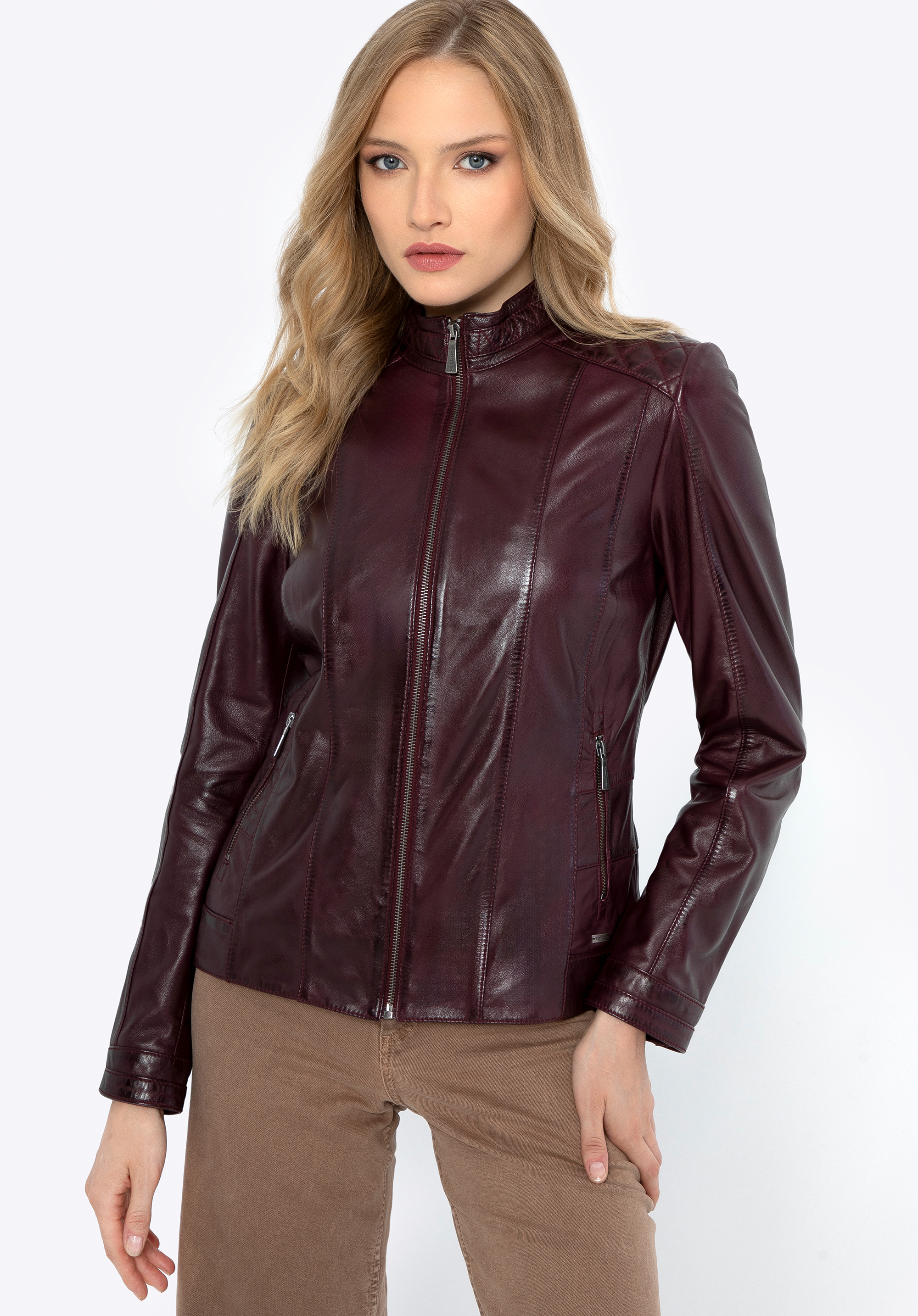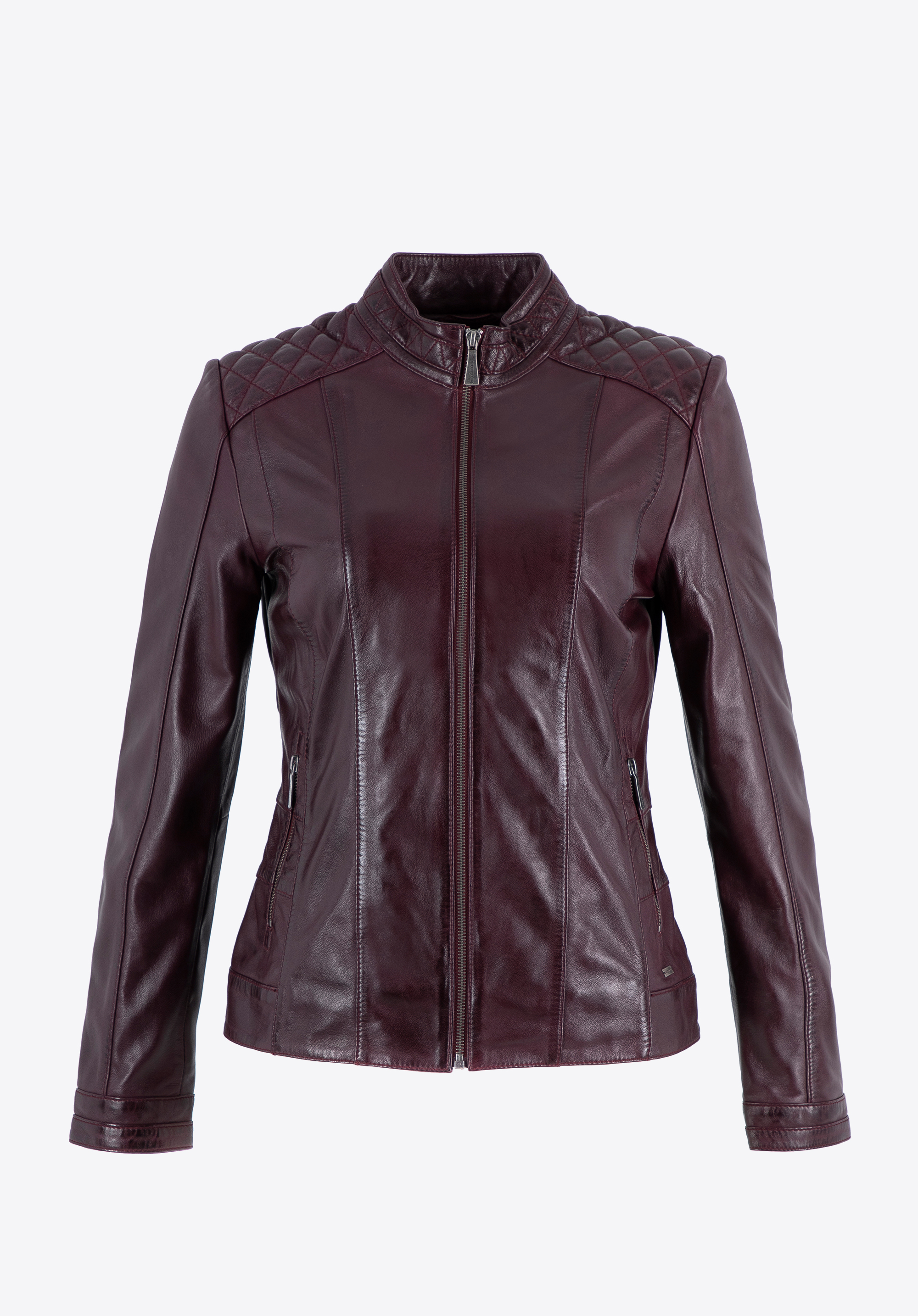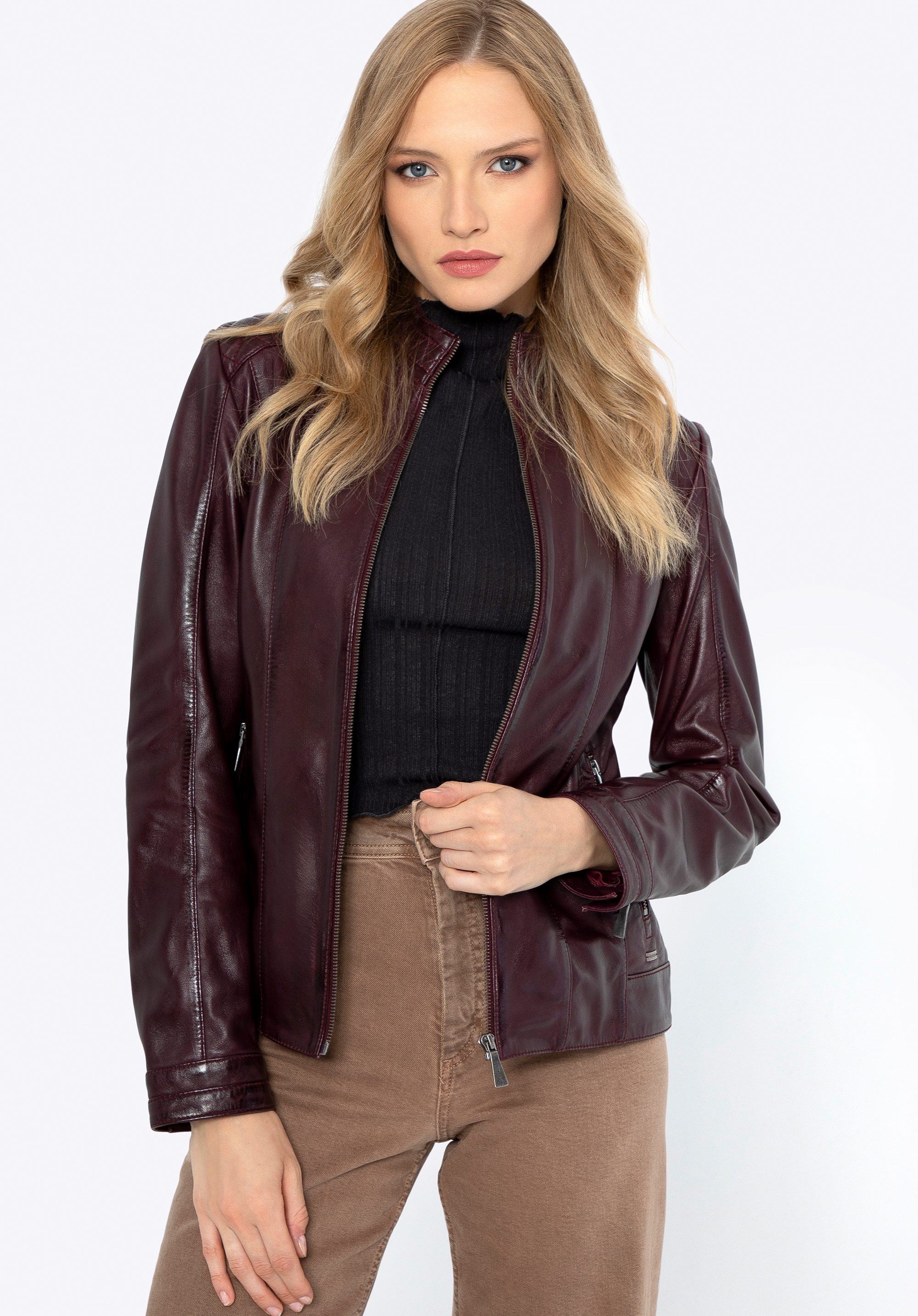 Wenn Sie zeitlose, hochwertige Kleidung schätzen, ist diese klassische Damenlederjacke genau das Richtige für Sie. Eine Lederjacke bringt Vielseitigkeit in Ihre Garderobe. Sie verfügt über einen einfachen Reißverschluss und zwei Taschen , ideal für Ihre wichtigsten Dinge. Metallakzente verleihen eine elegante Note. Die Schulternähte betonen das raffinierte Design dieser ikonischen Jacke. Ein weiteres praktisches Merkmal sind die geraden Ärmel mit Manschetten, die mit einem Reißverschluss geöffnet und mit einem Druckknopf gesichert werden können, sodass Sie sie bis zur Mitte des Handgelenks hochkrempeln können. Die Taille der Jacke betont Ihre Silhouette und passt sich Ihrer Form an, während das weiche Futter für Komfort sorgt. Sie werden die Vielseitigkeit dieser Damenlederjacke zu schätzen wissen.