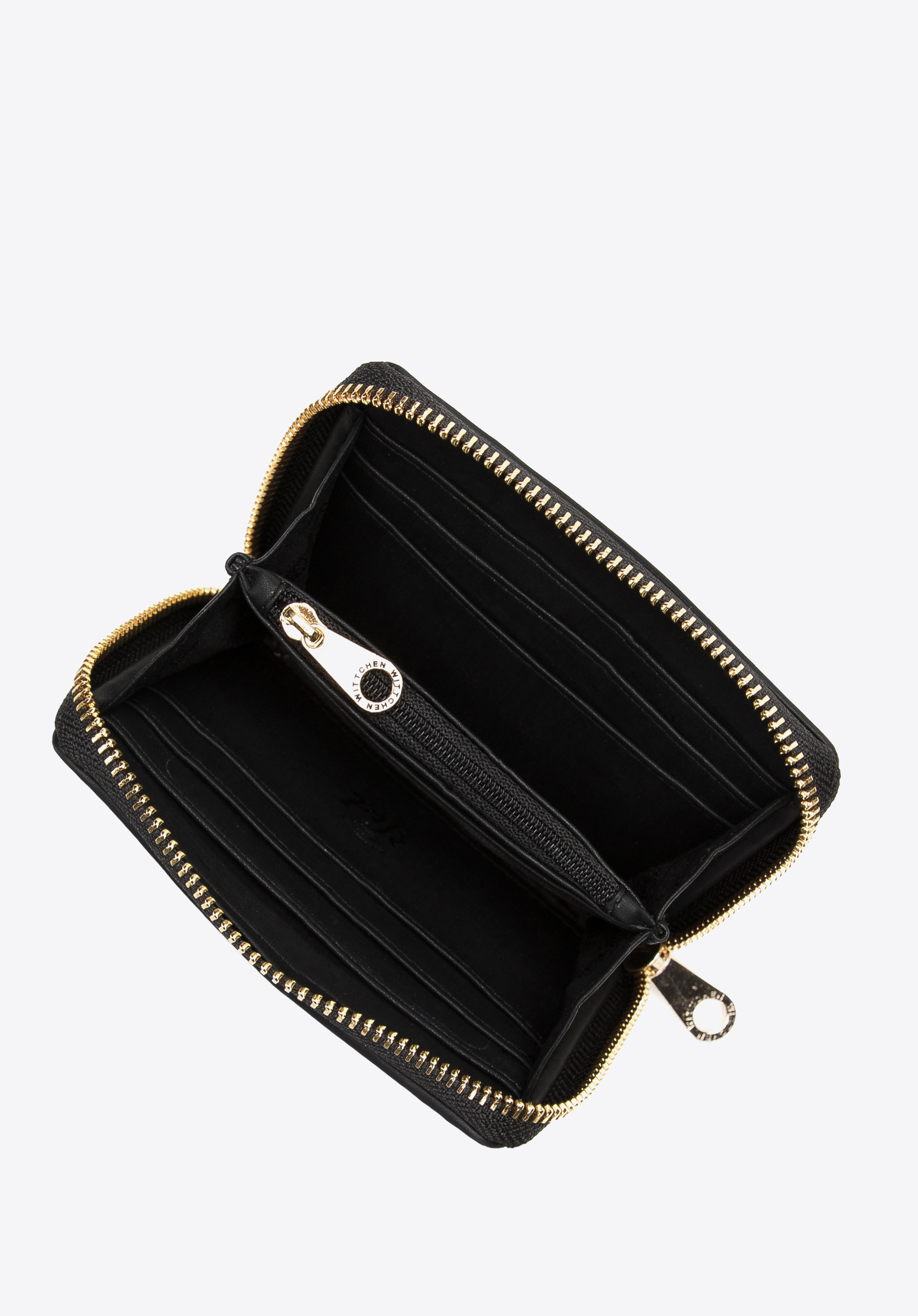 Diese stilvolle Damenbrieftasche ist perfekt für den täglichen Gebrauch. Es ist klein , aber perfekt organisiert. Im Inneren ist Platz für mehrere Kartenfächer und Steckfächer, darunter ein Netzfach, beispielsweise für ein Foto. Mit Reißverschluss und goldfarbener Hardware ausgestattet, ist diese Geldbörse sowohl äußerst modisch als auch praktisch. Ideal für alle, die modernes Design schätzen.